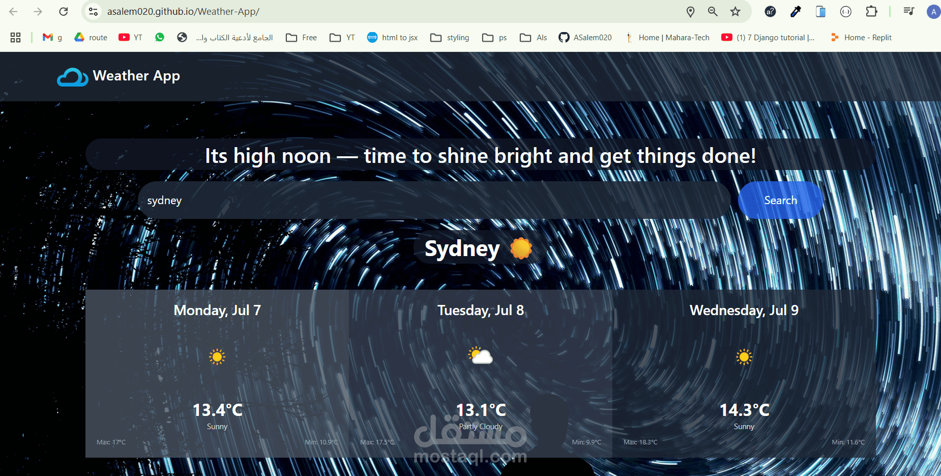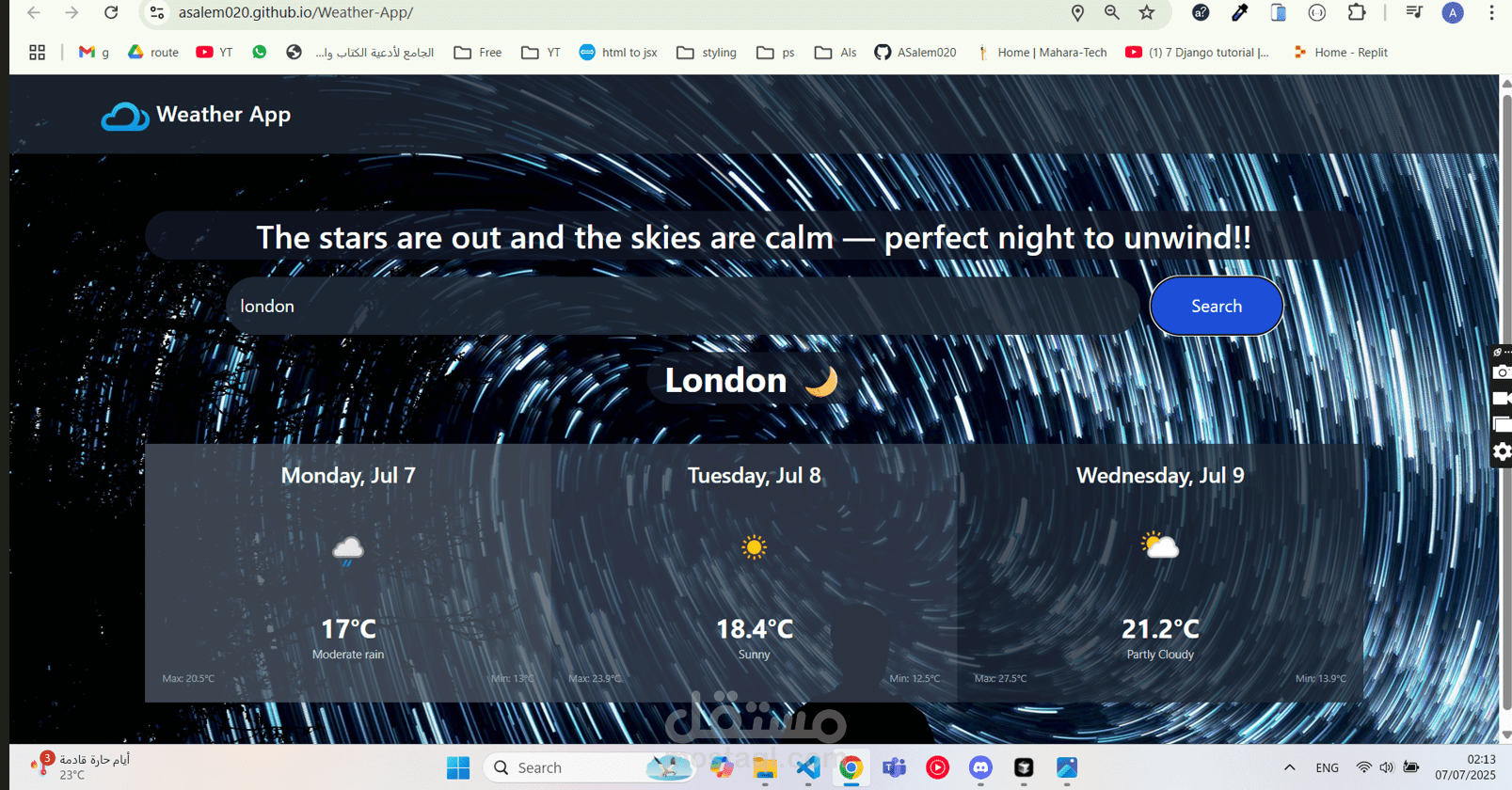 يتيح لك البحث عن أي مدينة لعرض توقعات الطقس فيها لمدة 3 أيام.