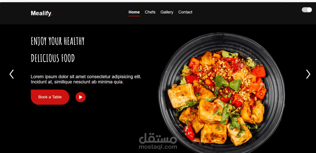 قمت بتطوير موقع Mealify وهو موقع وصفات متكامل، باستخدام HTML وCSS فقط، مع التركيز على بناء واجهة مستخدم منظمة وجذابة تحاكي تصميمًا احترافيًا.