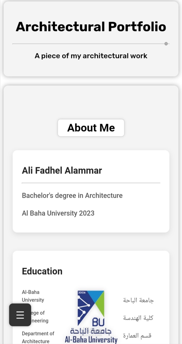 يركز الموقع على إبراز الهوية البصرية للمعماري، ويعرض نماذج الأعمال السابقة (المشاريع، التصاميم، التصوير، المخططات) بطريقة سلسة ومميزة.