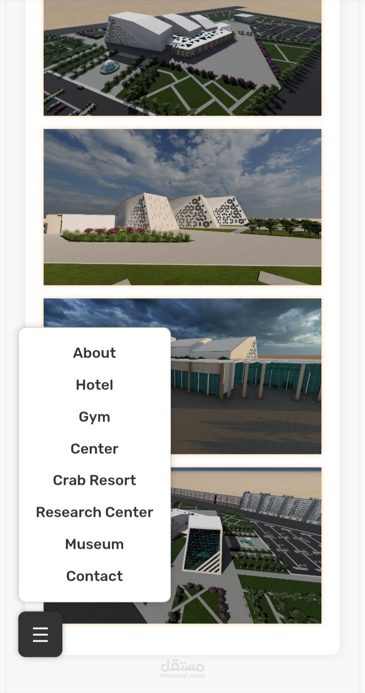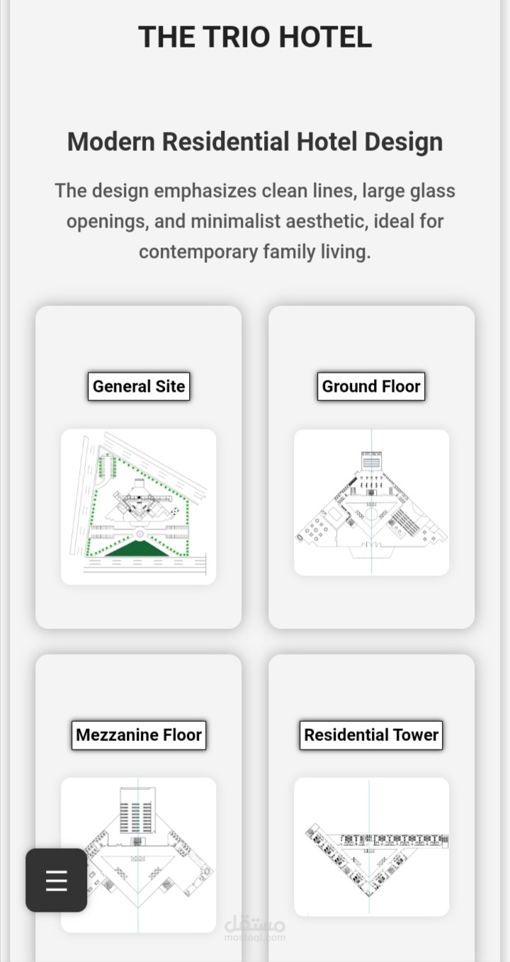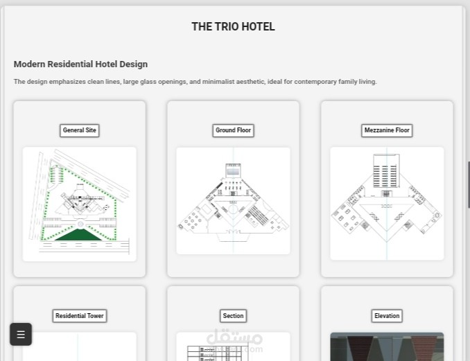 صفحات مستقلة لكل مشروع معماري مع صور وتفاصيل التصميم