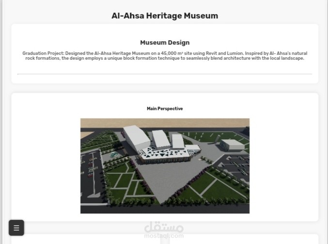 تم العمل على المشروع بعناية لتلبية متطلبات مهندسين ومعماريين محترفين، بهدف استخدامه كـ Portfolio شخصي أو موقع عرض أعمال لشركة تصميم.