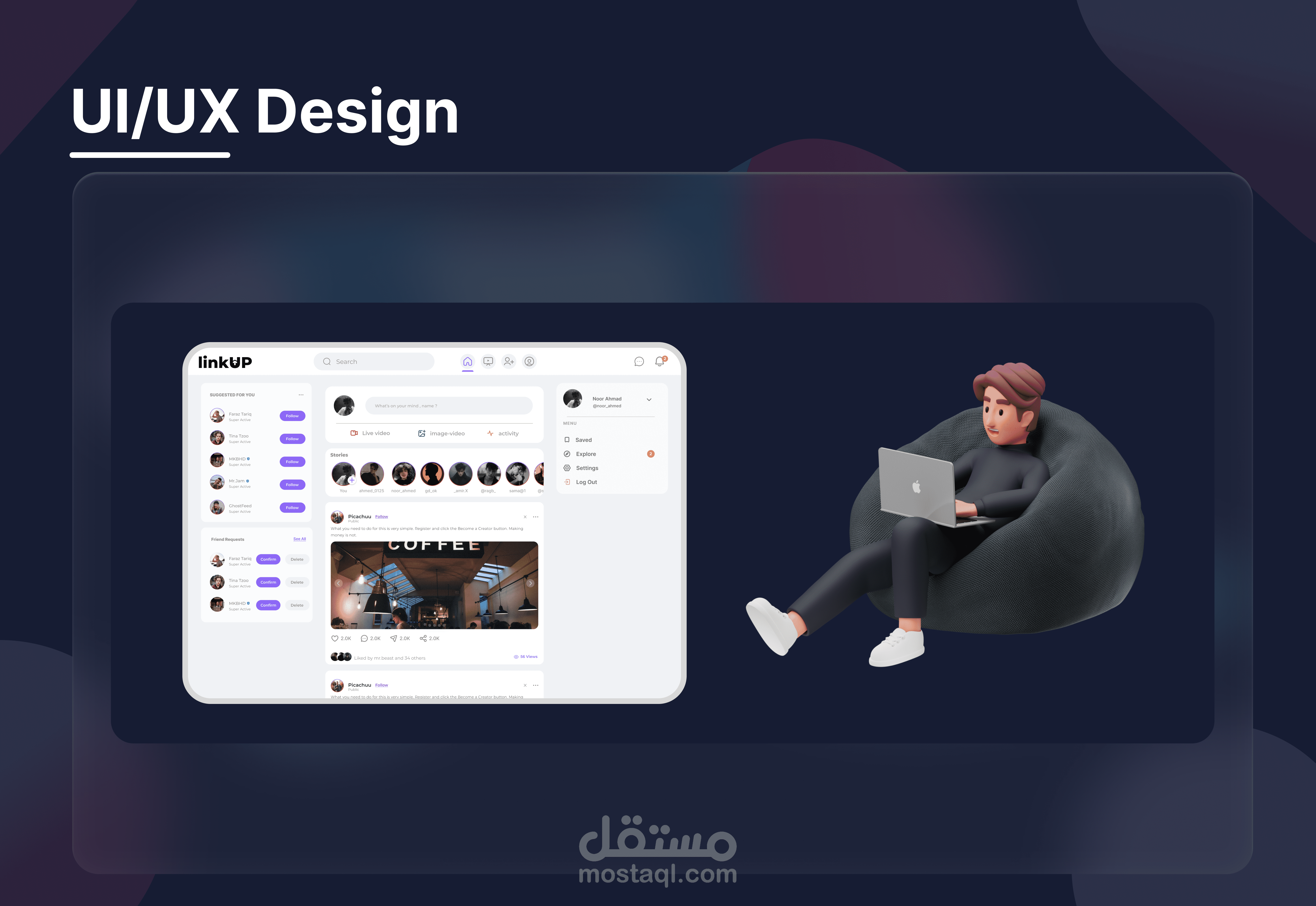 منصة تواصل اجتماعي عصرية وحديثة"LinkUP"
