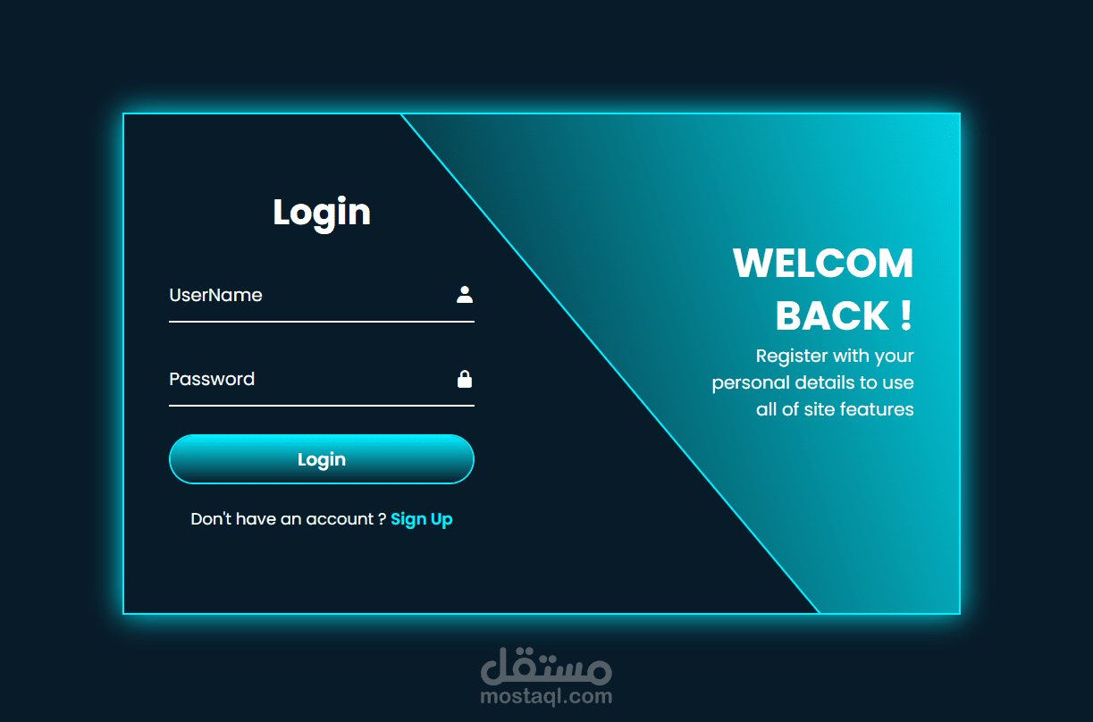 تصميم واجهة تسجيل دخول (Login) باستخدام HTML وCSS، مع التركيز على البساطة وتجربة المستخدم. التصميم متجاوب مع مختلف الشاشات ويتميز بألوان متناسقة وتنسيق نظيف يلائم التطبيقات والمواقع الحديثة