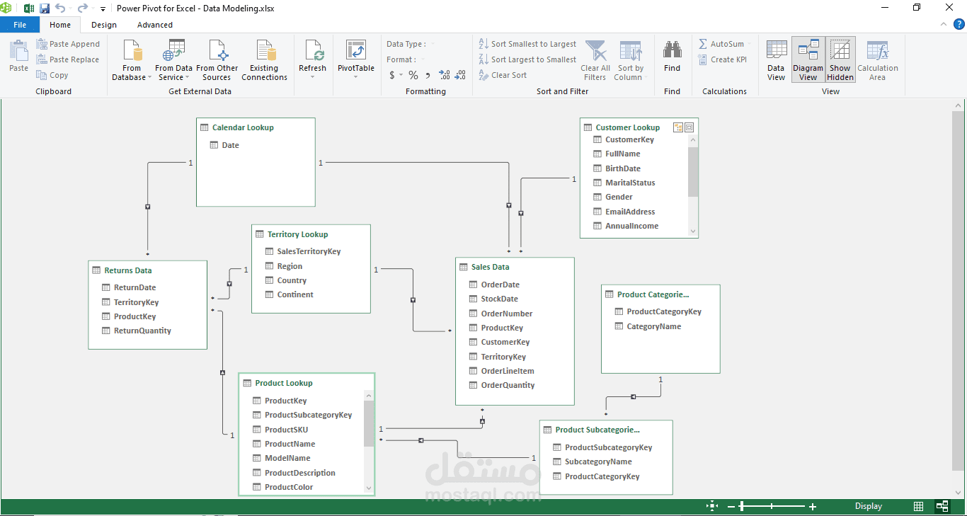 ️ إنشاء نموذج بيانات متكامل باستخدام Power Pivot
