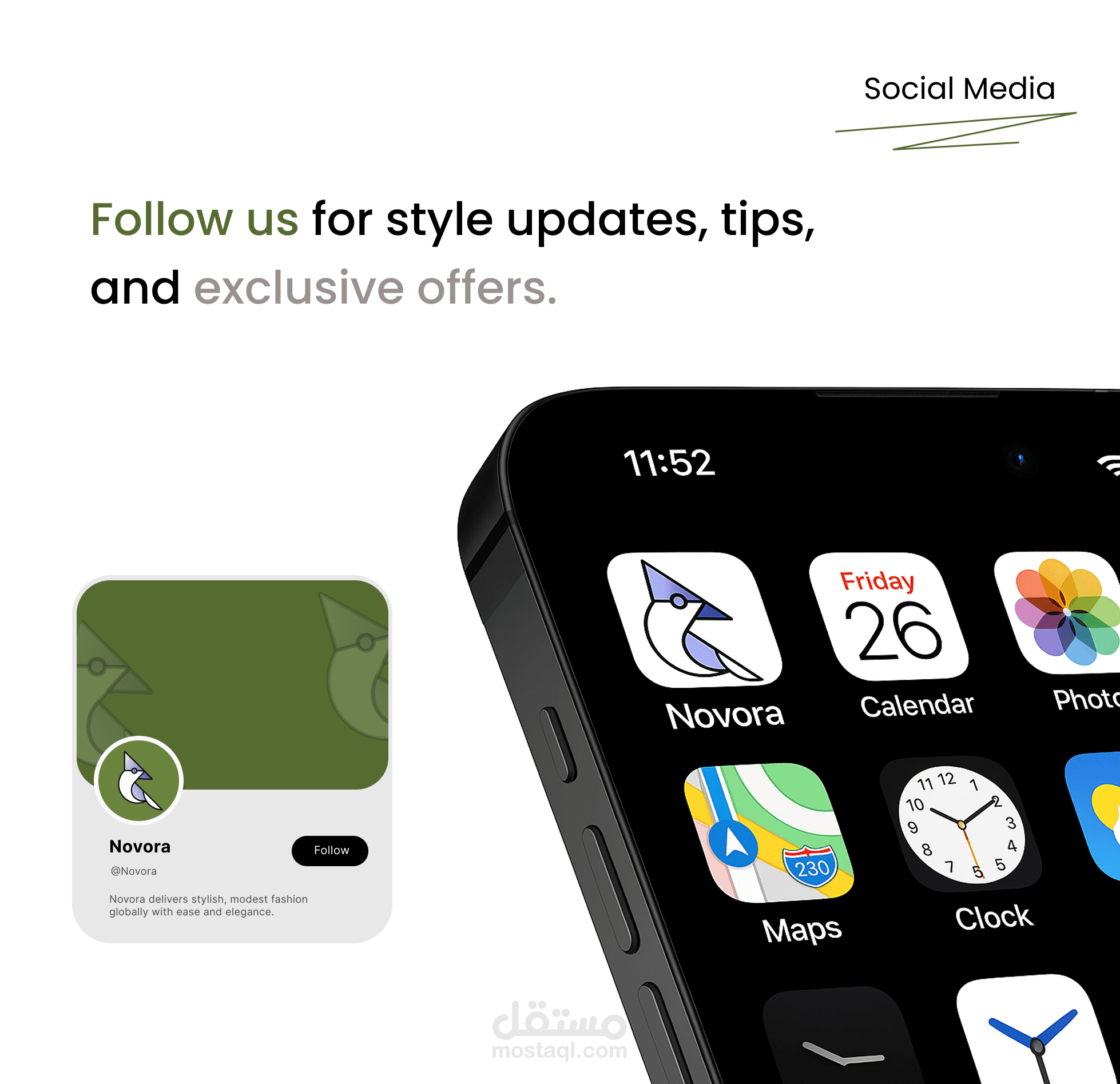 إنشاء Mockups جذابة باستخدام ألوان وهوية نوفورا البصرية.