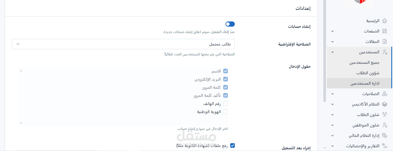تطوير الواجهة الإدارية الكاملة للمستخدمين والمحتوى التعليمي