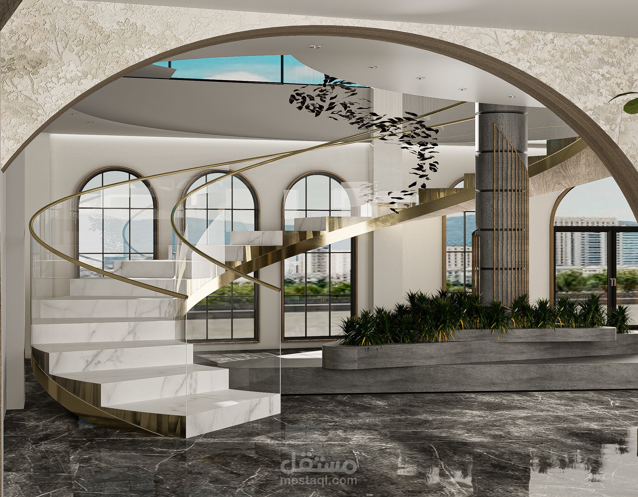 Interior design project for a resort in Ras El Hekma, completed as part of the third-year coursework at the Faculty of Fine Arts – Interior Design Department. The concept blends tropical and modern styles, aiming to create a luxurious yet relaxing atmosphere inspired by nature.