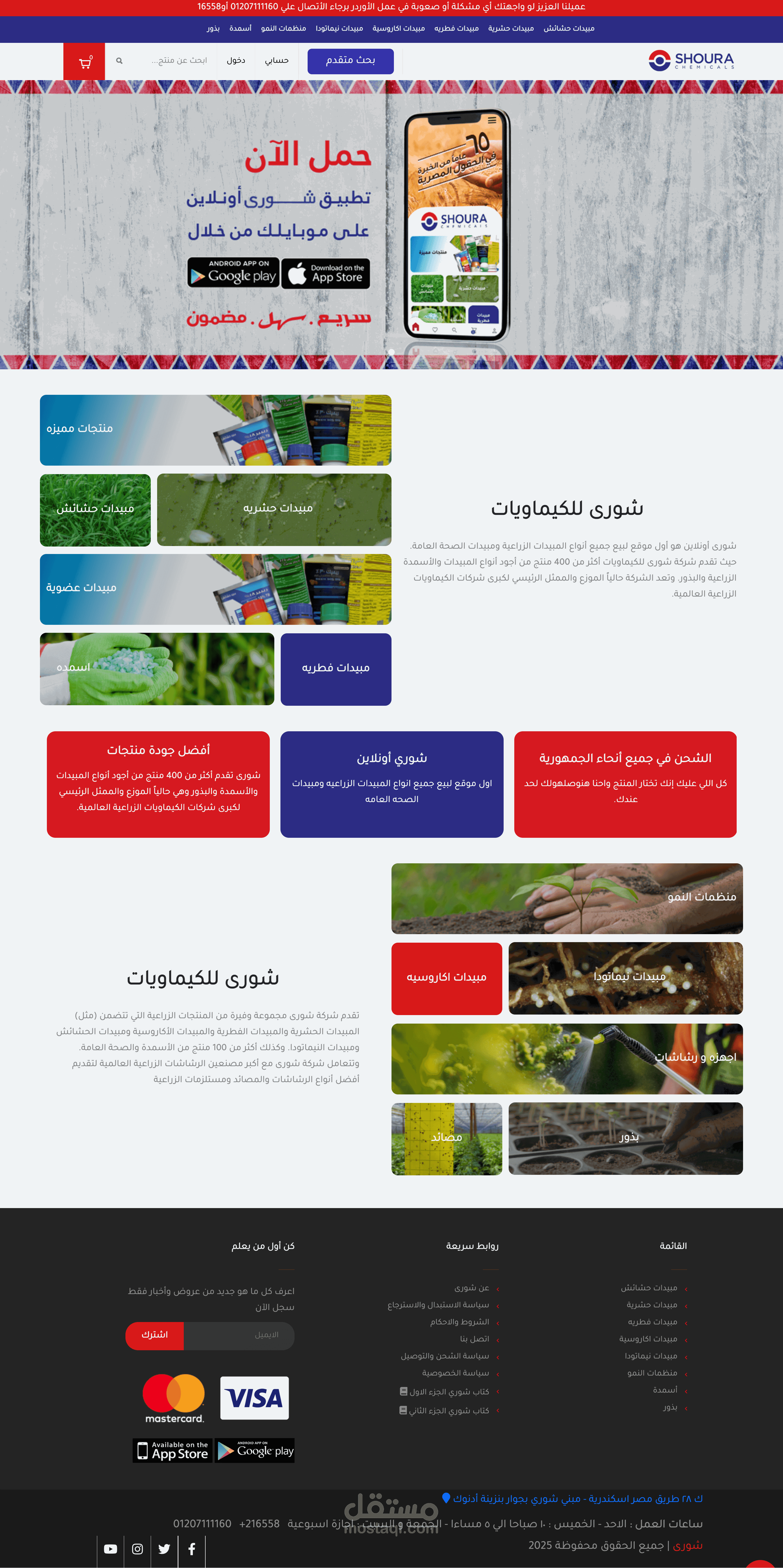 شورى أونلاين هو أول موقع لبيع جميع أنواع المبيدات الزراعية ومبيدات الصحة العامة. حيث تقدم شركة شورى للكيماويات أكثر من 400 منتج من أجود أنواع المبيدات والأسمدة الزراعية والبذور. وتعد الشركة حالياً الموزع والممثل الرئيسي لكبرى شركات الكيماويات الزراعية العالمية.