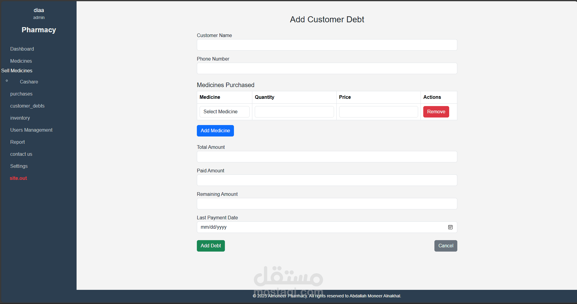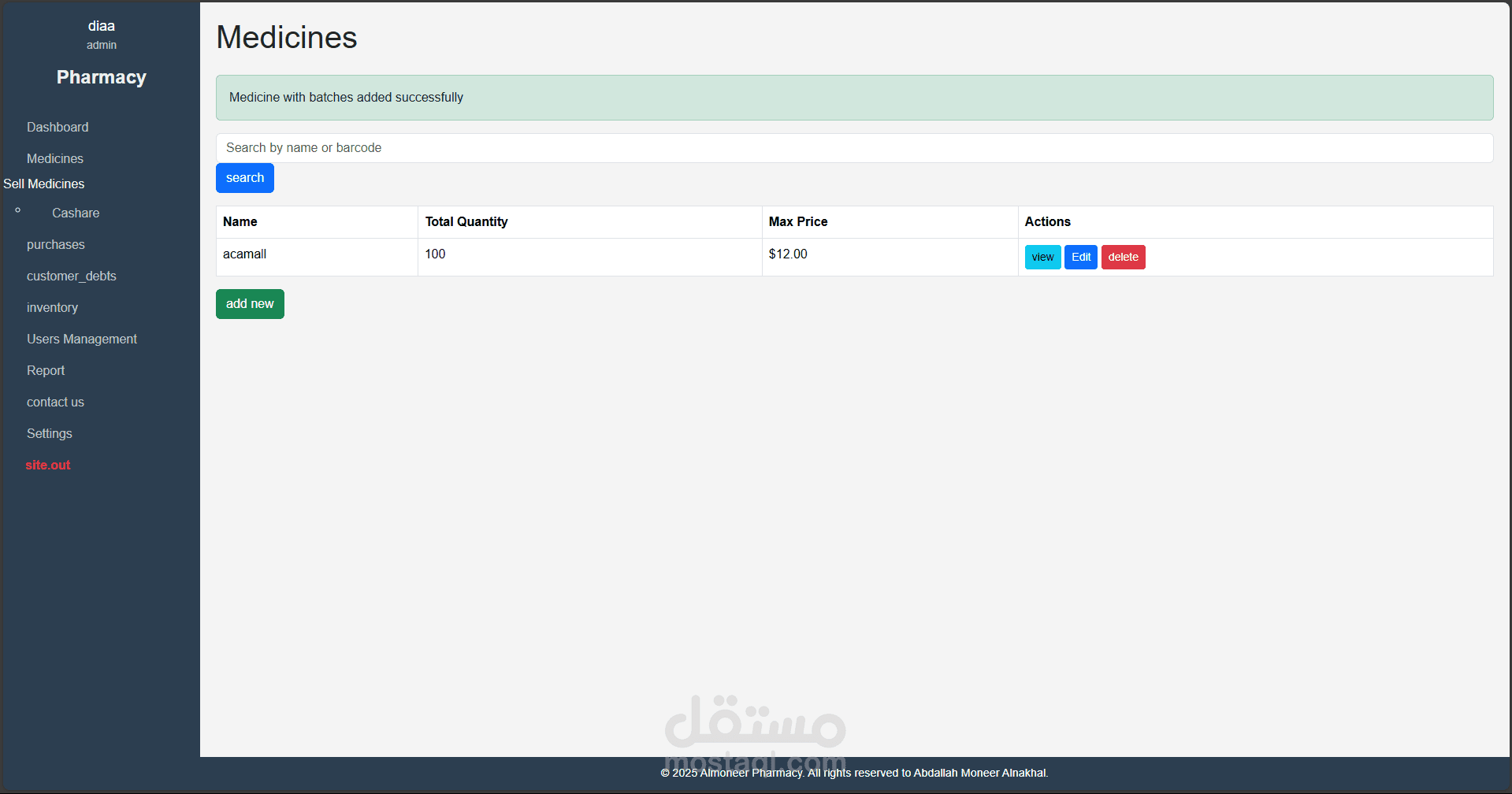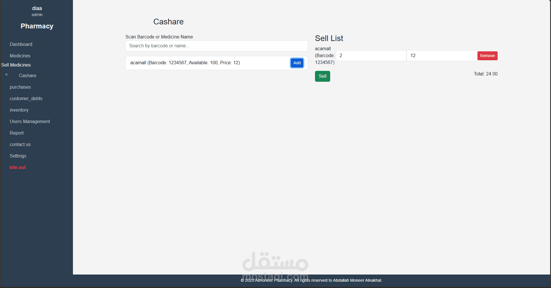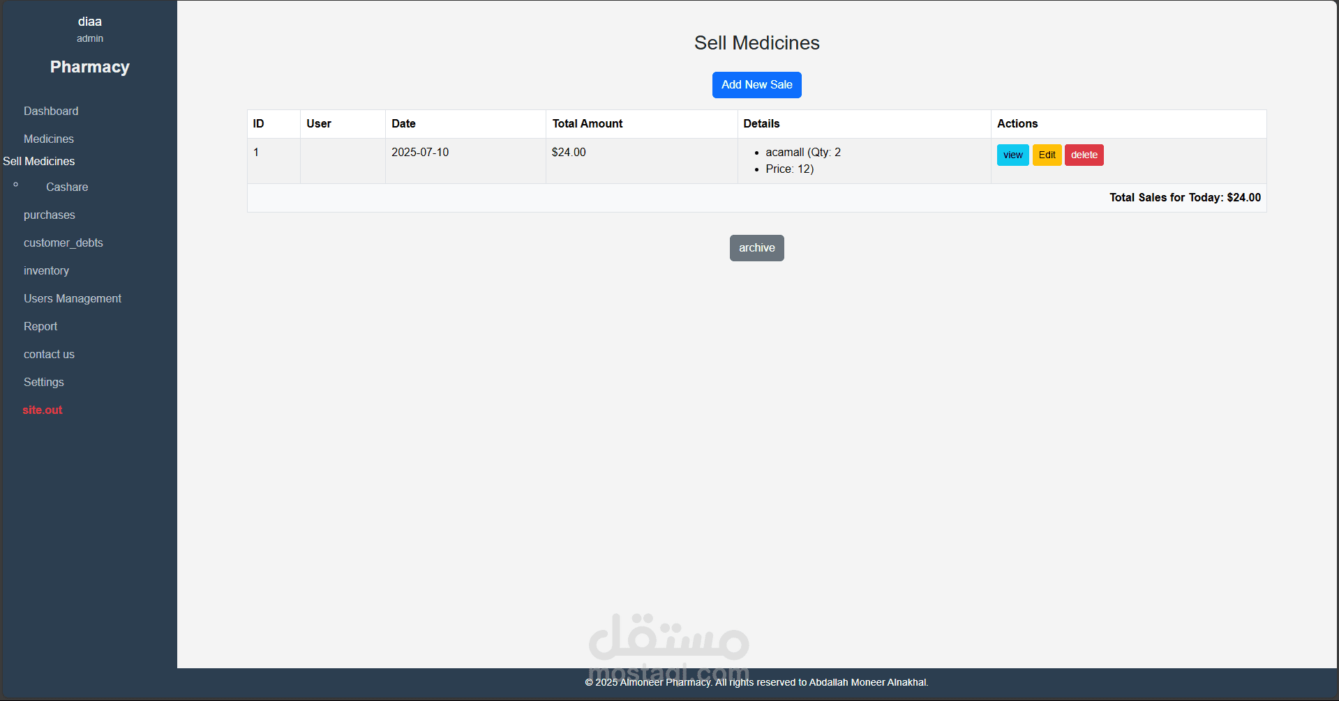 نظام متكامل لإدارة الصيدليات تم تطويره باستخدام Laravel وPHP Desktop، يهدف إلى تسهيل عمليات البيع والشراء وإدارة الأدوية والمخزون، مع توفير تجربة استخدام مرنة وسلسة مناسبة لجميع مستويات المستخدمين، من الصيادلة إلى المحاسبين.