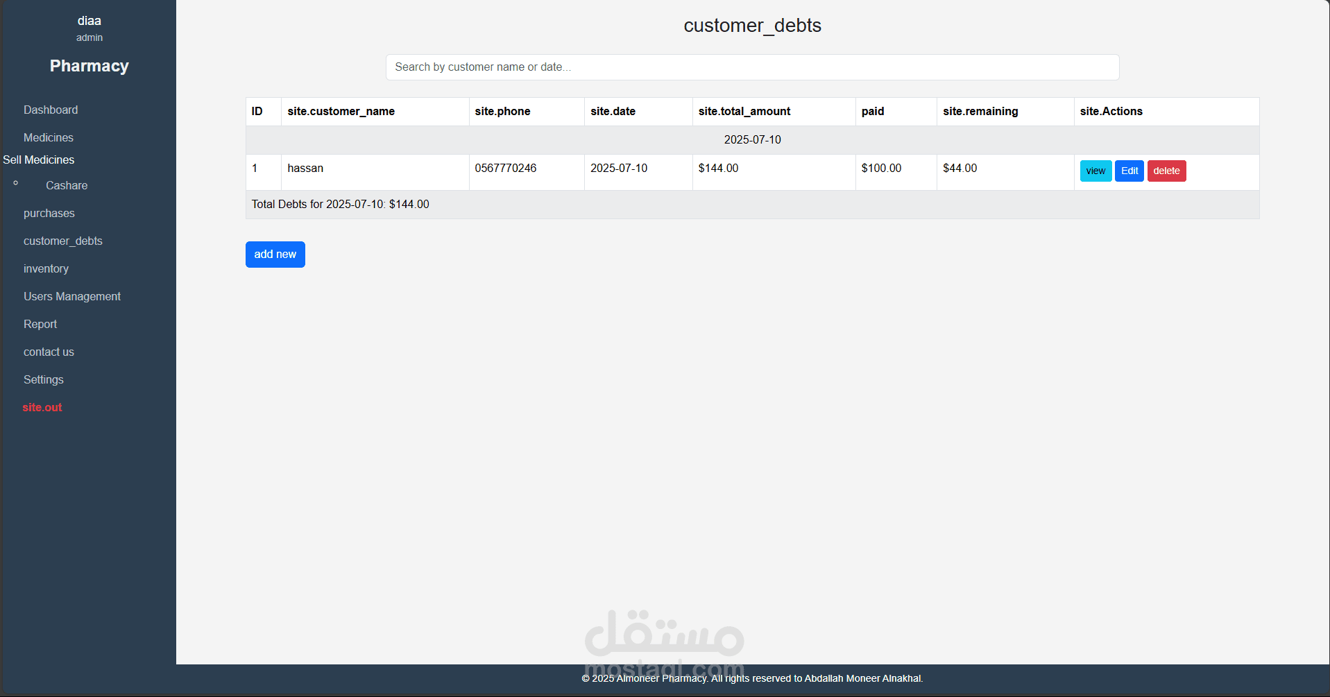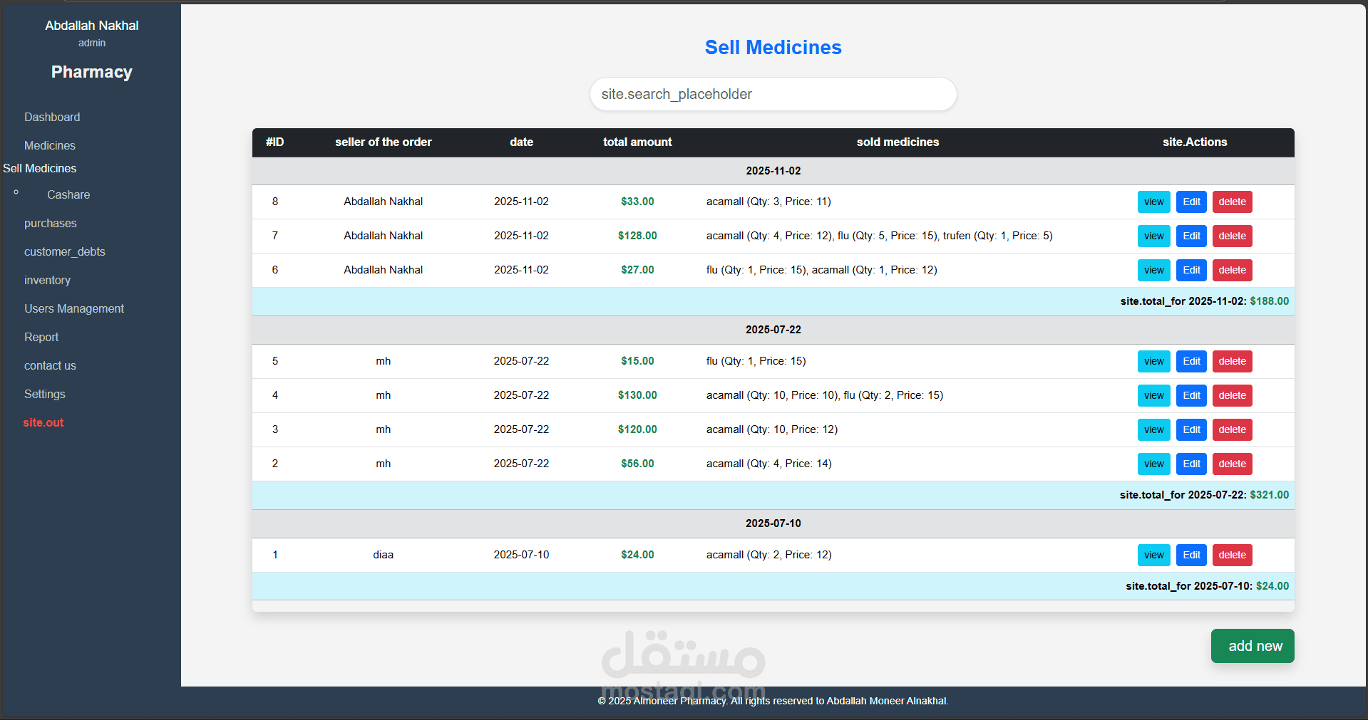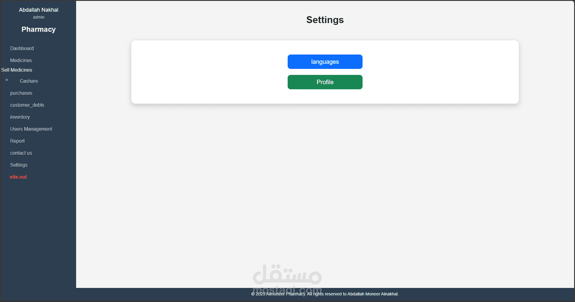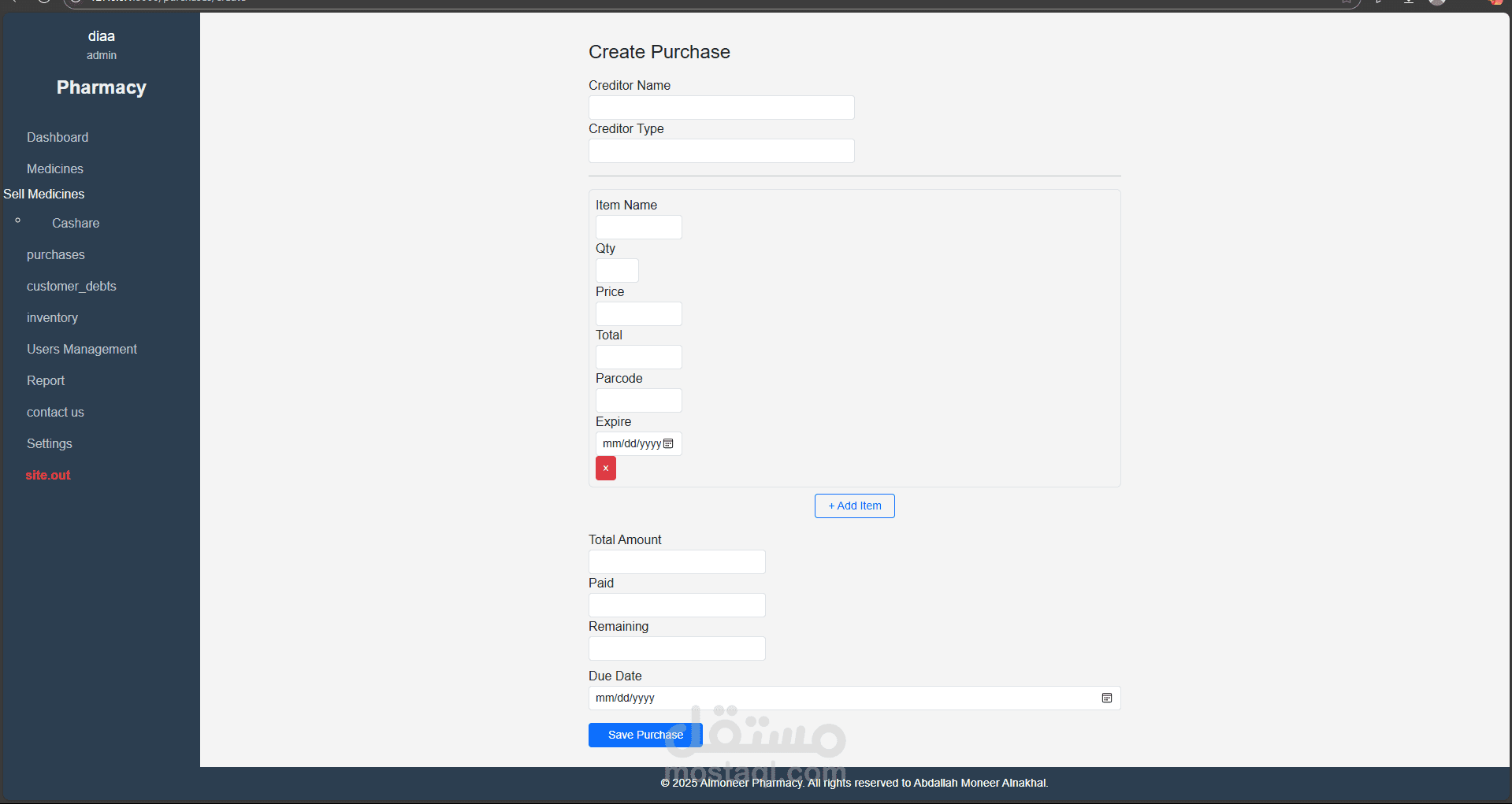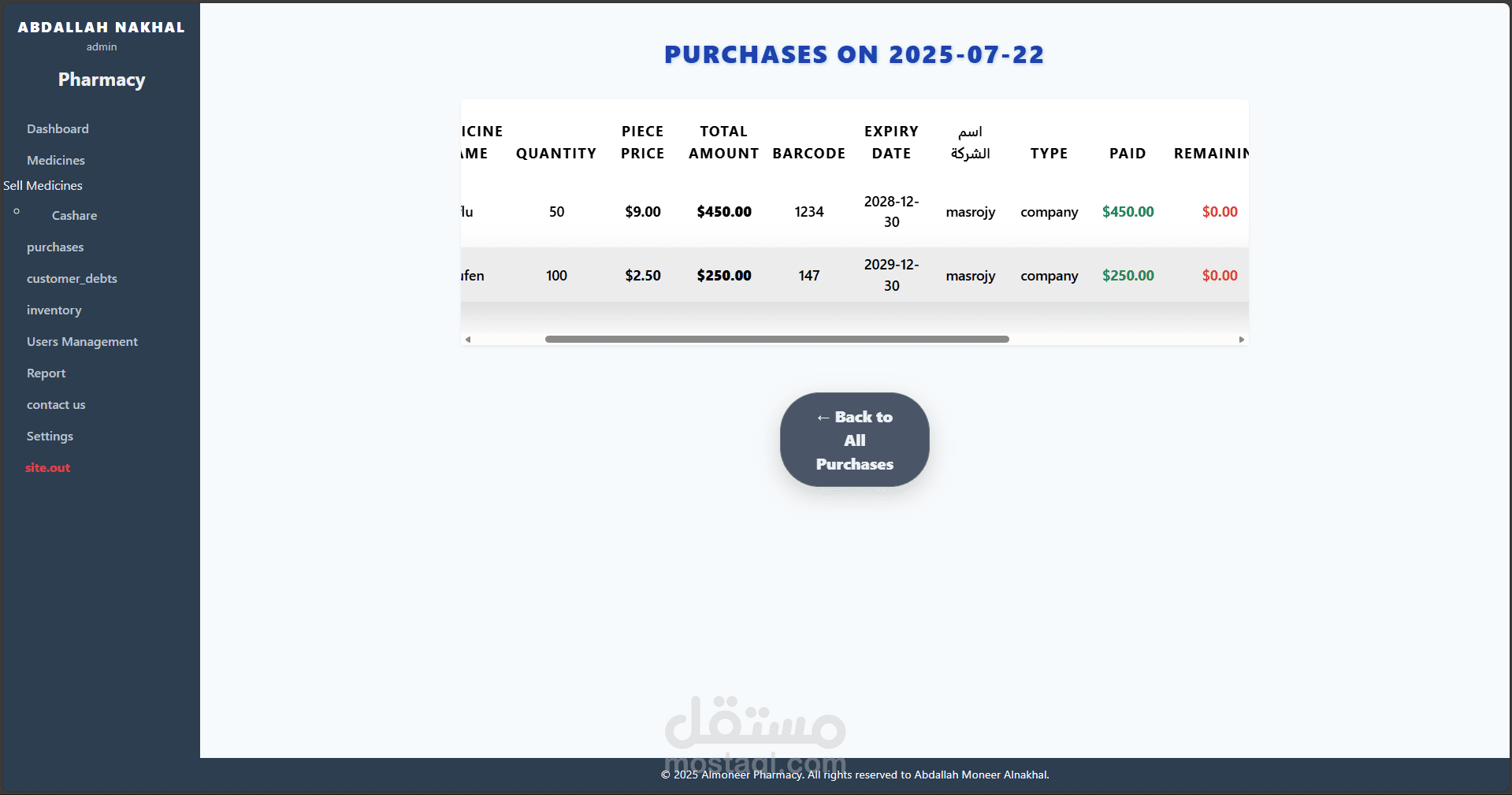 نظام متكامل لإدارة الصيدليات تم تطويره باستخدام Laravel وPHP Desktop، يهدف إلى تسهيل عمليات البيع والشراء وإدارة الأدوية والمخزون، مع توفير تجربة استخدام مرنة وسلسة مناسبة لجميع مستويات المستخدمين، من الصيادلة إلى المحاسبين.