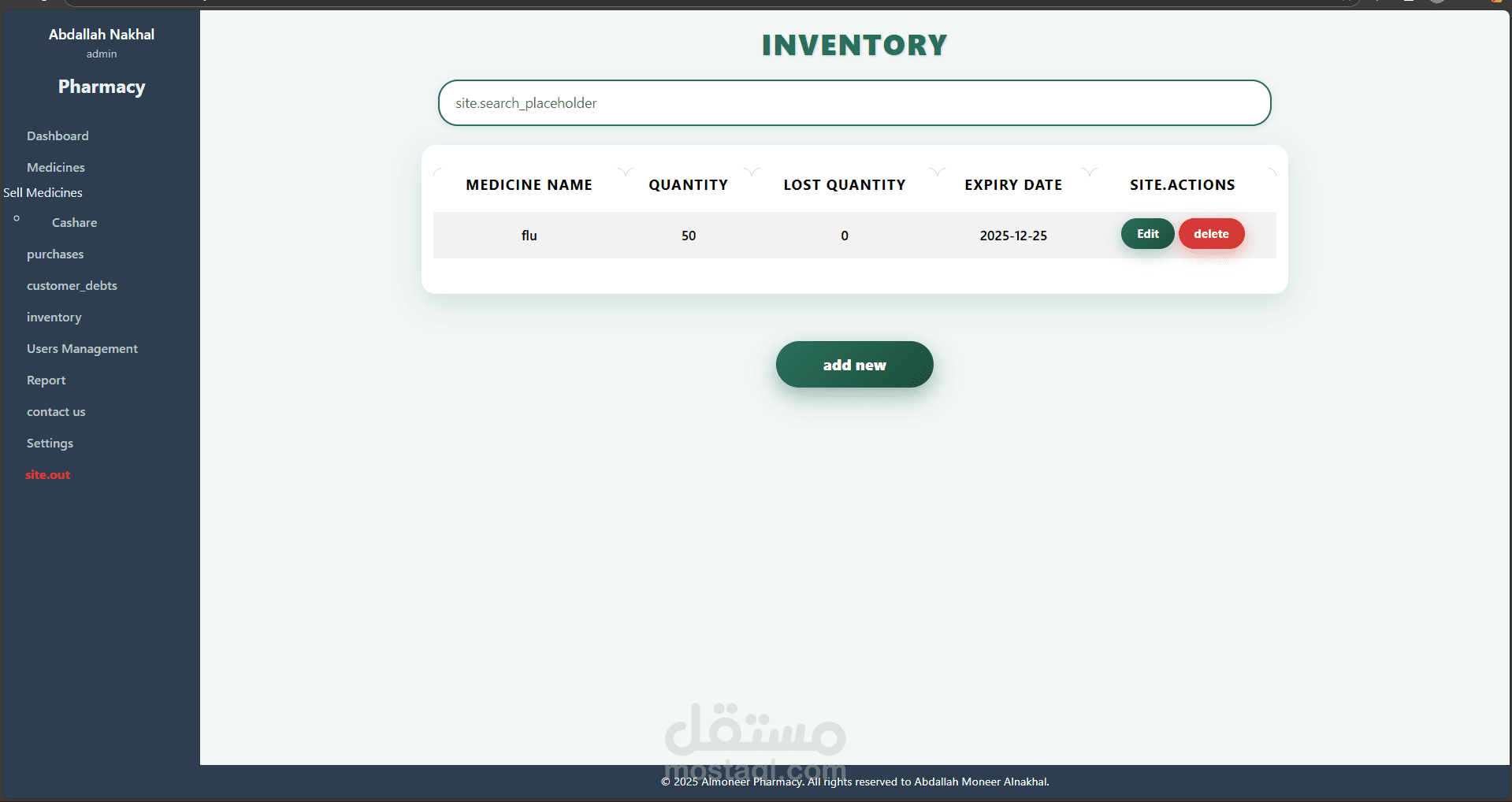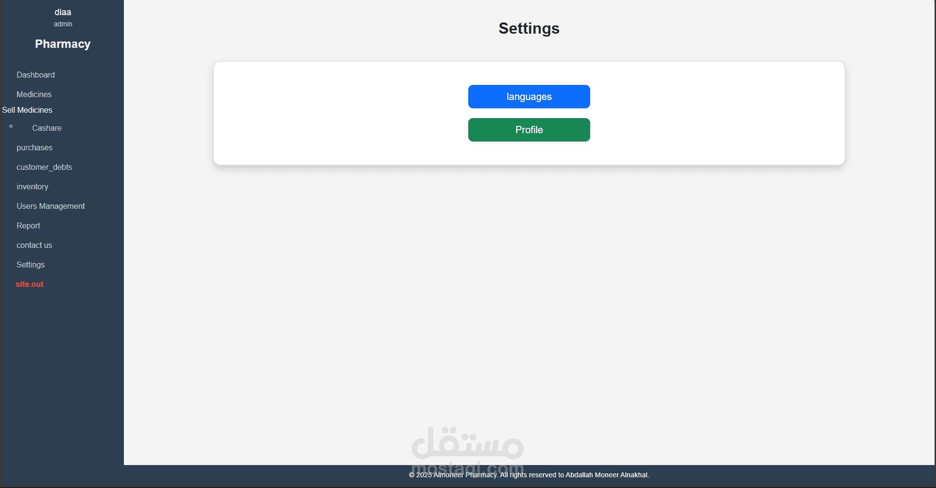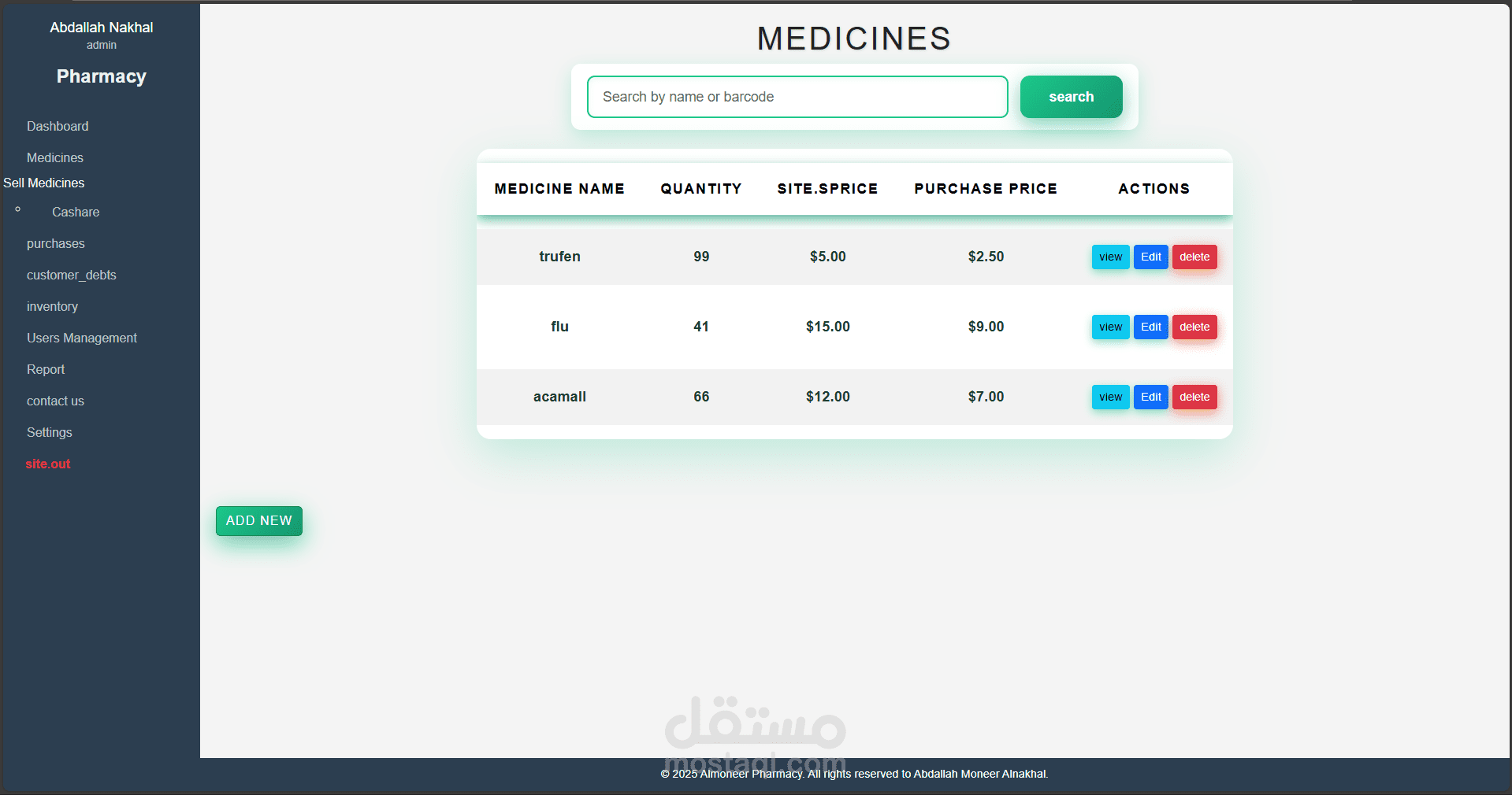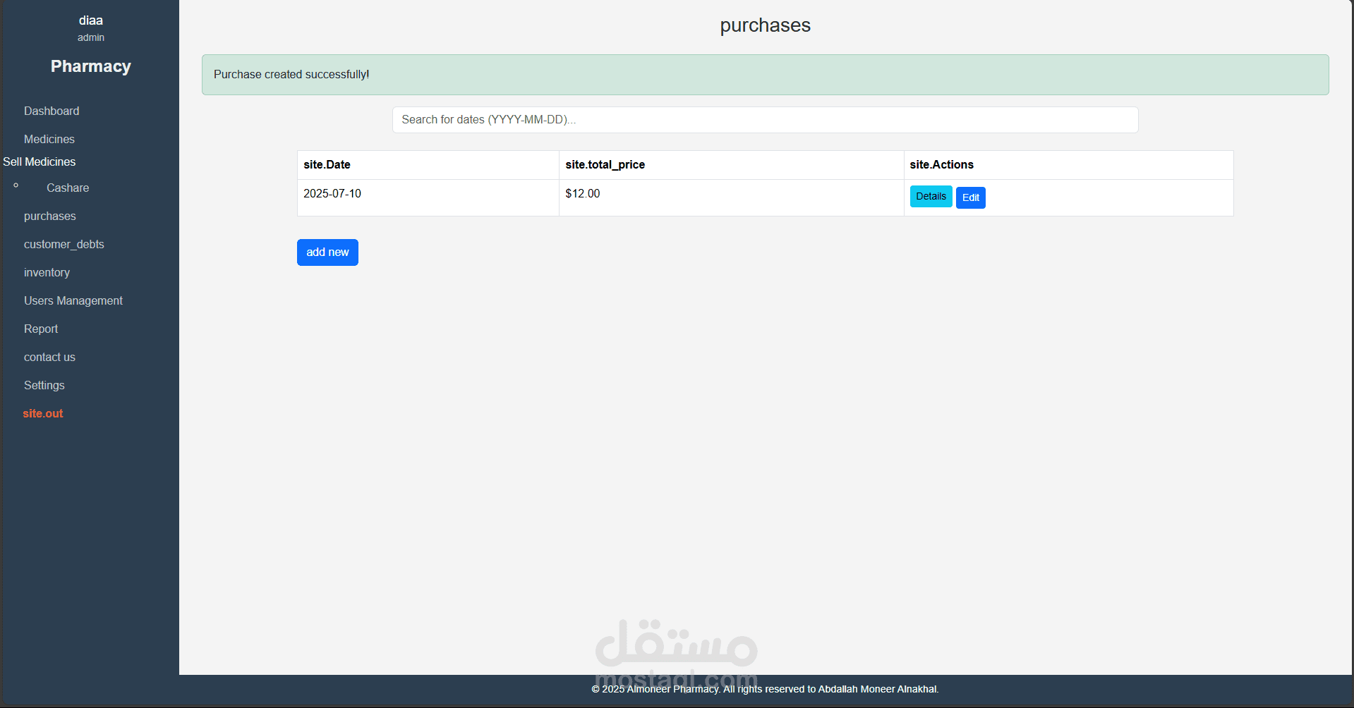 نظام متكامل لإدارة الصيدليات تم تطويره باستخدام Laravel وPHP Desktop، يهدف إلى تسهيل عمليات البيع والشراء وإدارة الأدوية والمخزون، مع توفير تجربة استخدام مرنة وسلسة مناسبة لجميع مستويات المستخدمين، من الصيادلة إلى المحاسبين.