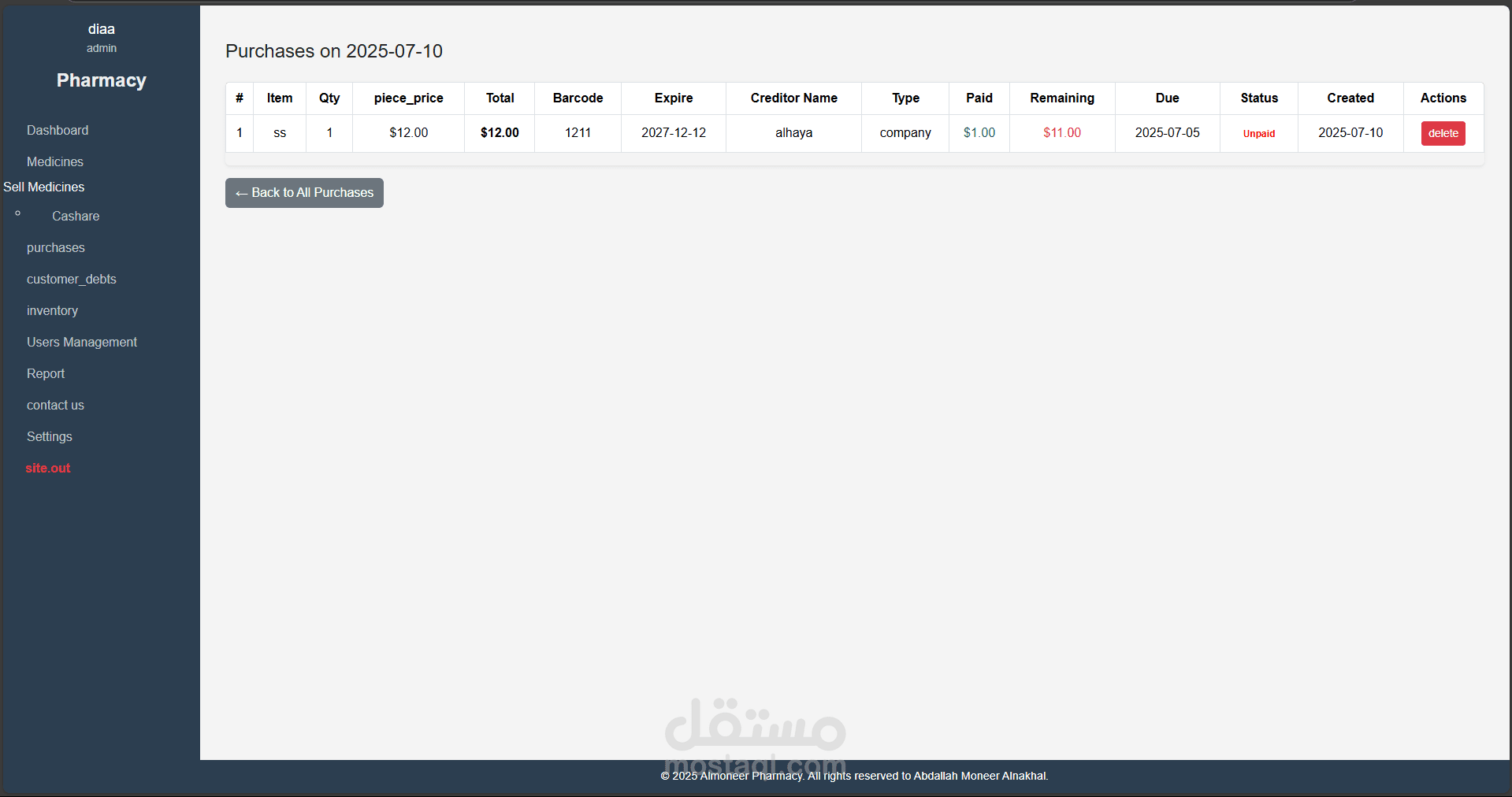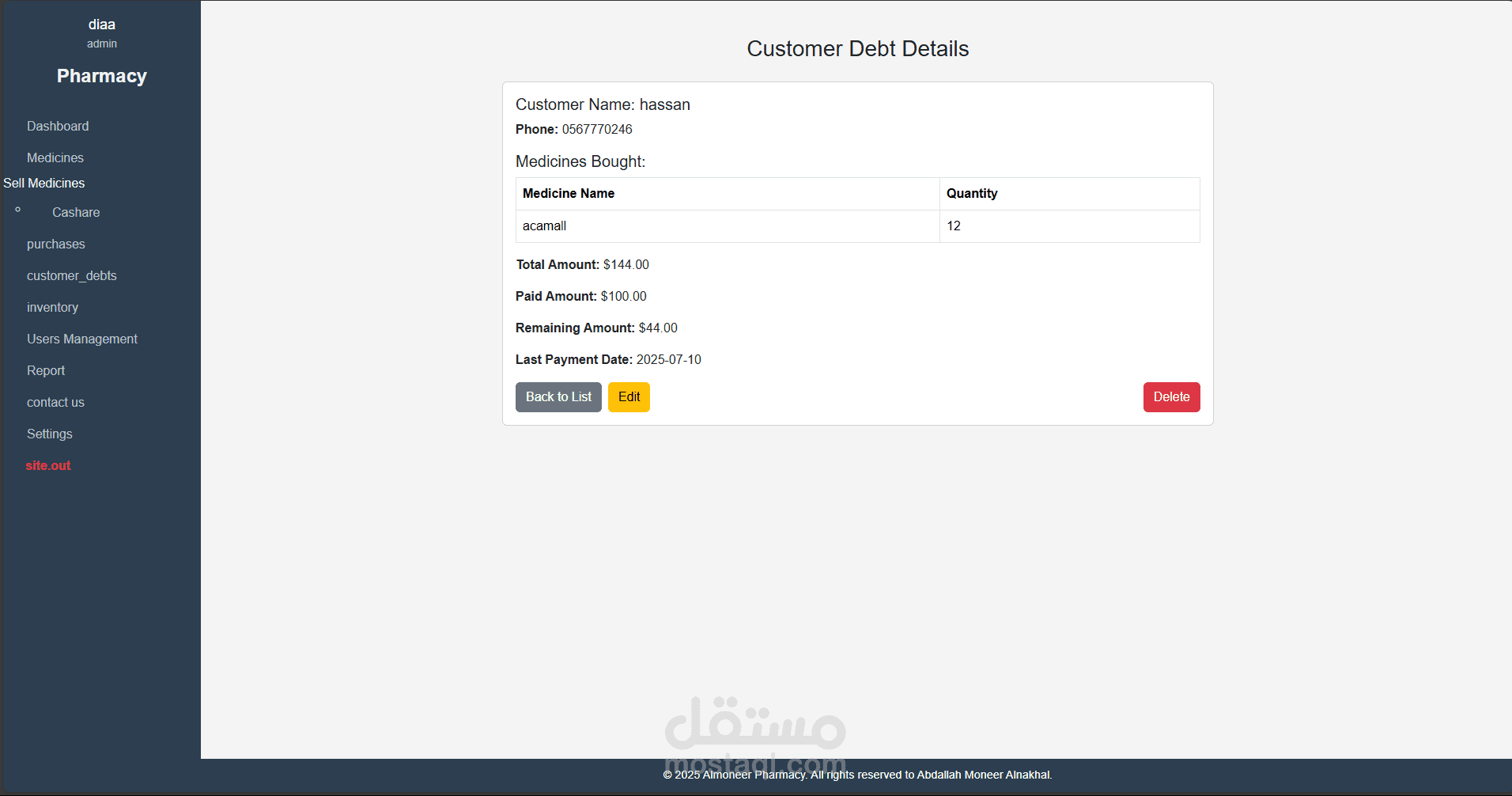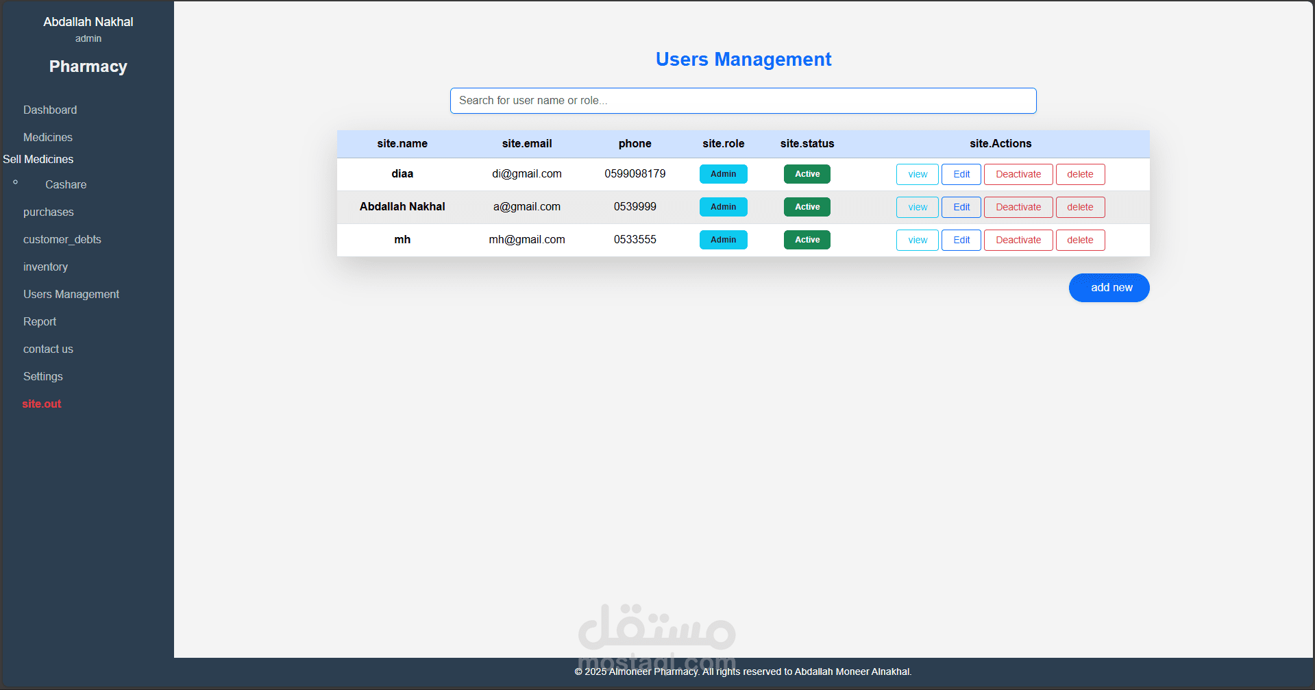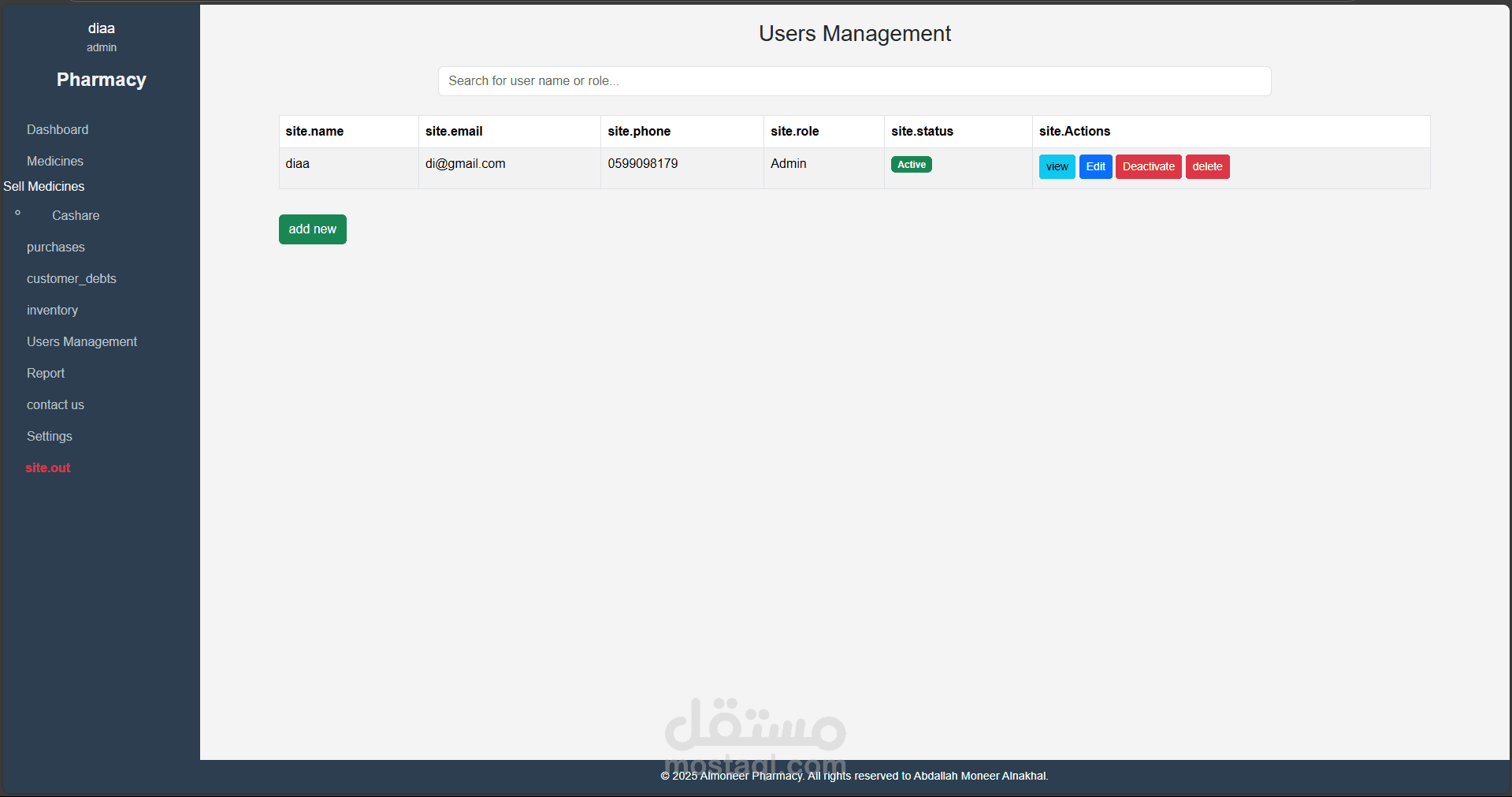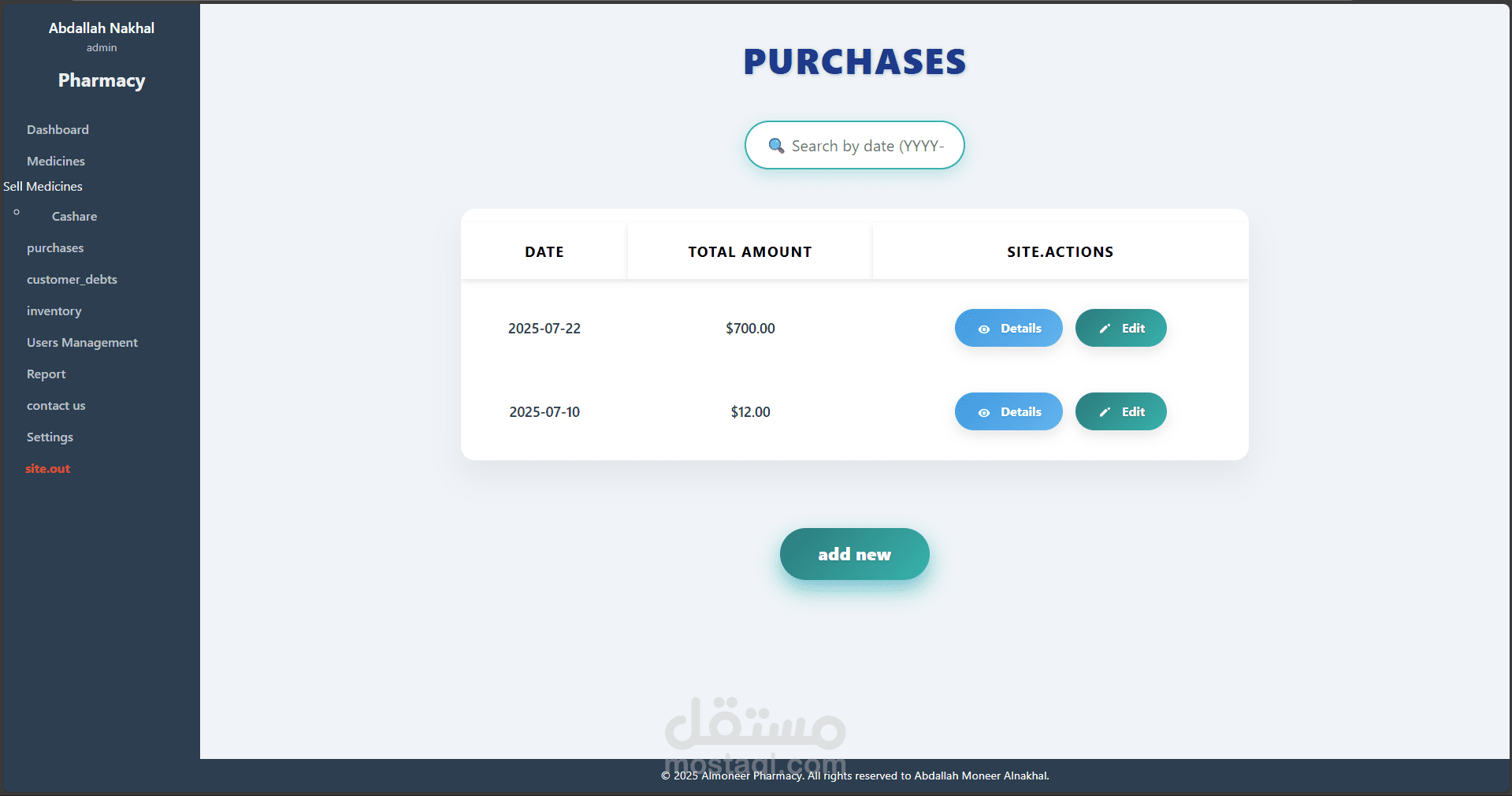 نظام متكامل لإدارة الصيدليات تم تطويره باستخدام Laravel وPHP Desktop، يهدف إلى تسهيل عمليات البيع والشراء وإدارة الأدوية والمخزون، مع توفير تجربة استخدام مرنة وسلسة مناسبة لجميع مستويات المستخدمين، من الصيادلة إلى المحاسبين.