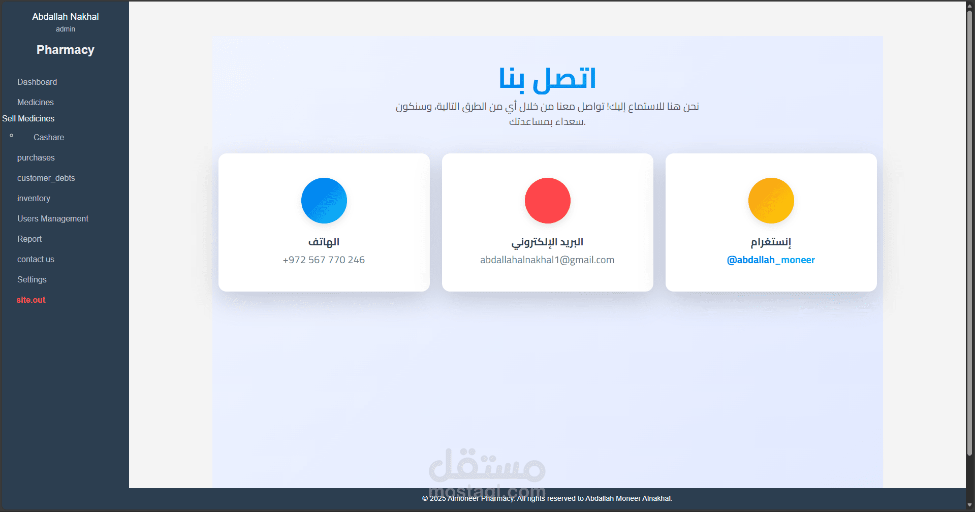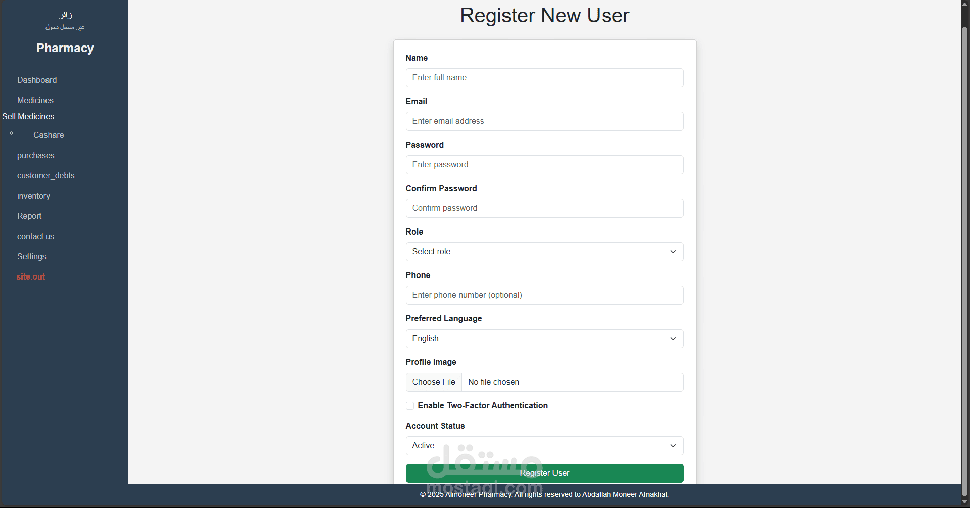 تسجيل دخول متعدد المستخدمين مع إمكانية تحديد صلاحيات كل مستخدم حسب دوره (مدير، صيدلي، موظف مبيعات...).