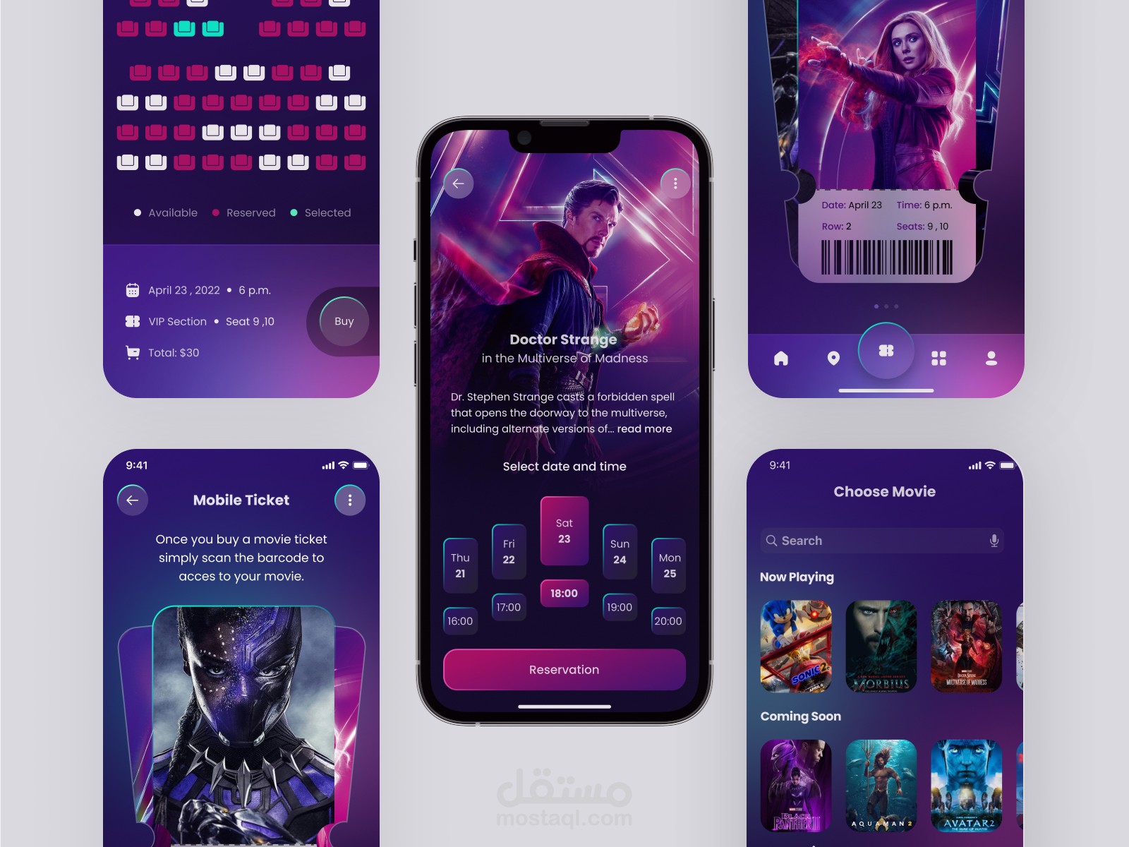 تطبيق سهل الاستخدام لحجز تذاكر السينما يوفر تجربة سلسة وسريعة لعشاق الأفلام. يهدف إلى تقليل وقت الحجز، وتوفير خيارات مشاهدة مخصصة بناءً على ذوق المستخدم.