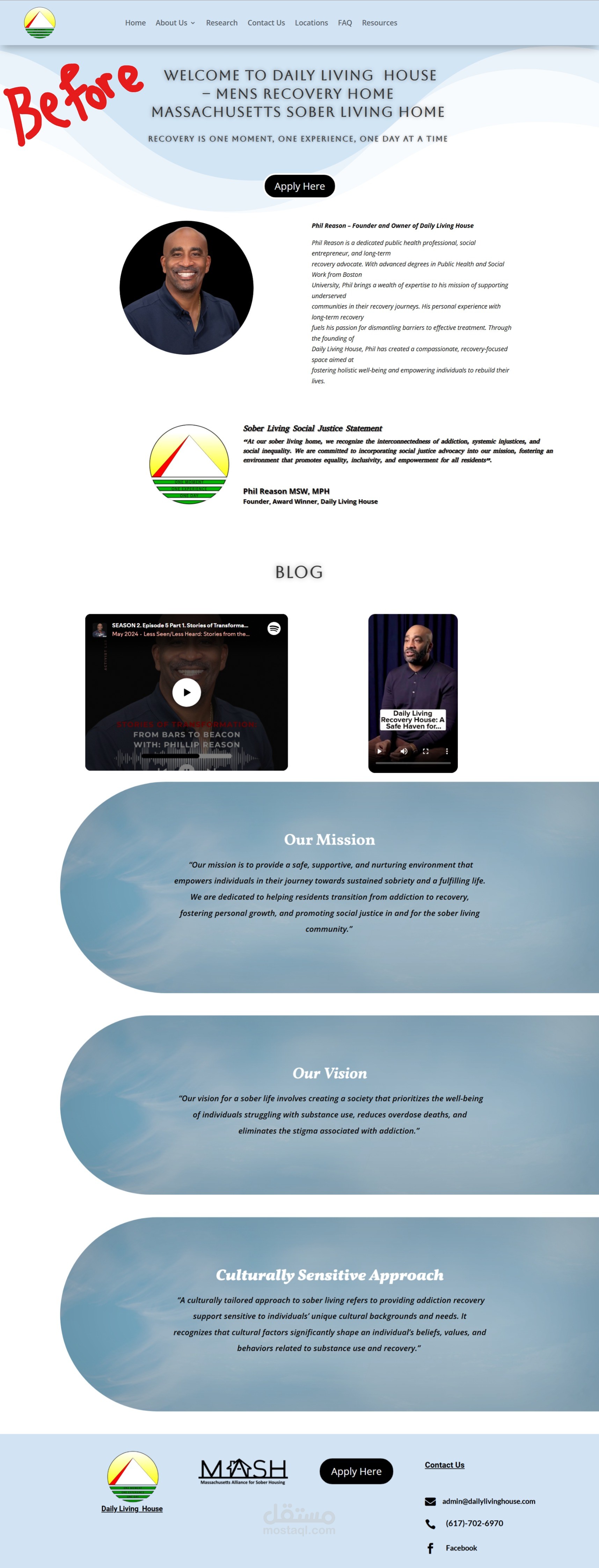 - تصميم الموقع ليكون صفحة واحدة مختصرة، بدلاً من 9 صفحات يؤدي التنقل بينها إلى ملل الزائر من الموقع.