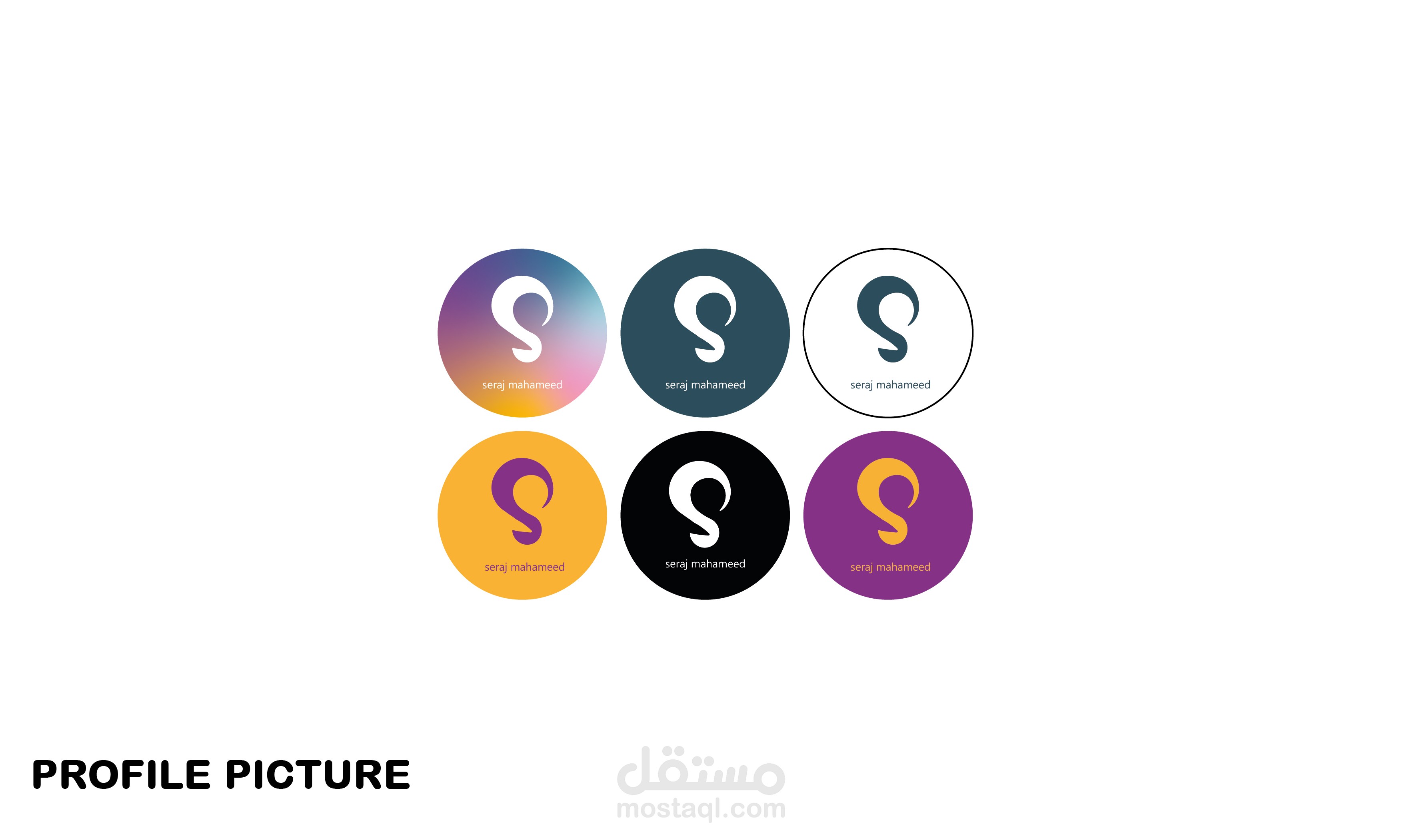 يبرز الشعار بوضوح الحرف الأول من اسم المصممة، " S "، ليصبح توقيعاً بصرياً أنيقاً يعكس الهوية بإحترافية.