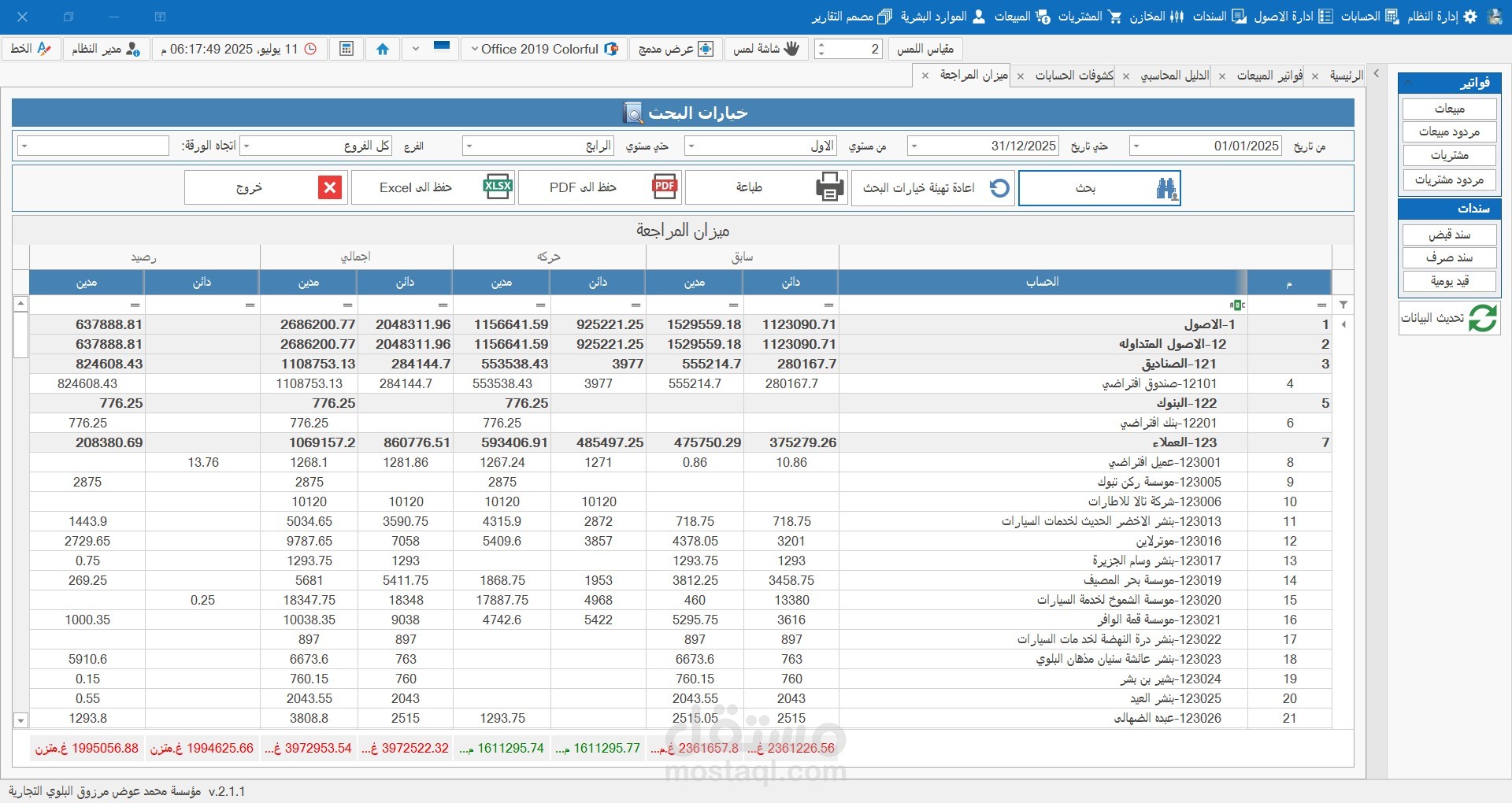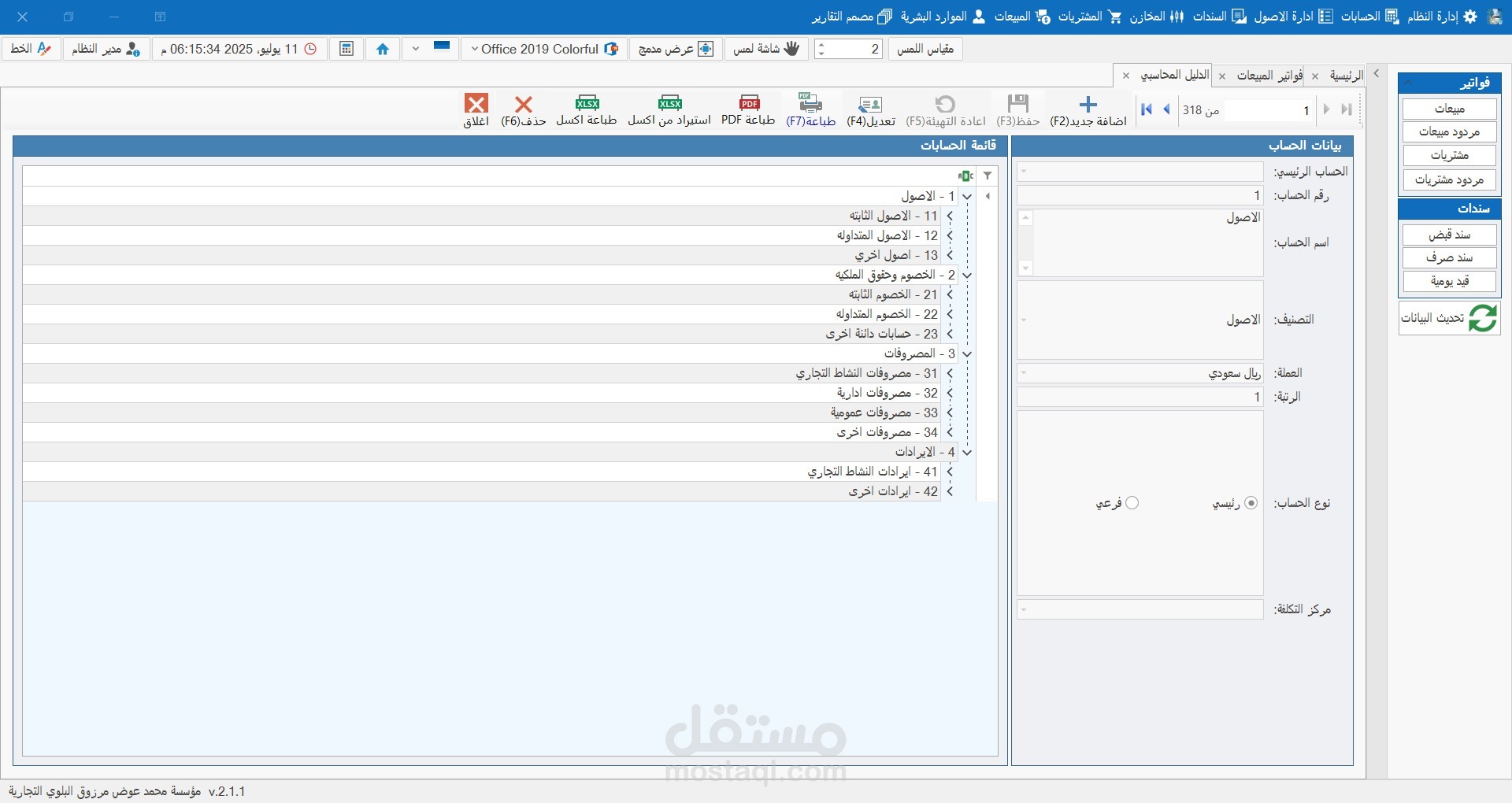 1- إدارة الحسابات العامة: شجرة حسابات مرنة تدعم التفرع غير المحدود وتحليل الحسابات بسهولة.