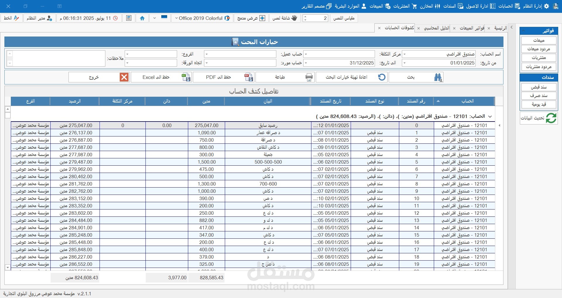2- القيود اليومية: إضافة وتعديل القيود بكل سهولة مع دعم للحسابات المدينة والدائنة.