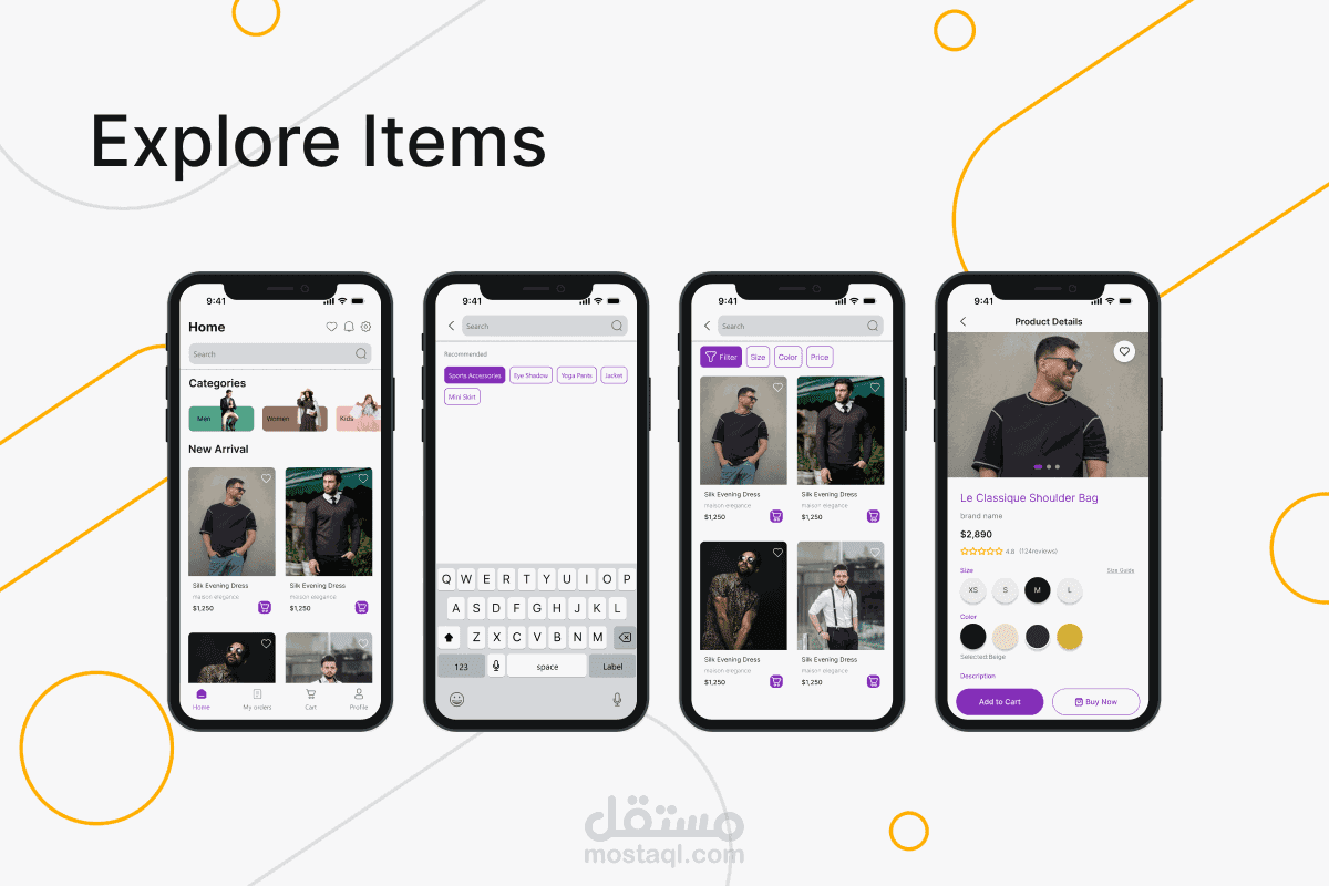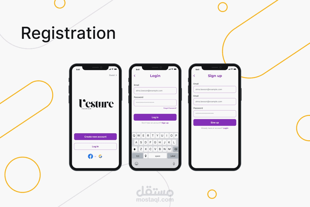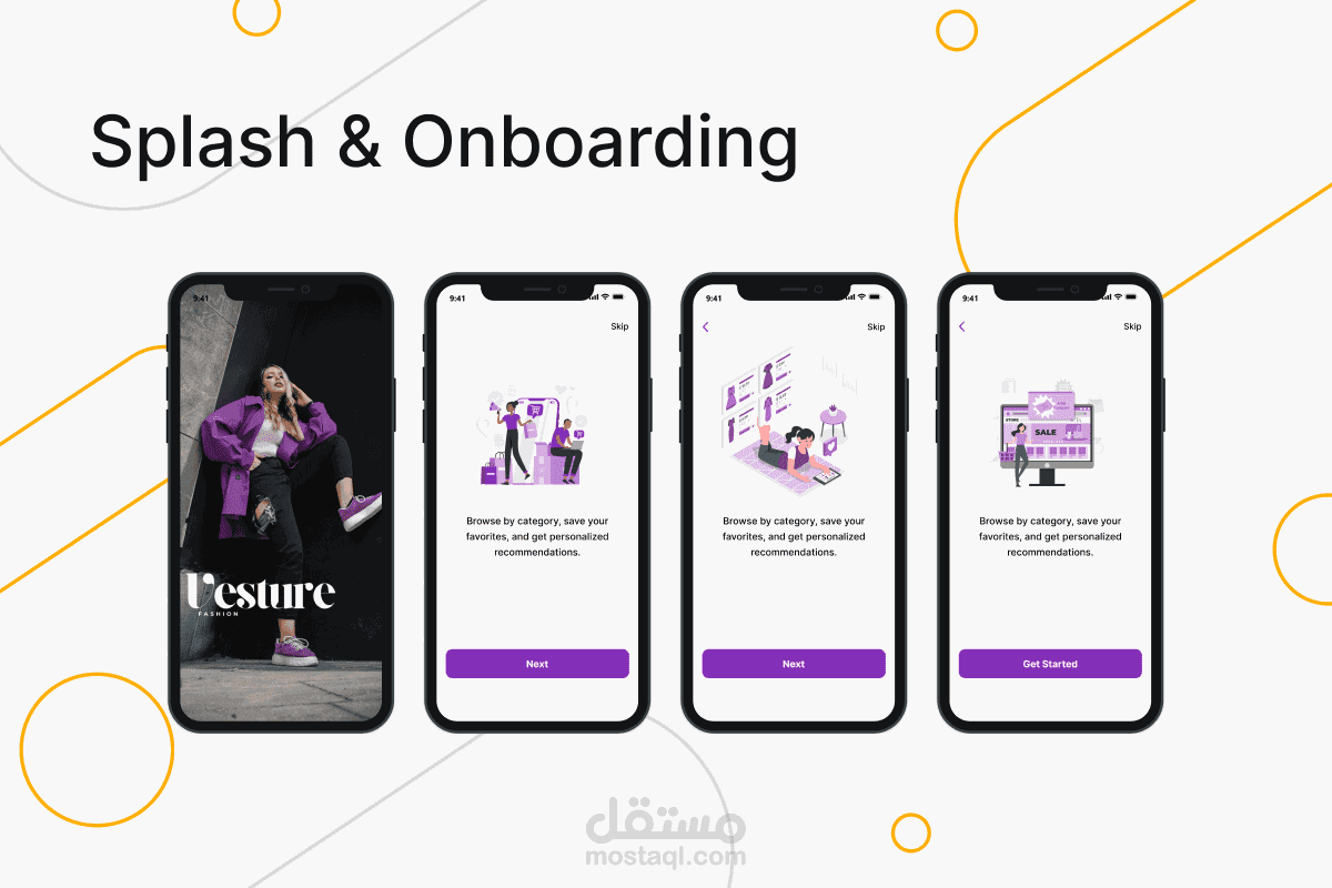 تصميم تجربة مستخدم ui لتطبيق تسوق أزياء شامل (Vesture) للرجال والنساء والأطفال fashion app