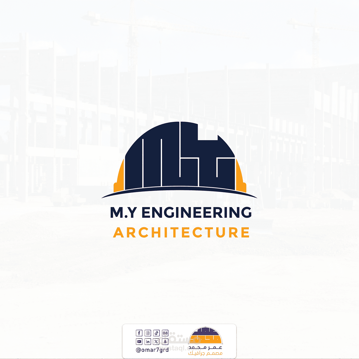 تصميم شعار لشركة "M.Y" للهندسة المعمارية والمقاولات، يعكس هوية العلامة التجارية ويرسخ مفاهيم الاحترافية والثقة.