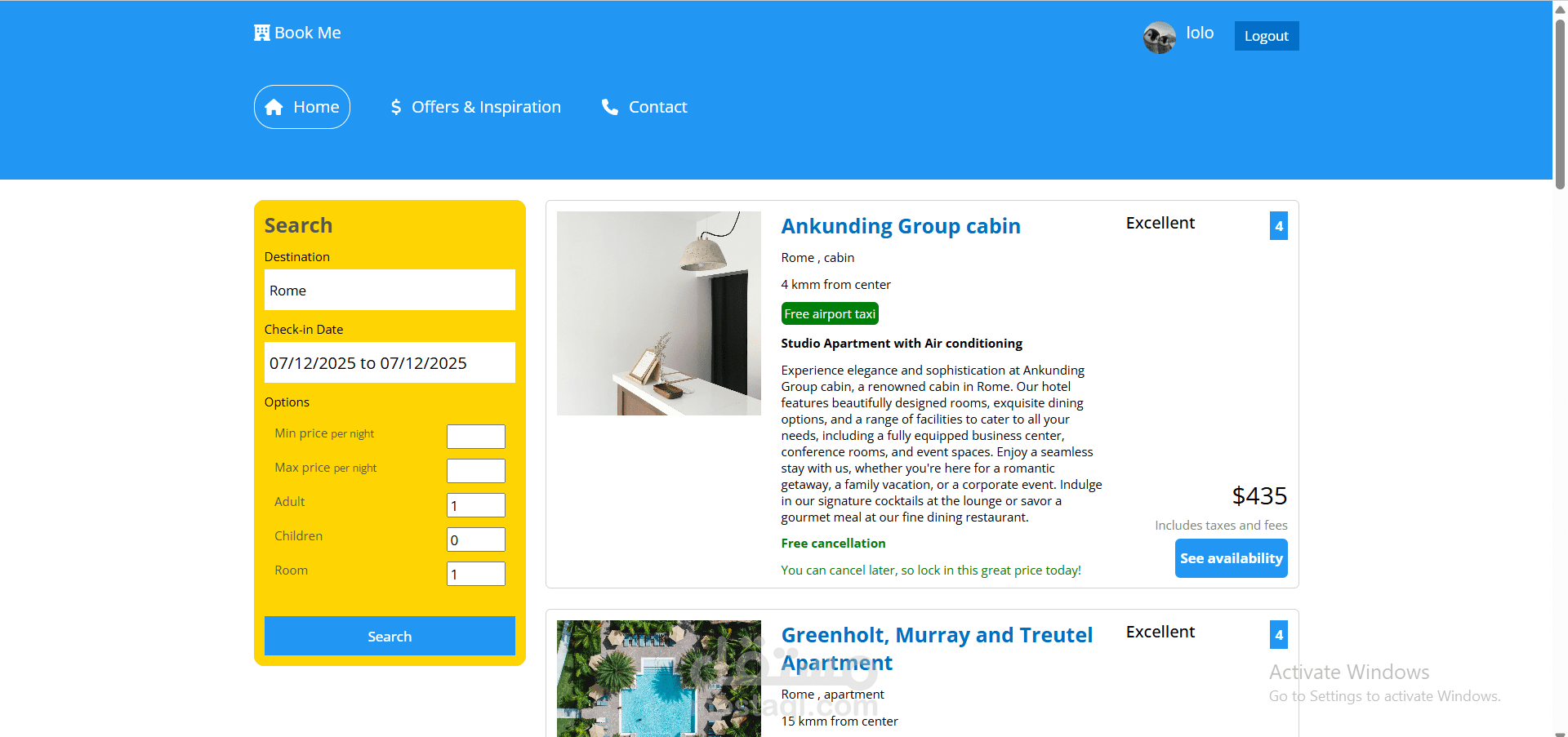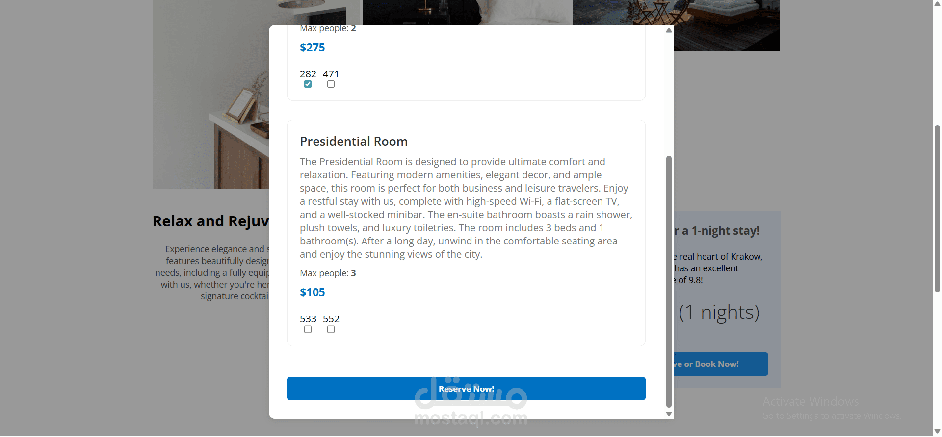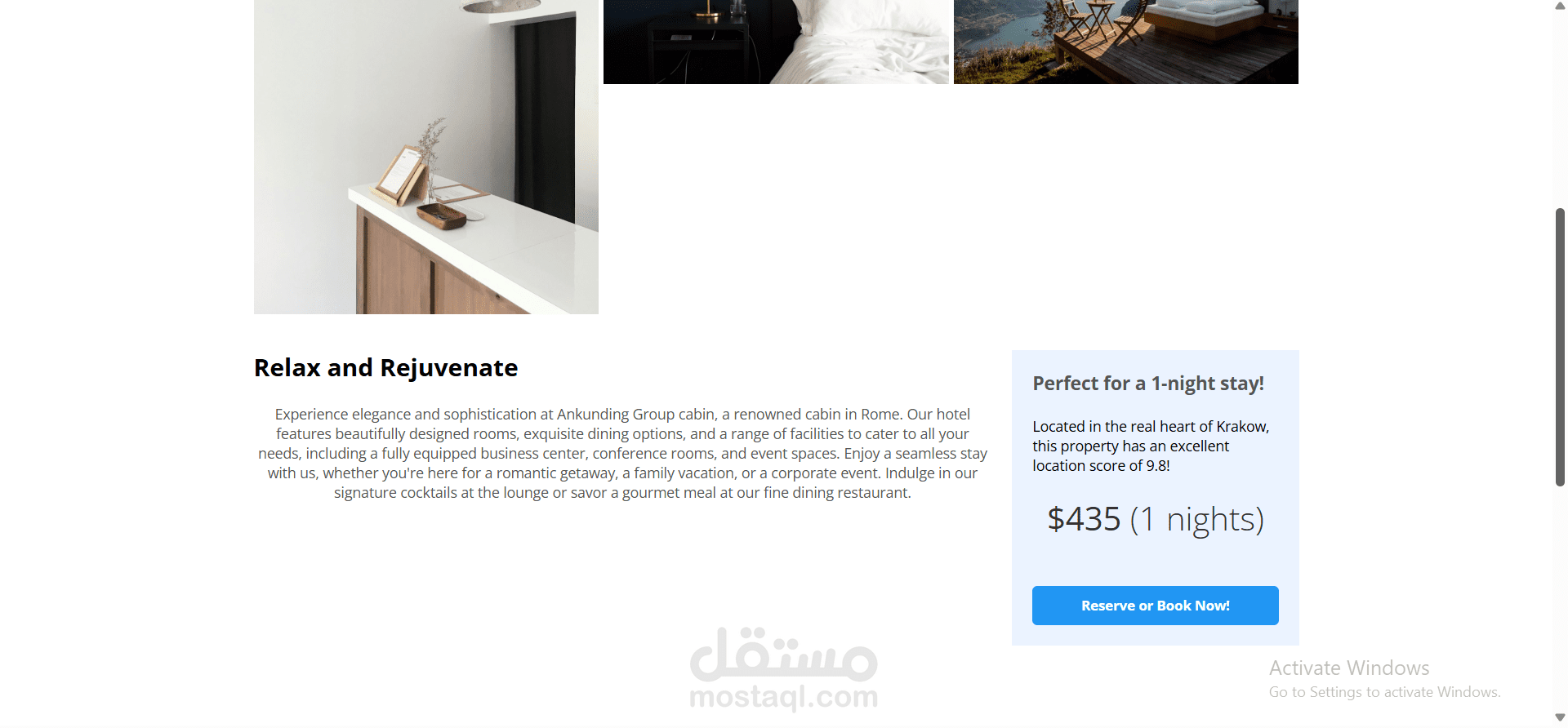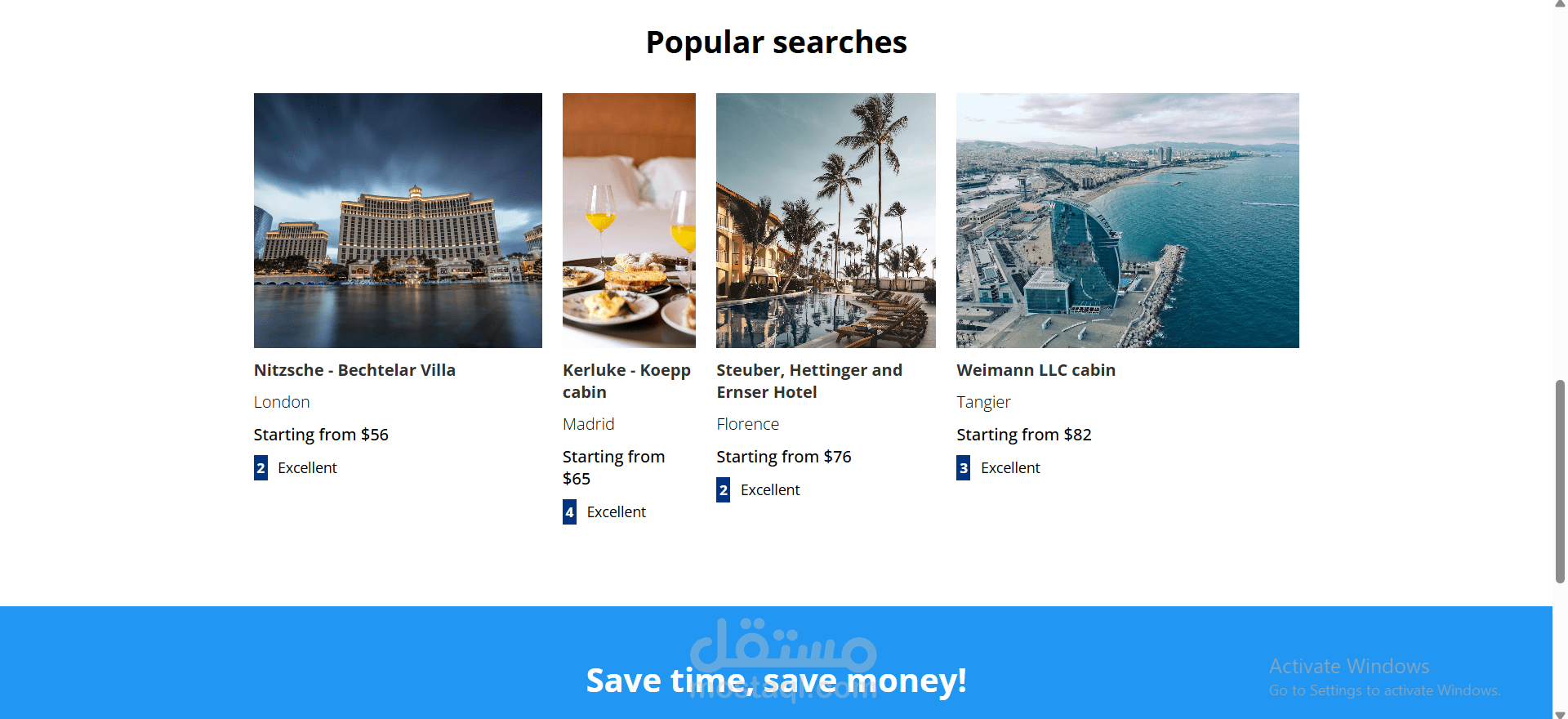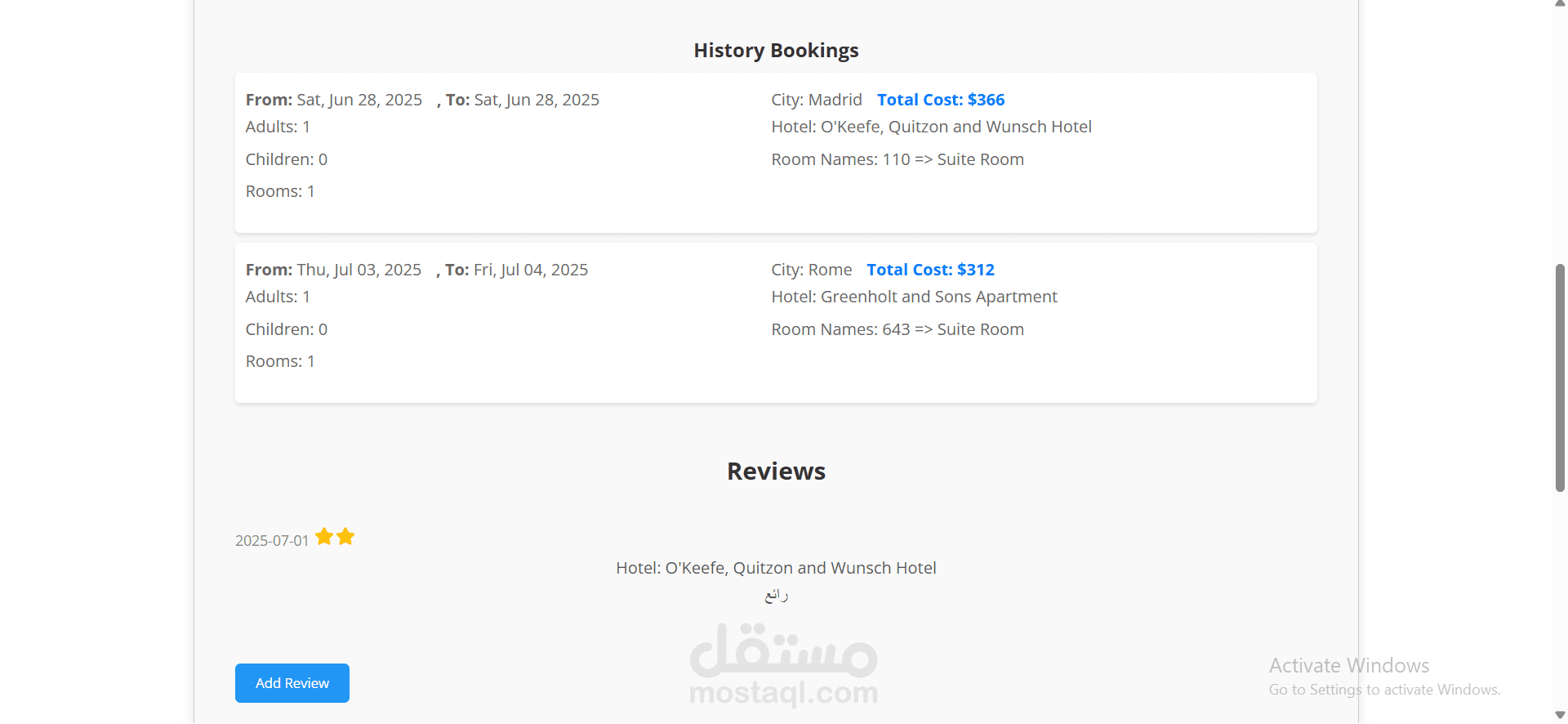 واجهة مستخدم عصرية (React.js): تصميم جذاب وتفاعلي لتصفح الفنادق، الفلترة، وإتمام الحجوزات بسهولة.