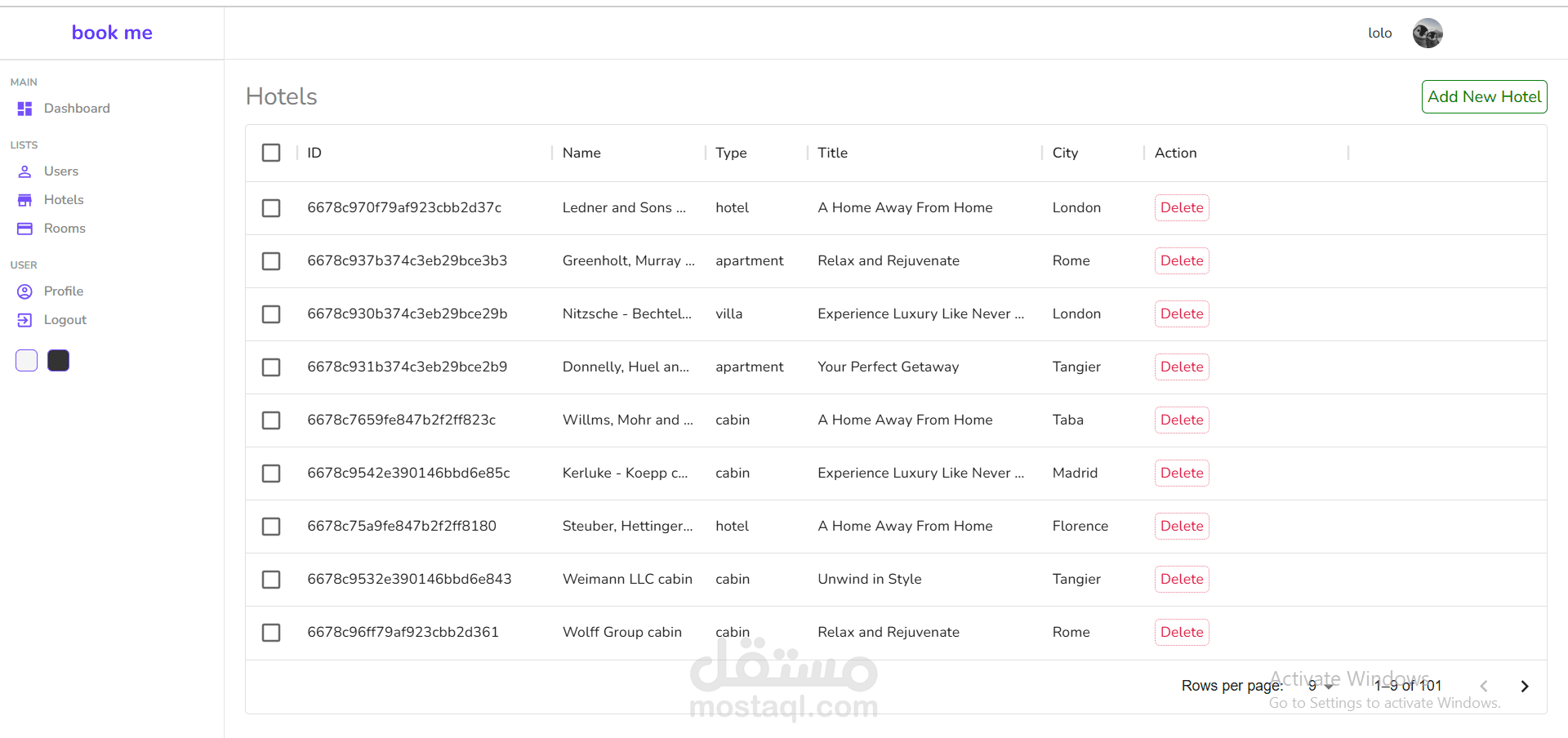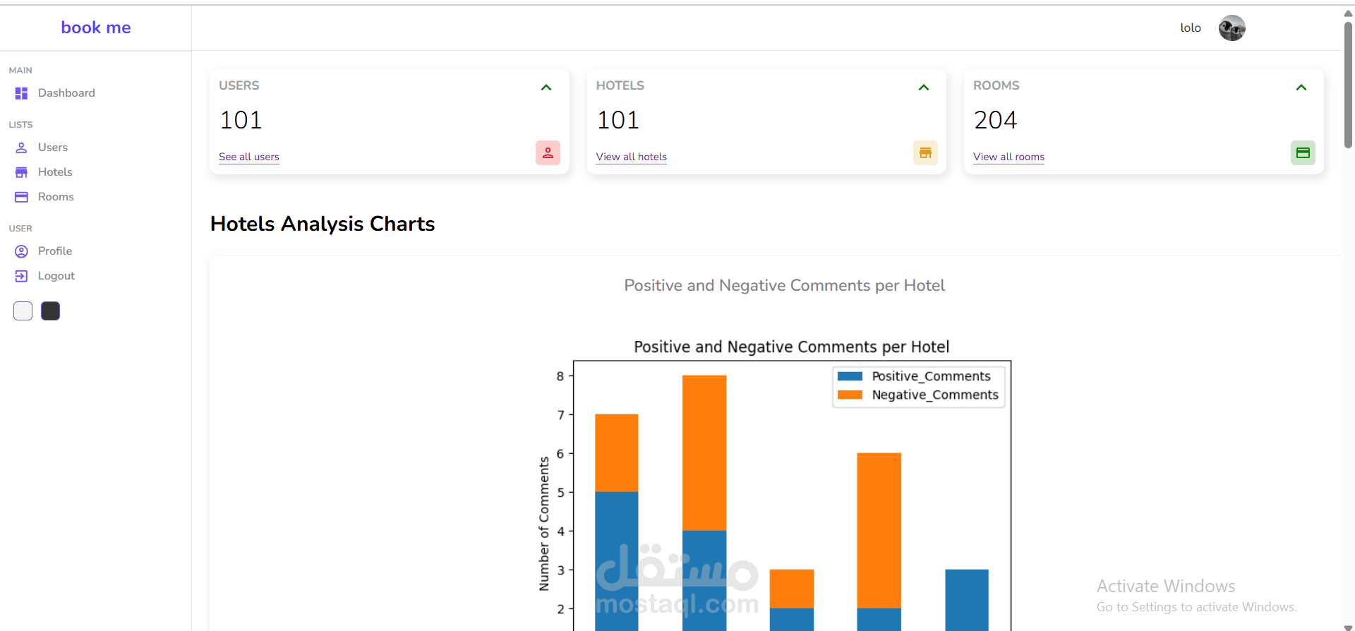 لوحة تحكم إدارية شاملة: تمكّن المسؤولين من إدارة الفنادق، الغرف، والحجوزات بسهولة.
