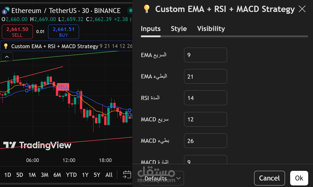 - برمجة مؤشرات مخصصة (EMA, RSI, MACD, Bollinger Bands, وغيرها)
