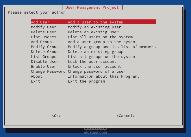This project is a command-line utility for comprehensive user and group management on Linux systems, designed to simplify common administrative tasks through an interactive, menu-driven interface