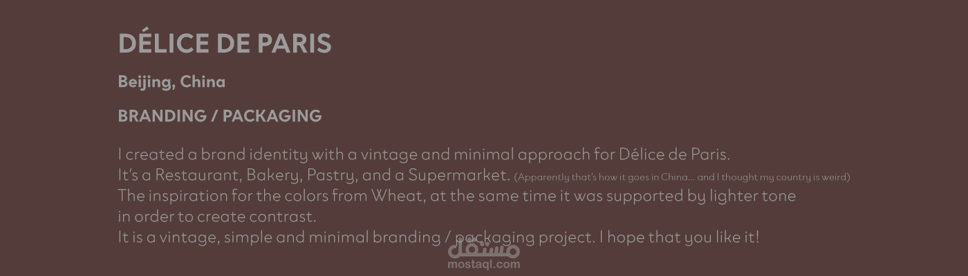 Délice de Paris Branding and Packaging. I created a brand identity with a vintage and minimal approach for Délice de Paris Co. The inspiration for the colors comes from wheat. At the same time it was supported by light tone in order to create contrast. It is a vintage, simple and minimal branding / packaging project. I hope that you like it!