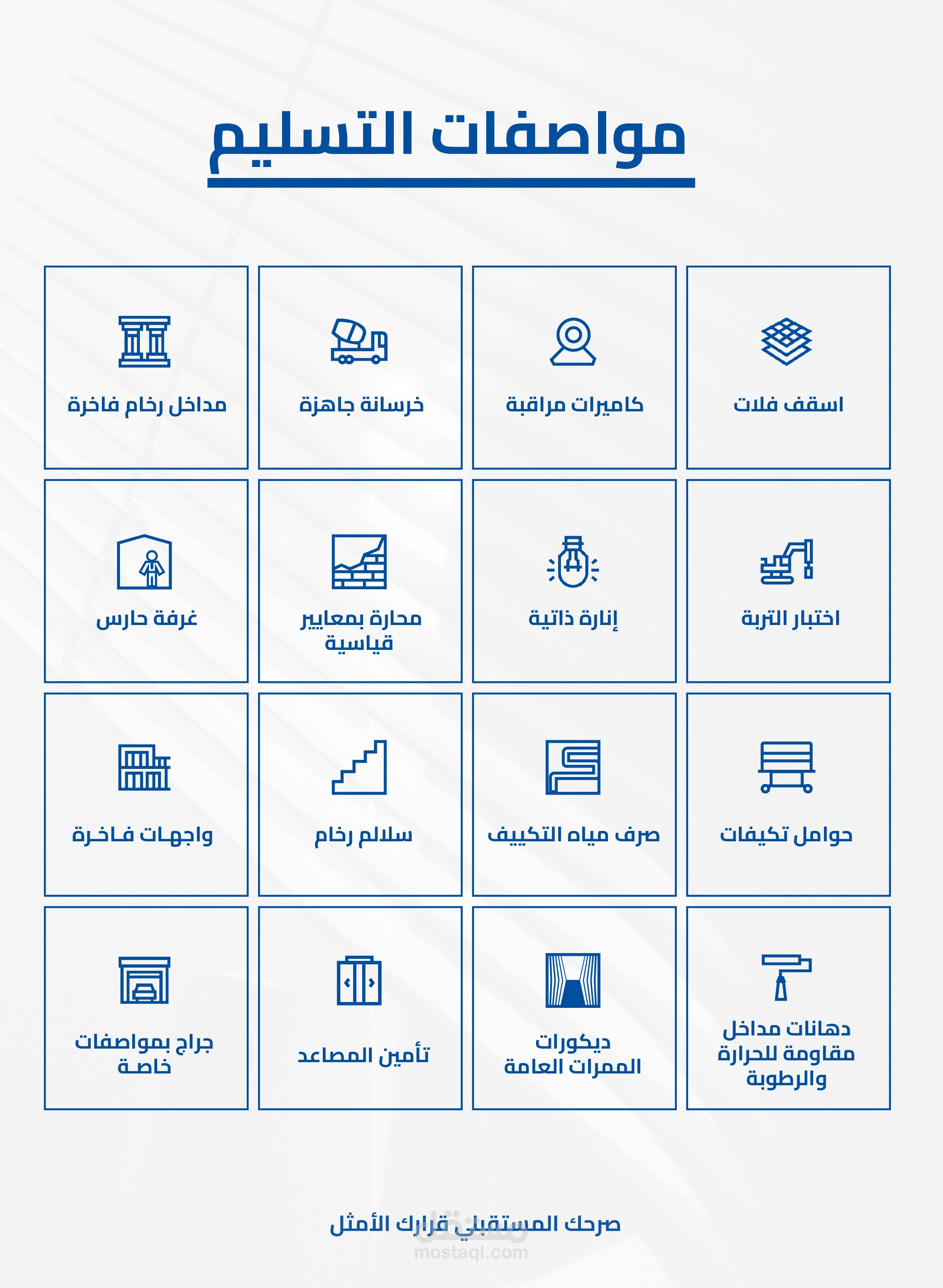 قمت بتنفيذ تصميم إنفوجرافيك احترافي يوضح مواصفات التسليم الخاصة بشركة الصرح للاستثمار العقاري.