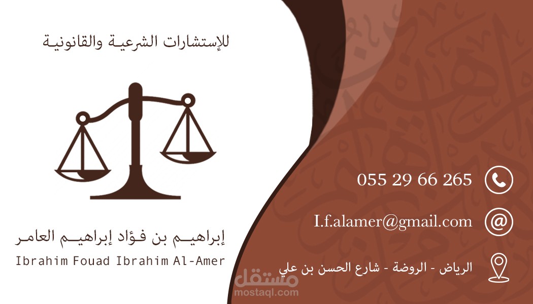 - تصميم كرت عمل لأحد المحامين في الرياض
