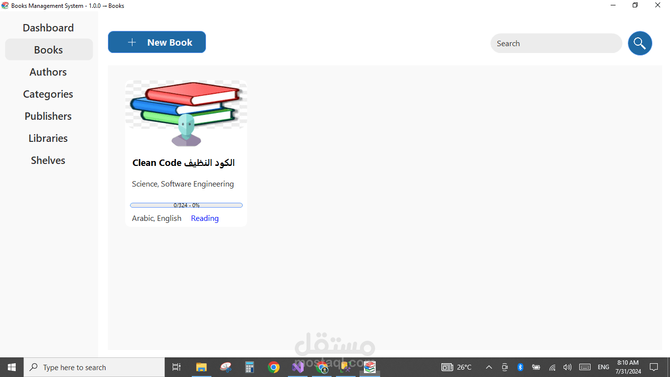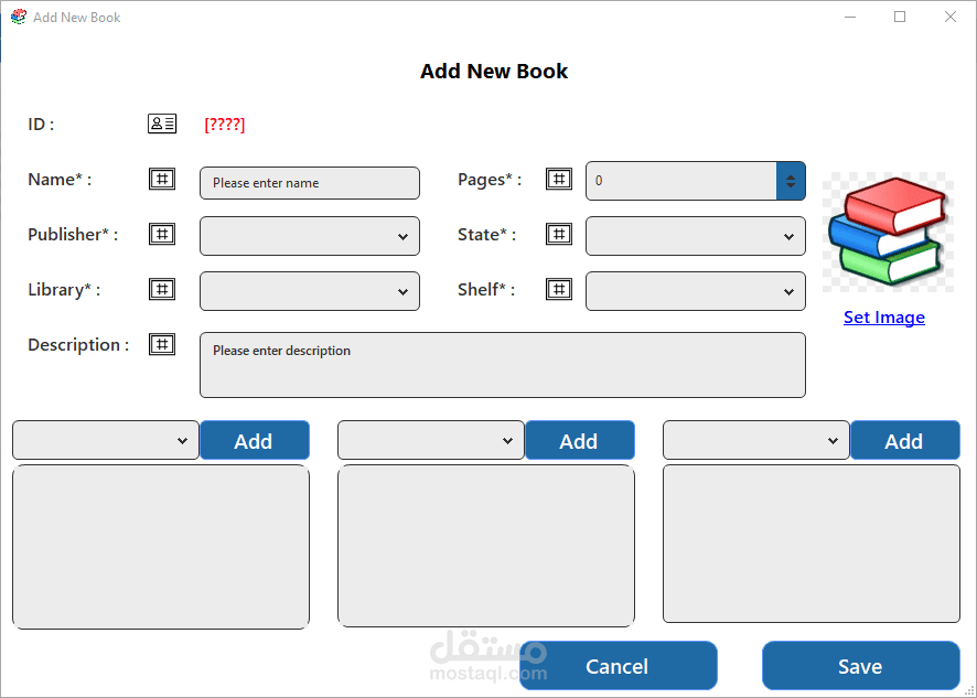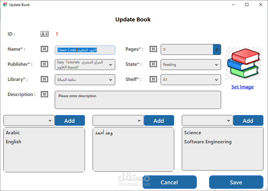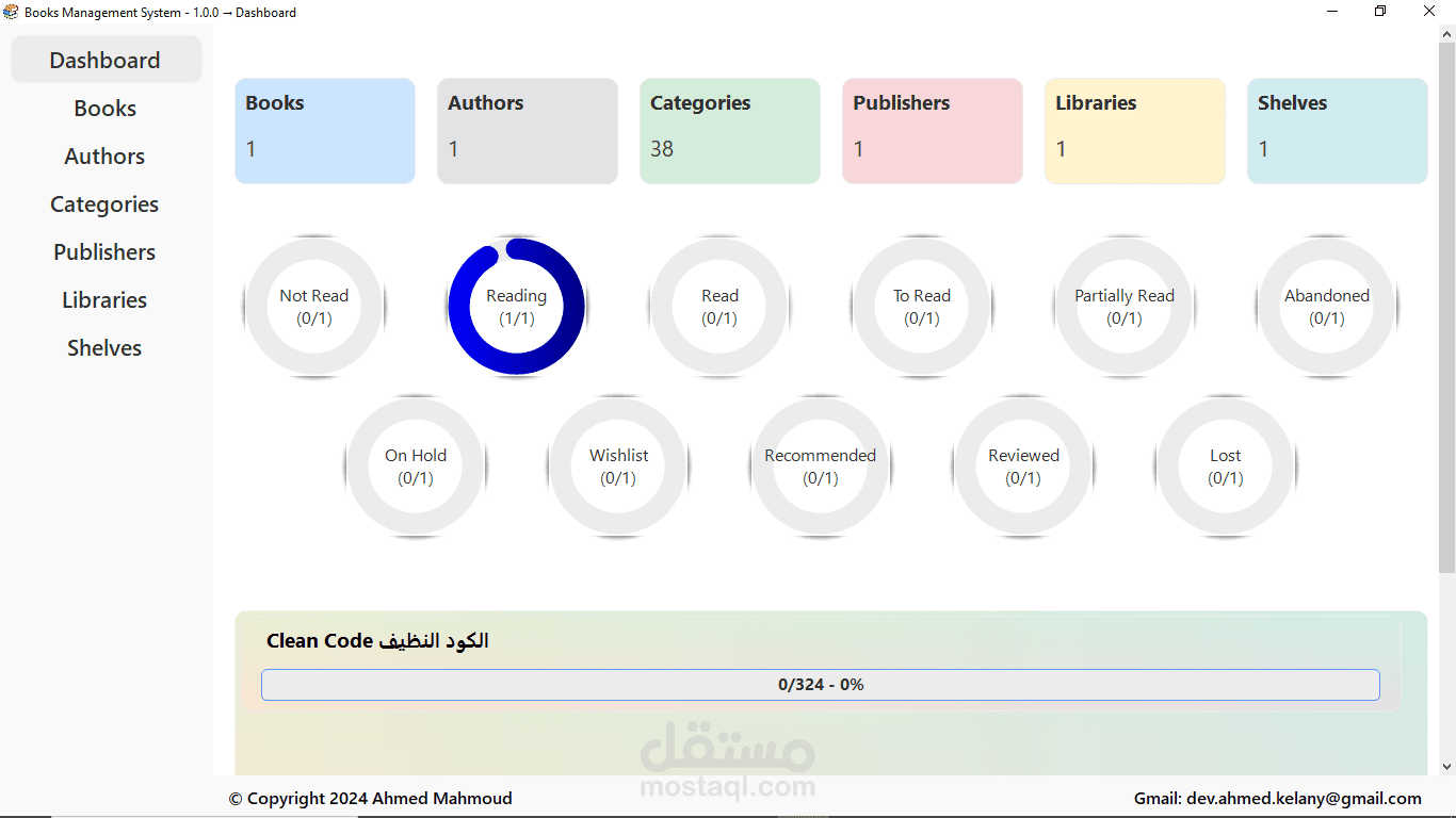 برنامج سطح مكتب بسيط وفعّال لإدارة الكتب، يتيح للمستخدمين تنظيم مكتبتهم الرقمية بسهولة. يتميز بواجهة رئيسية تفاعلية تحتوي على قائمة رئيسية تشمل خيارات إضافة كتاب جديد، تعديل بيانات كتاب موجود، حذف كتاب، وعرض قائمة الكتب. يوفر البرنامج تجربة استخدام سلسة لإدارة معلومات الكتب مثل العنوان، المؤلف، سنة النشر، والتصنيف. مثالي للمكتبات الشخصية أو المؤسسية الصغيرة.