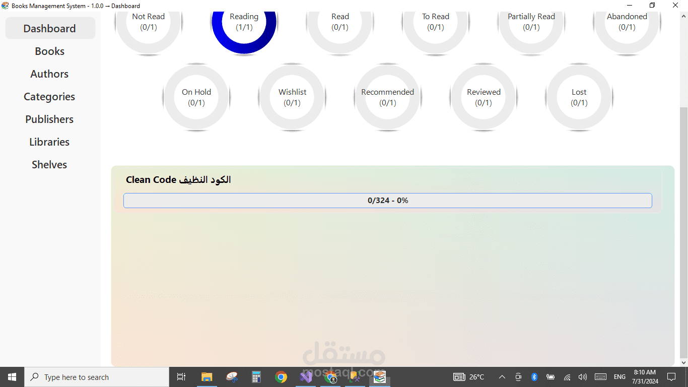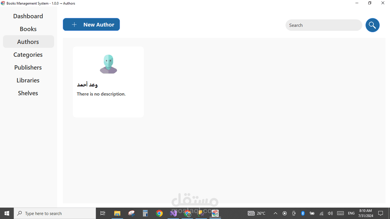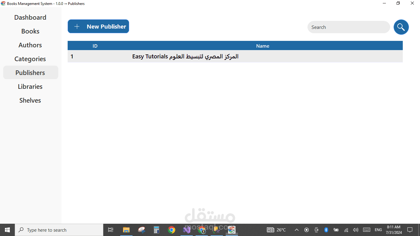 برنامج سطح مكتب بسيط وفعّال لإدارة الكتب، يتيح للمستخدمين تنظيم مكتبتهم الرقمية بسهولة. يتميز بواجهة رئيسية تفاعلية تحتوي على قائمة رئيسية تشمل خيارات إضافة كتاب جديد، تعديل بيانات كتاب موجود، حذف كتاب، وعرض قائمة الكتب. يوفر البرنامج تجربة استخدام سلسة لإدارة معلومات الكتب مثل العنوان، المؤلف، سنة النشر، والتصنيف. مثالي للمكتبات الشخصية أو المؤسسية الصغيرة.