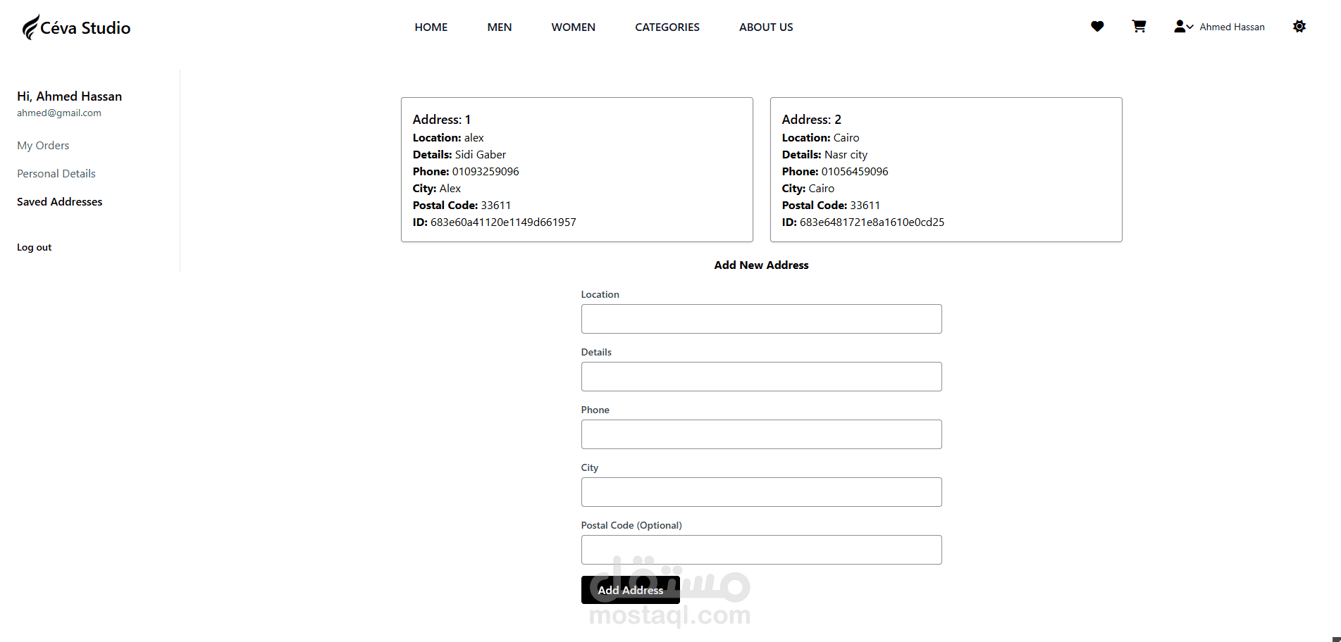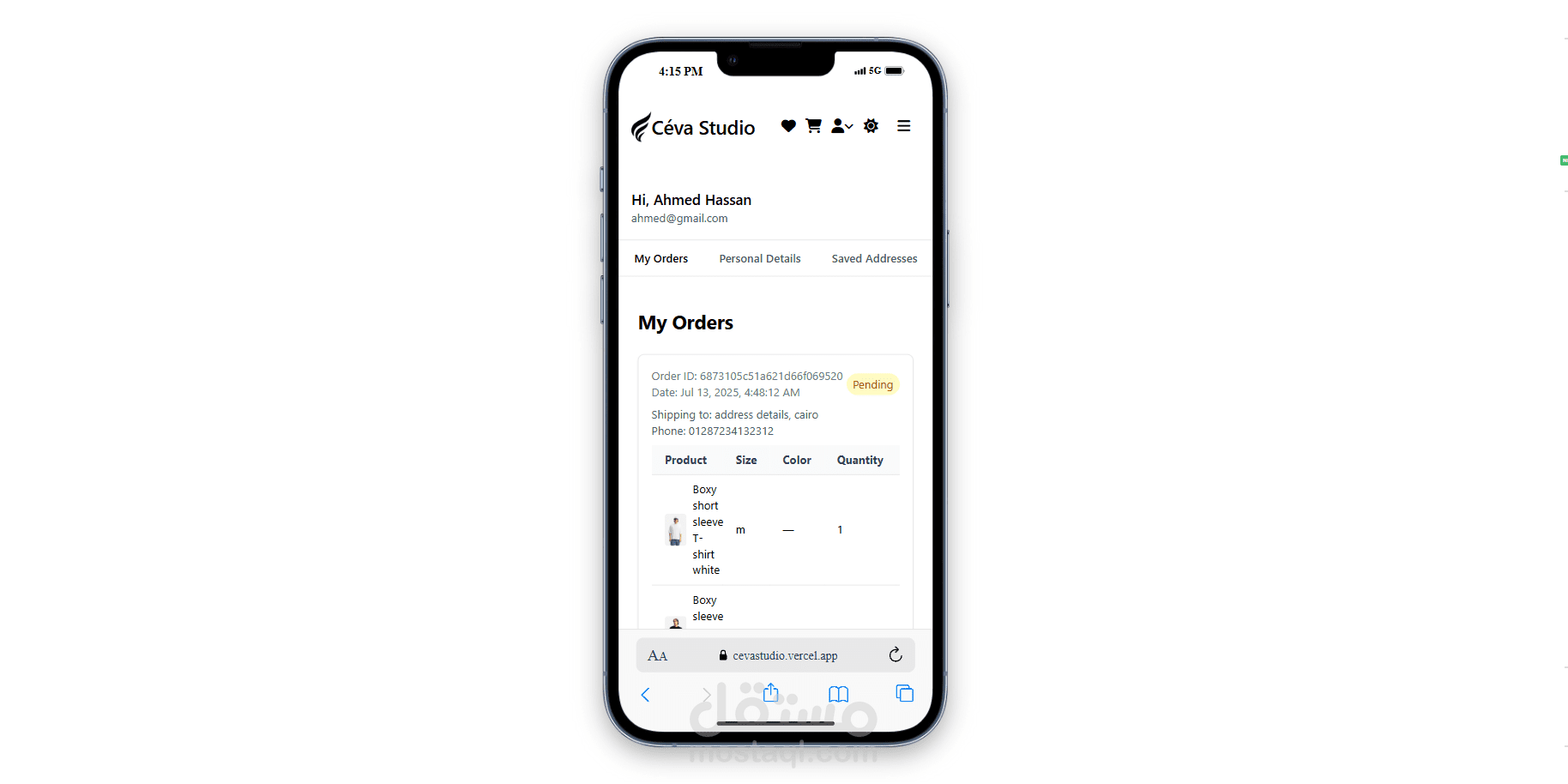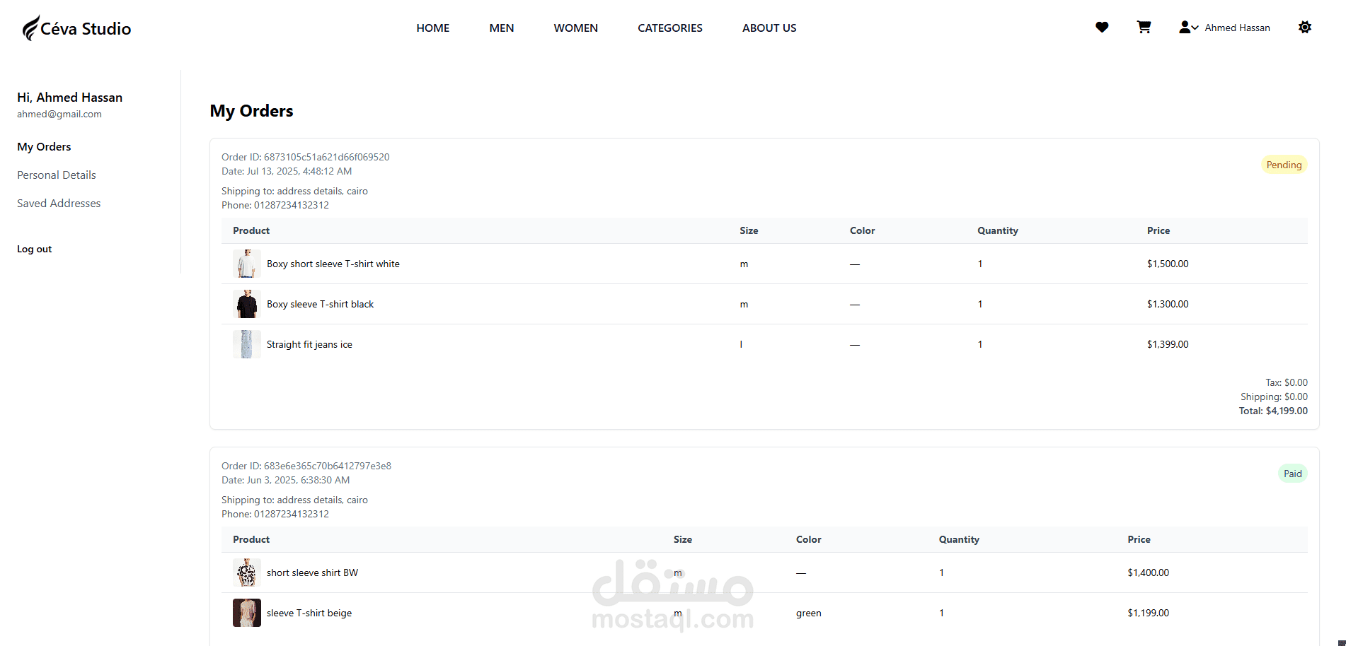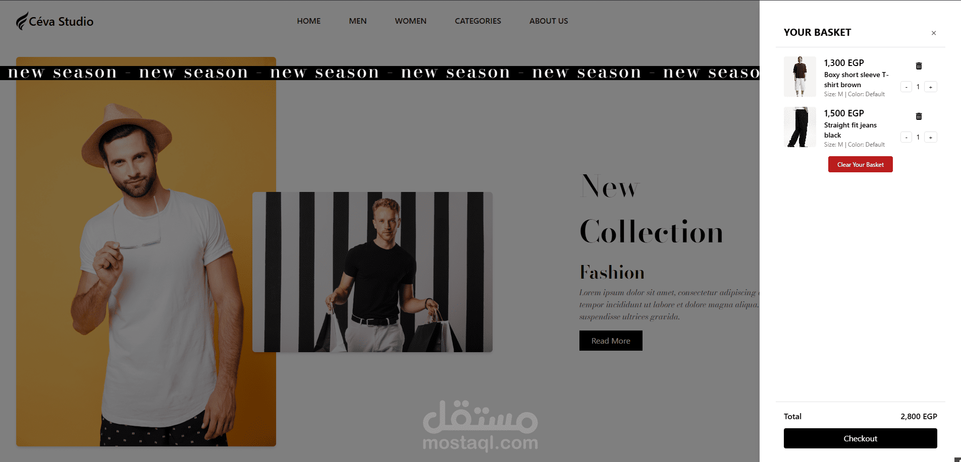 متجر إلكتروني متكامل تم تطويره خصيصًا لشركة Céva Studio المتخصصة في الملابس الجاهزة. يوفّر تجربة تسوّق سهلة وسلسة للمستخدمين، مع تصميم عصري يعكس هوية العلامة التجارية ويعمل بكفاءة عالية على مختلف الأجهزة.