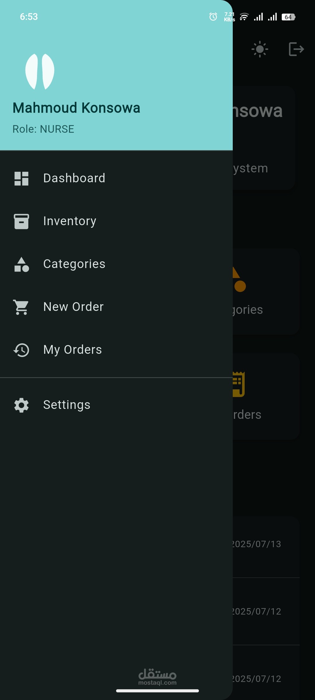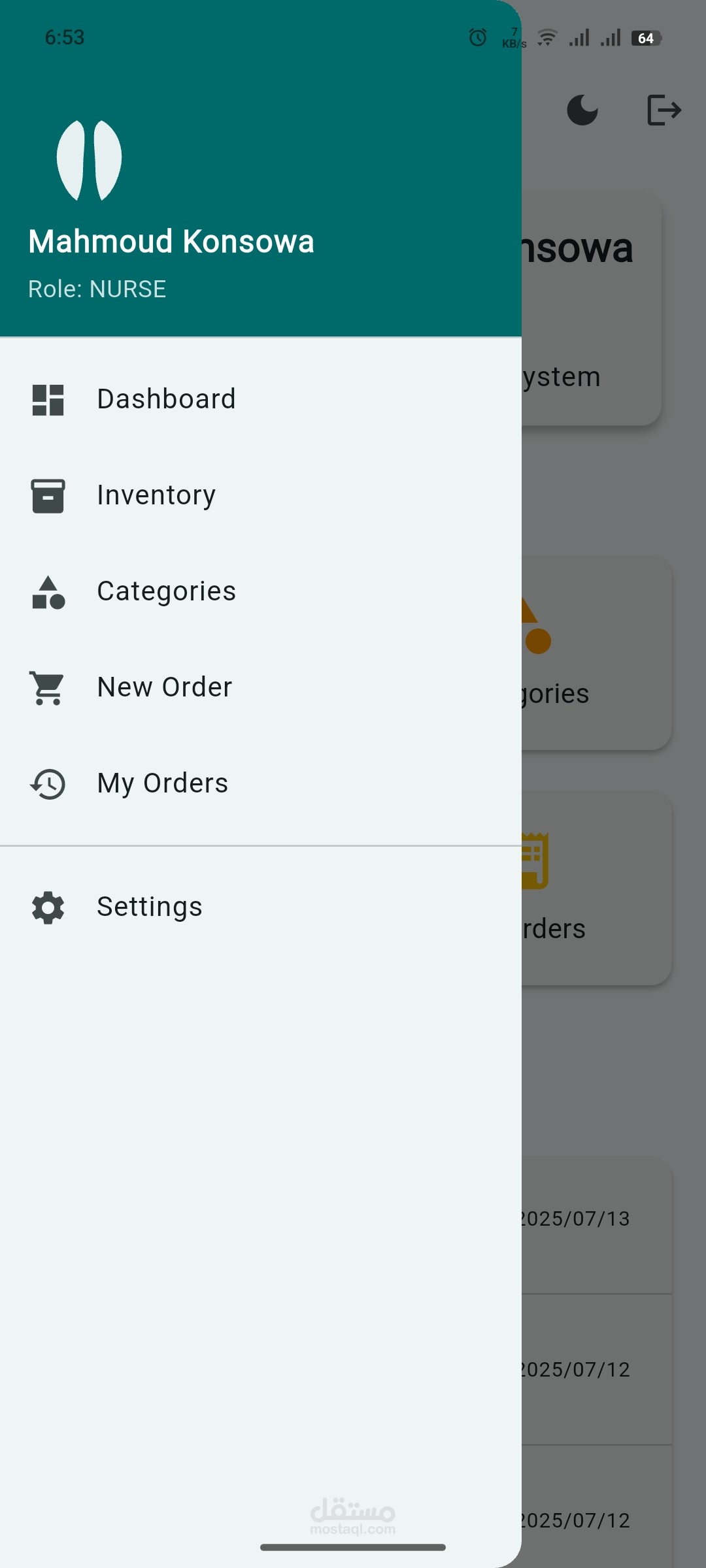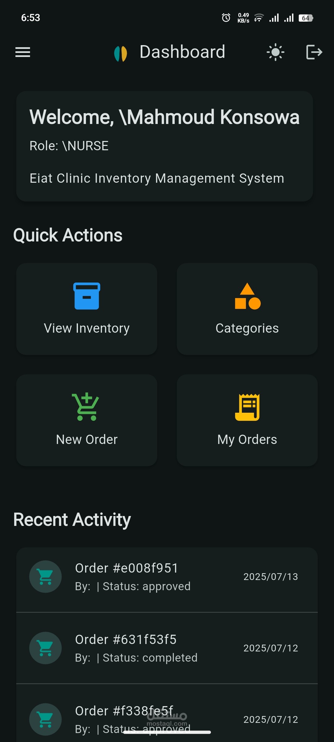 التمريض (Nurse): يطلب المنتجات ويتابع المخزون.