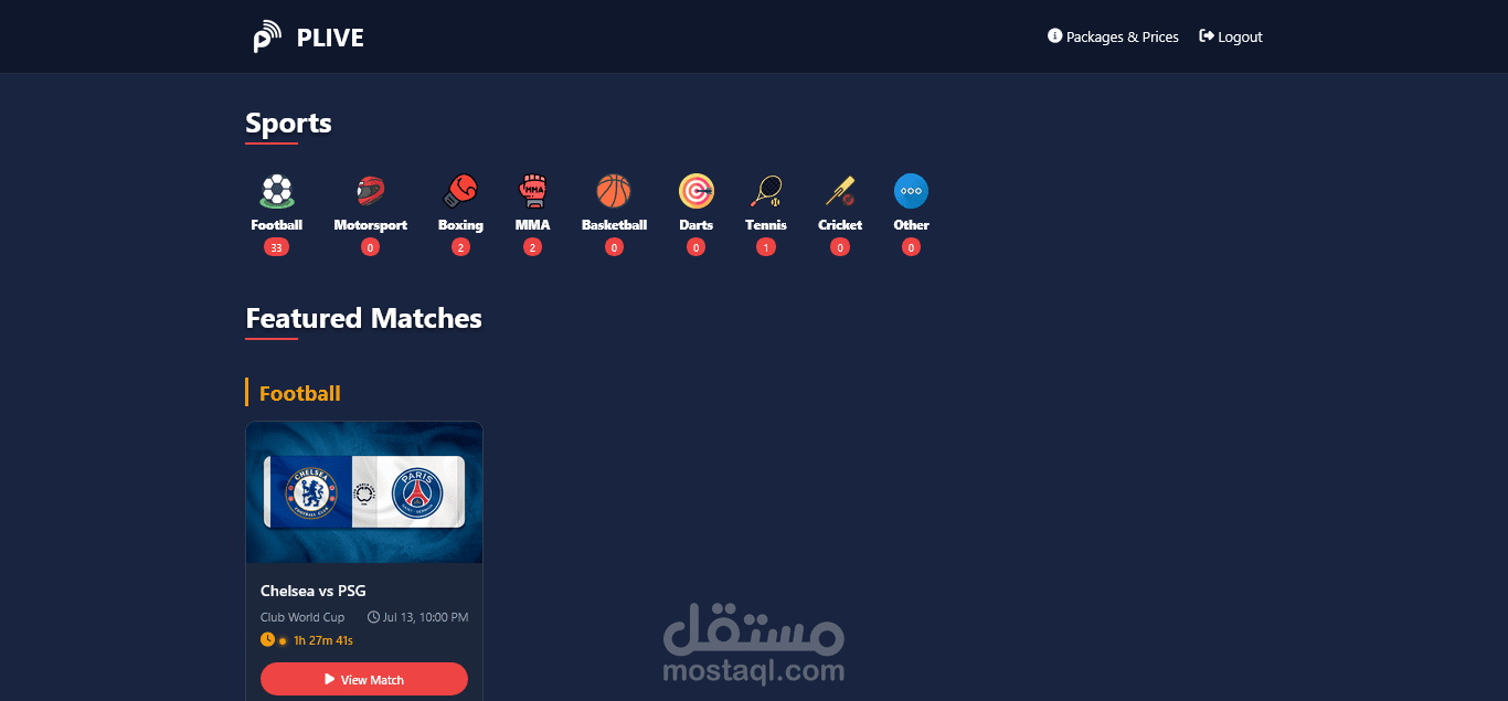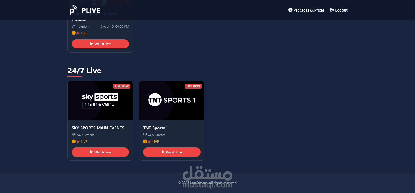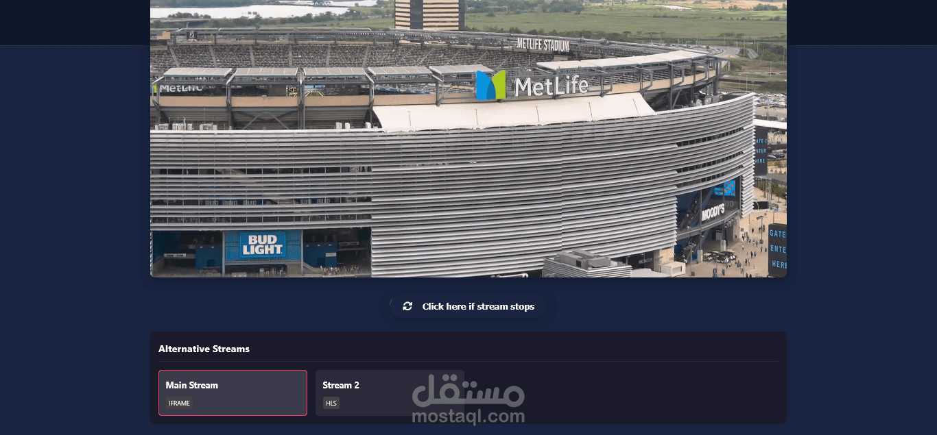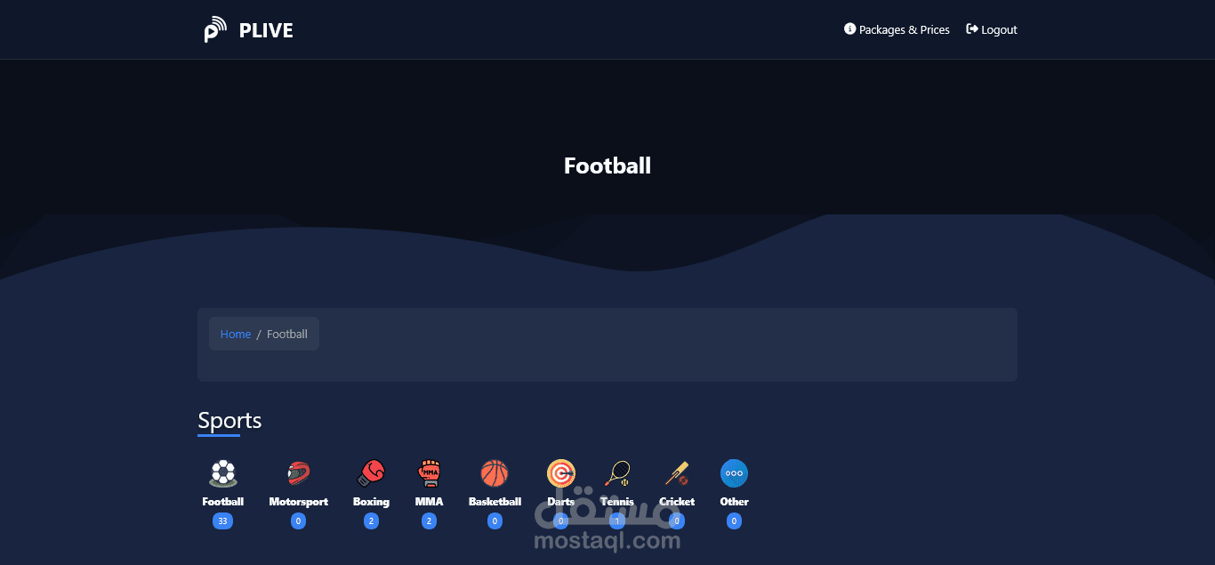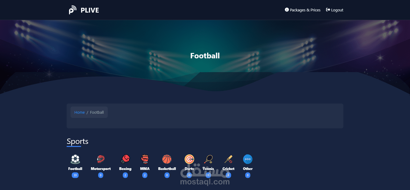 منصة بث مباشر رياضية تعرض جميع الأحداث الرياضية عبر مشغل فيديو احترافي يدعم تعدد مصادر البث. التحكم الكامل يتم من خلال لوحة تحكم للأدمن تشمل: