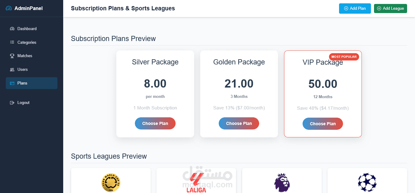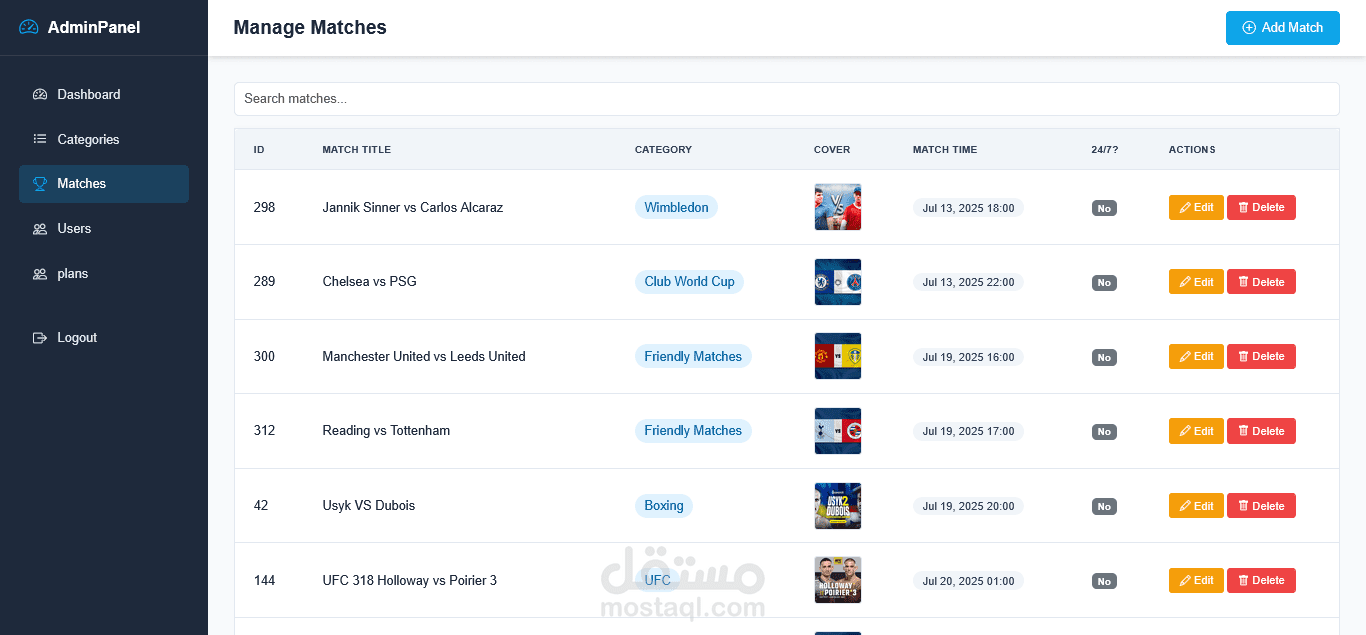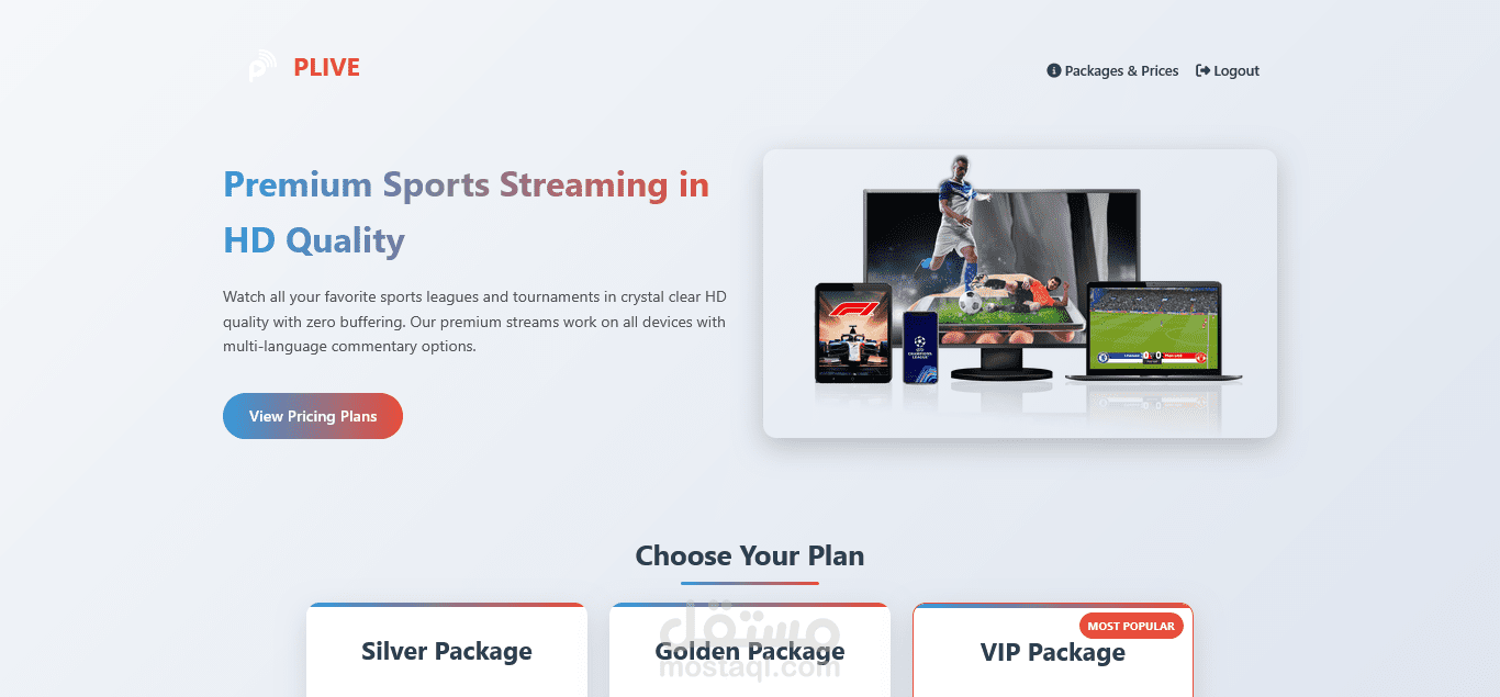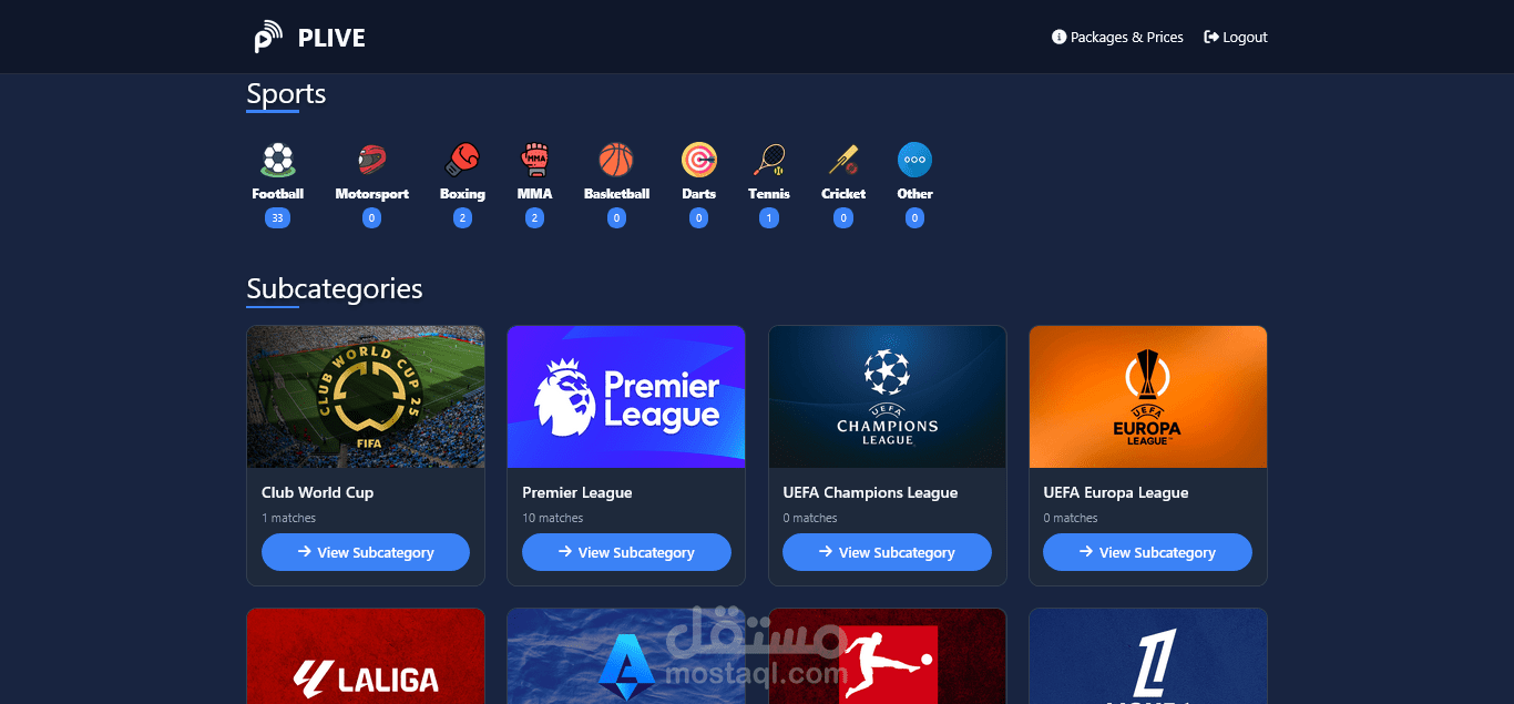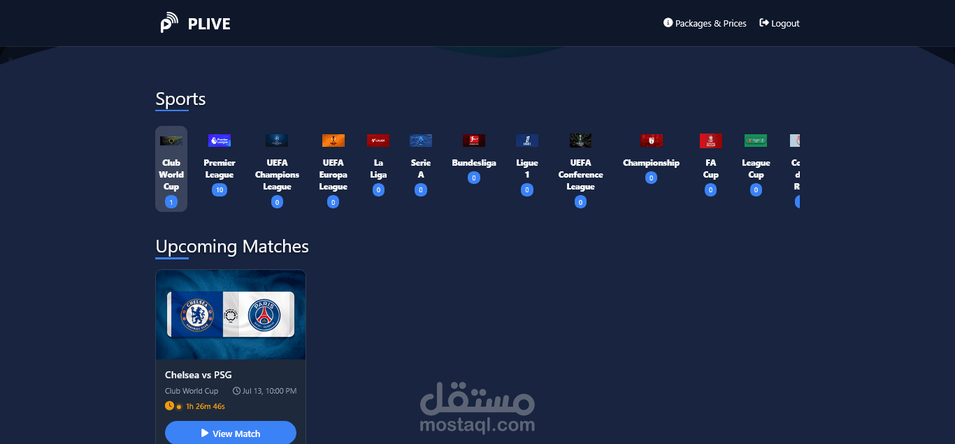 منصة بث مباشر رياضية تعرض جميع الأحداث الرياضية عبر مشغل فيديو احترافي يدعم تعدد مصادر البث. التحكم الكامل يتم من خلال لوحة تحكم للأدمن تشمل: