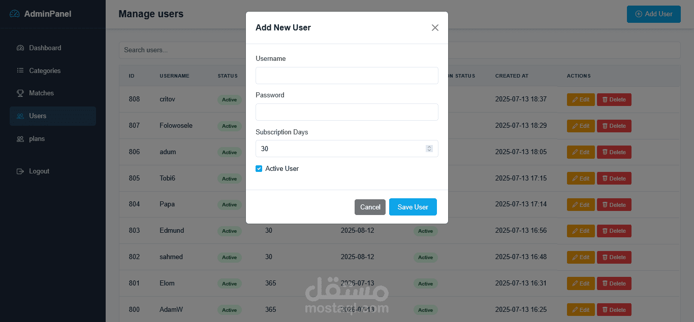 إنشاء مستخدمين مع تحديد فترة صلاحية الاشتراك.