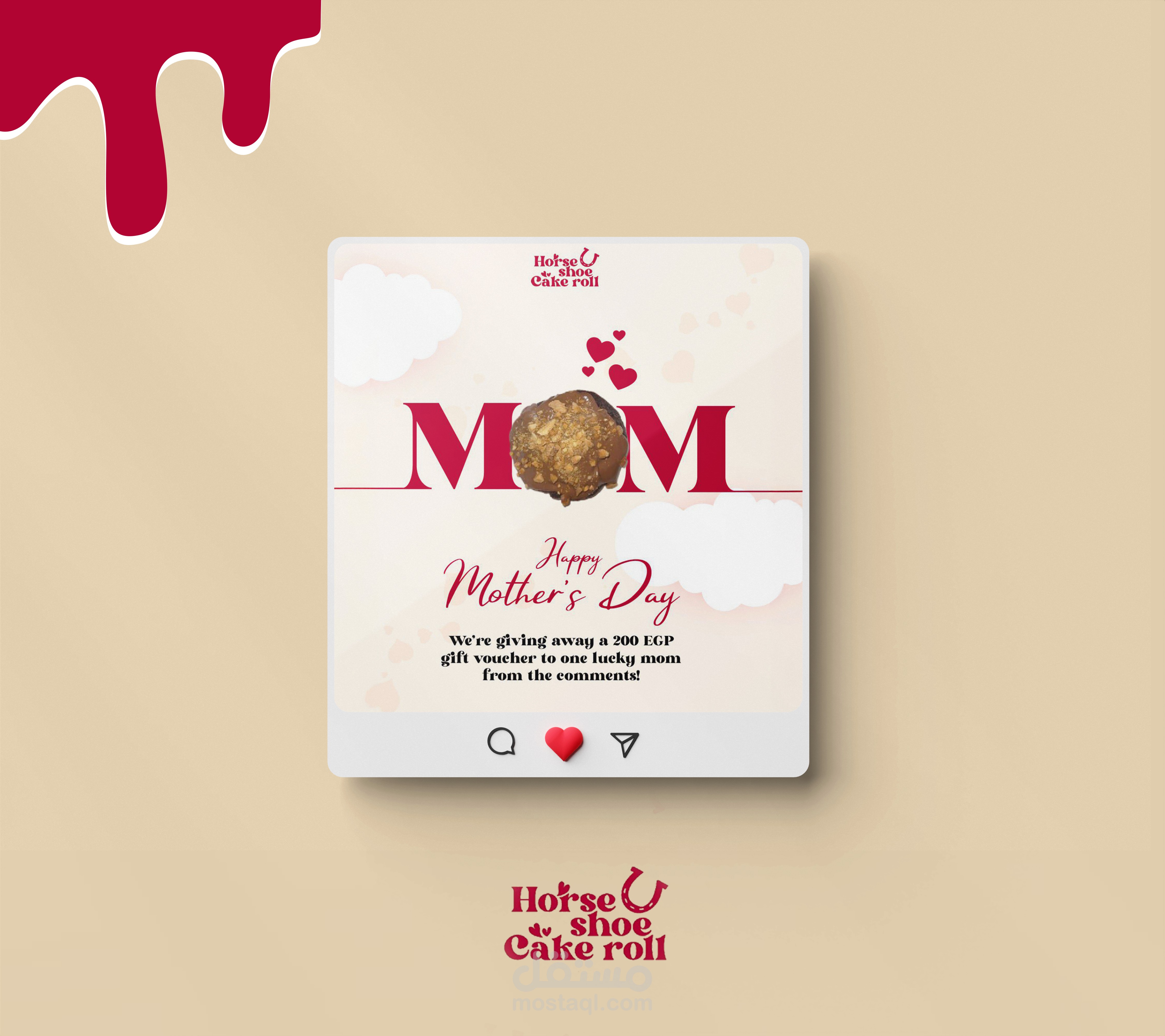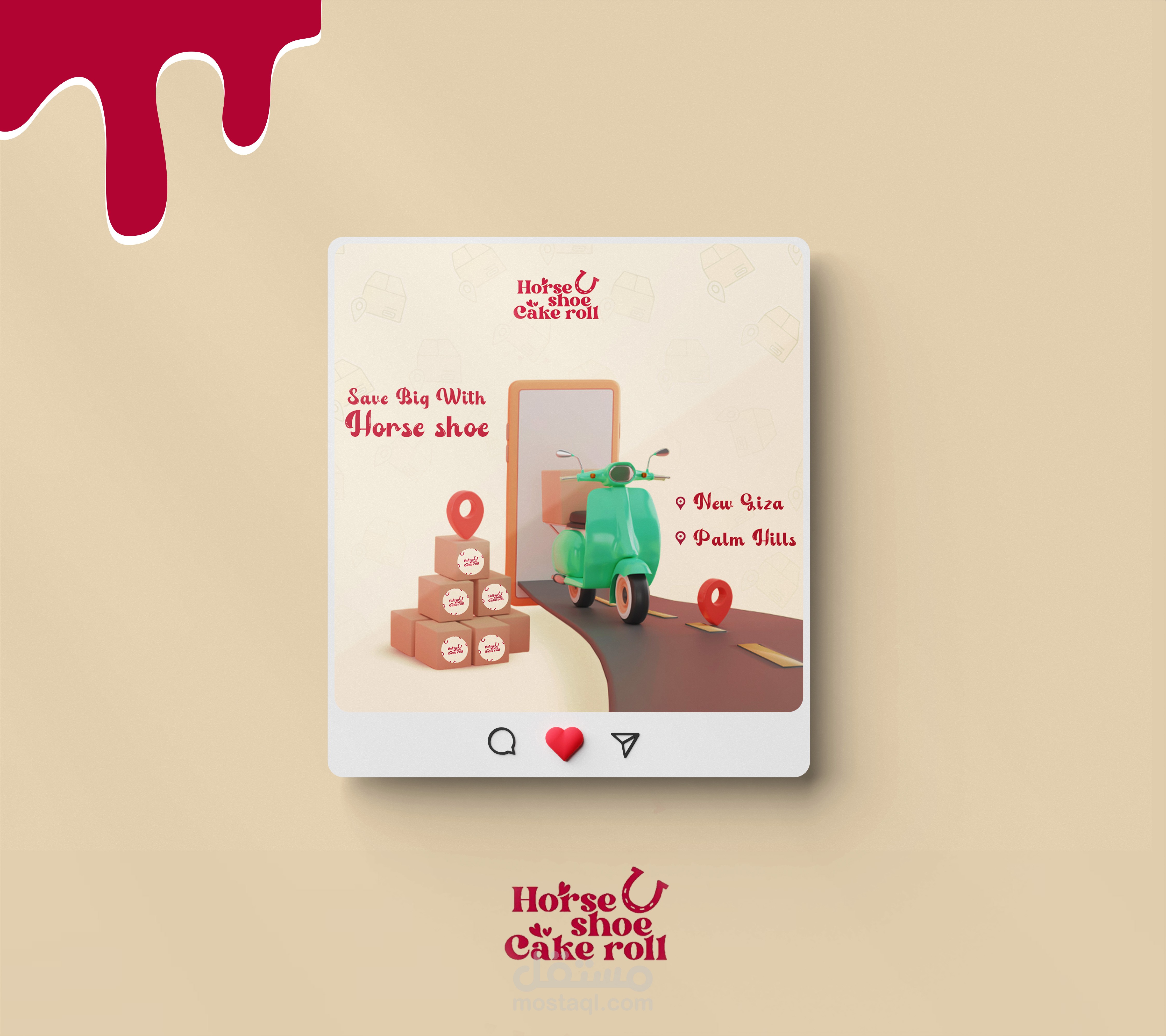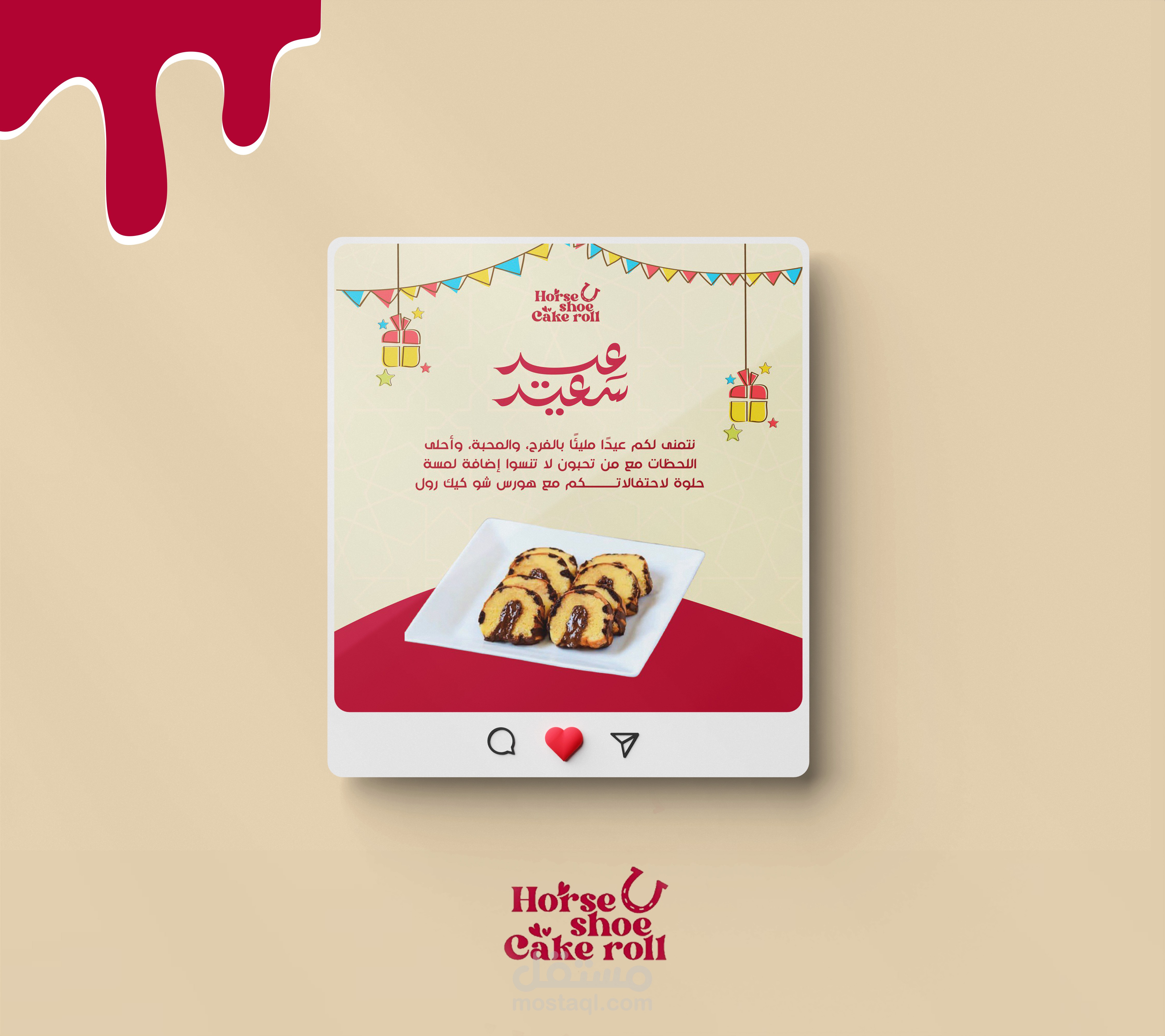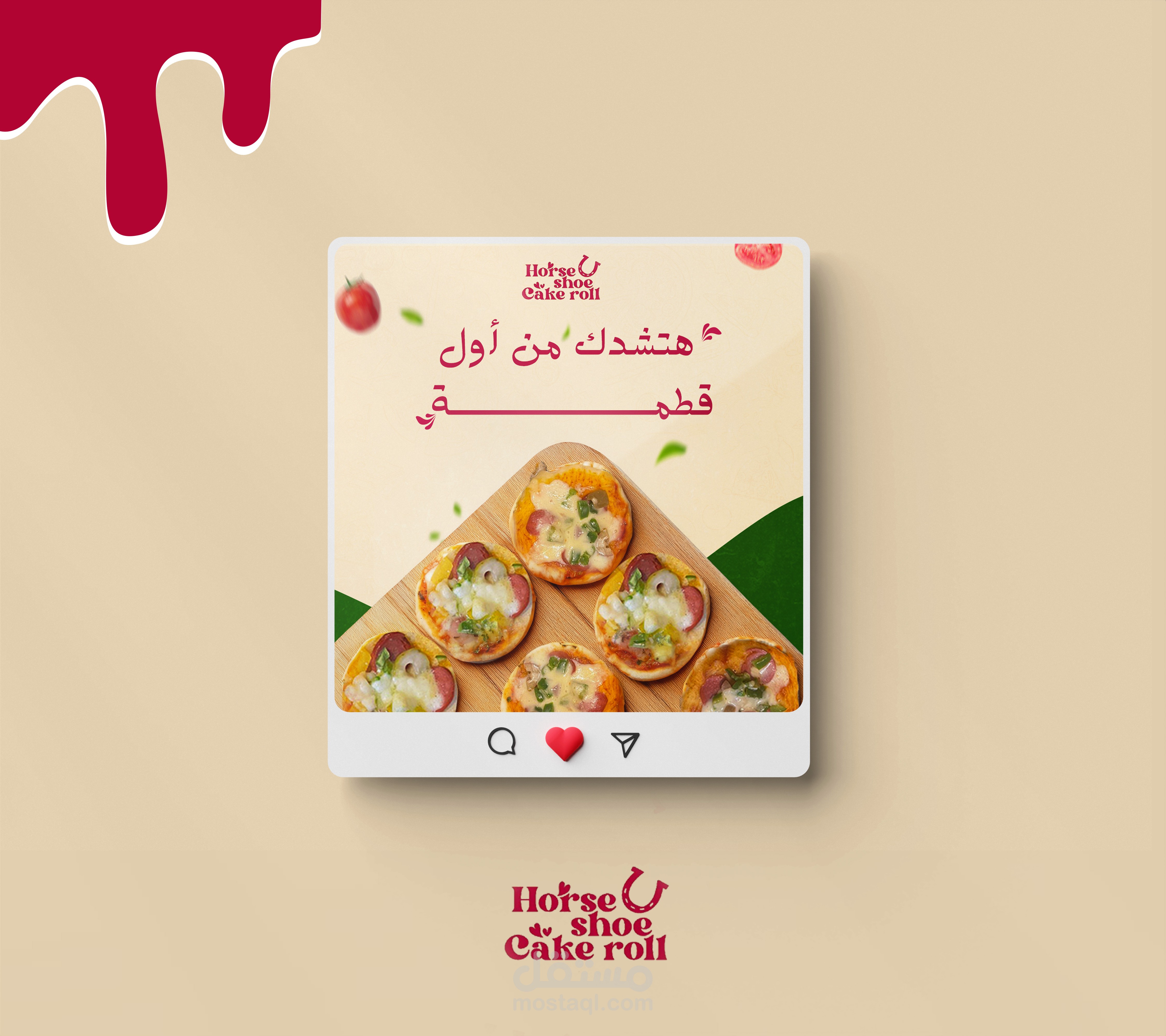 Horseshoe Cake Roll is a creative dessert brand specializing in handcrafted cake rolls made with natural, homemade ingredients. The brand stands out for its attention to detail, soft color palette, and refined yet subtle elegance. Each piece can be customized to reflect the customer’s taste or special occasion. Through its visual identity, the brand strikes a perfect balance between traditional sweets and modern sophistication.