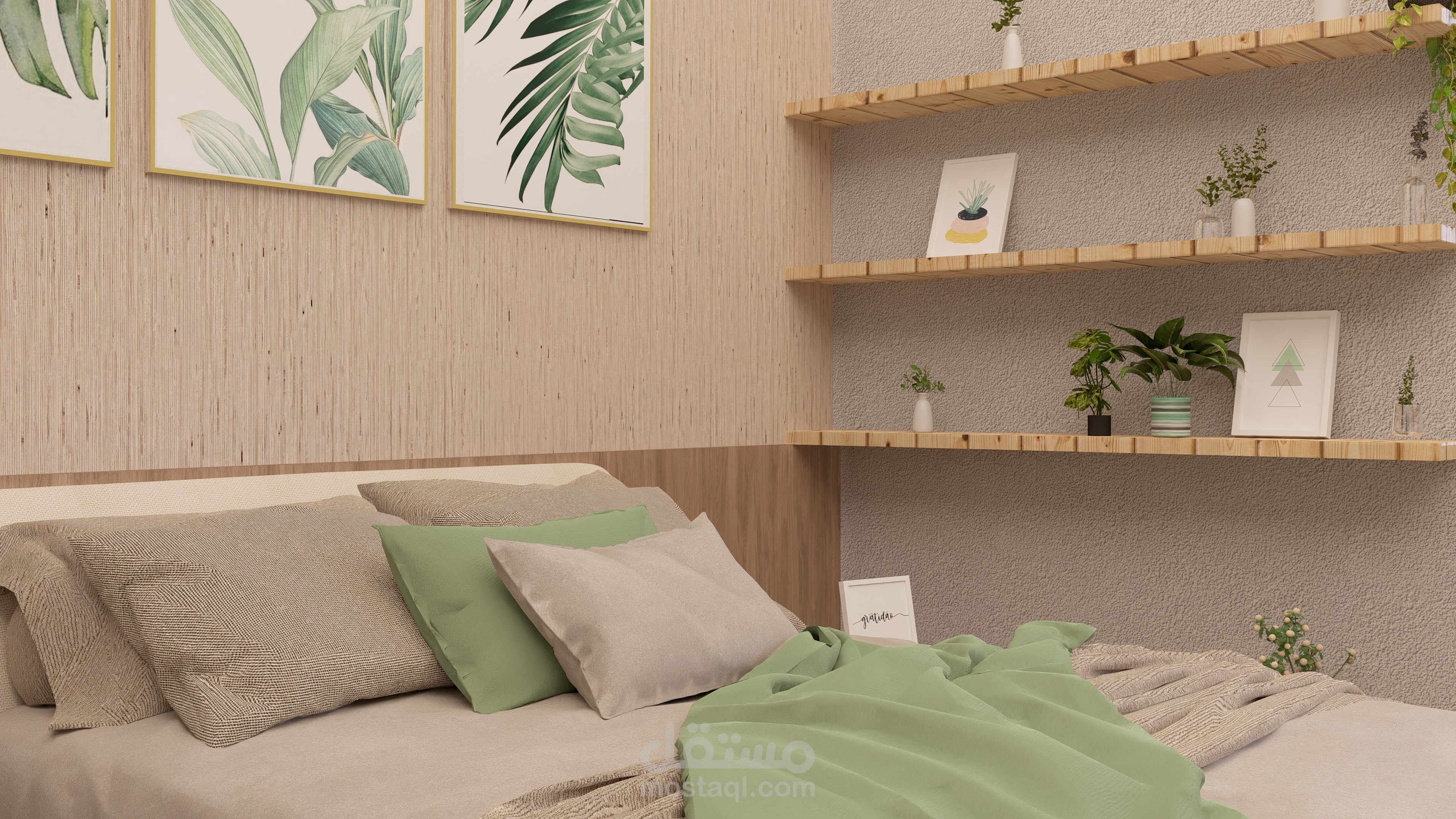 غرفة نوم على الطراز الاسكندنافي بألوان مستوحاة من الطبيعة