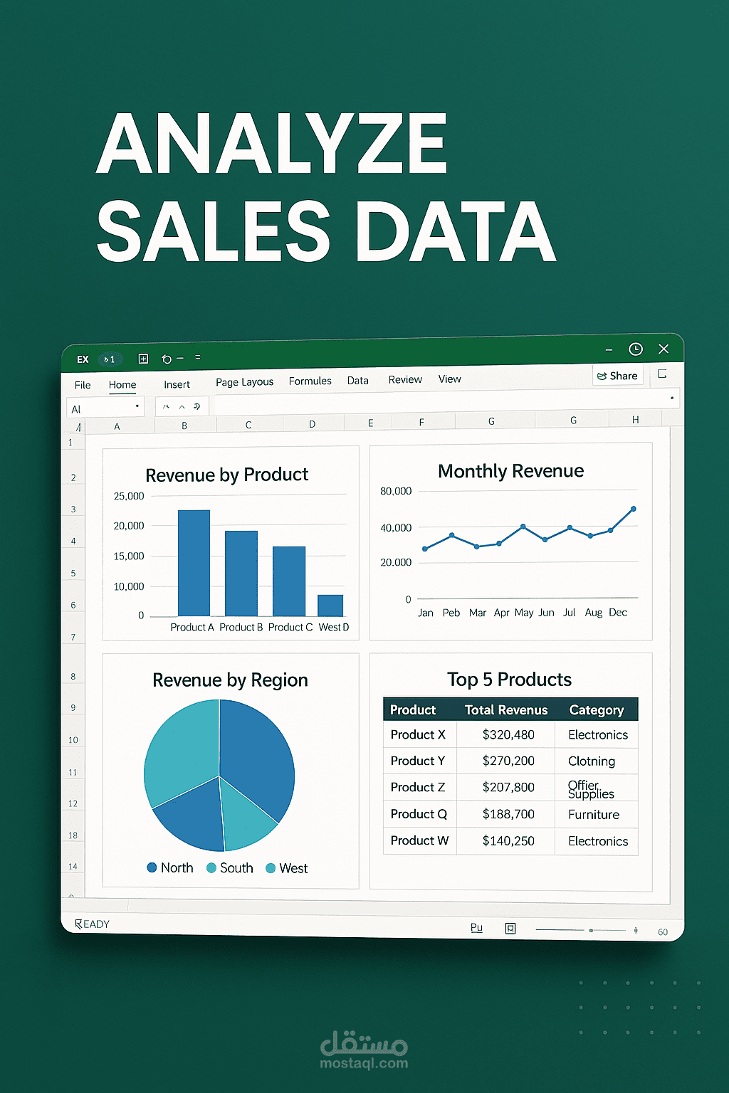 I performed a complete analysis of a sales dataset using Excel, with the following key steps and insights: