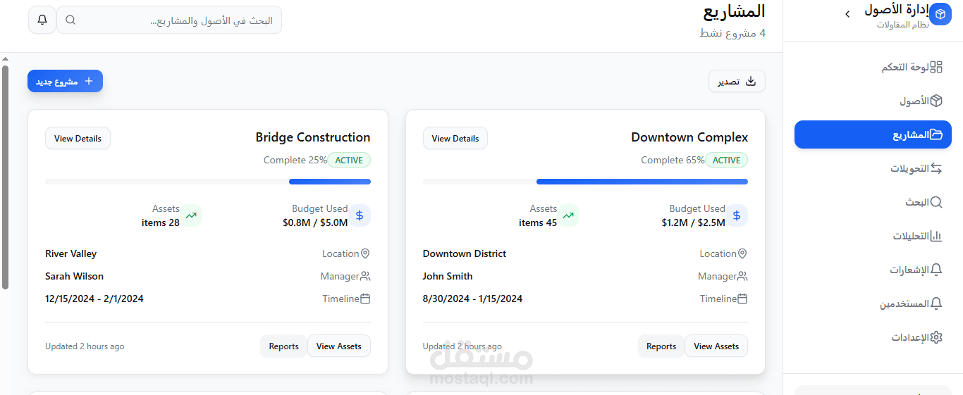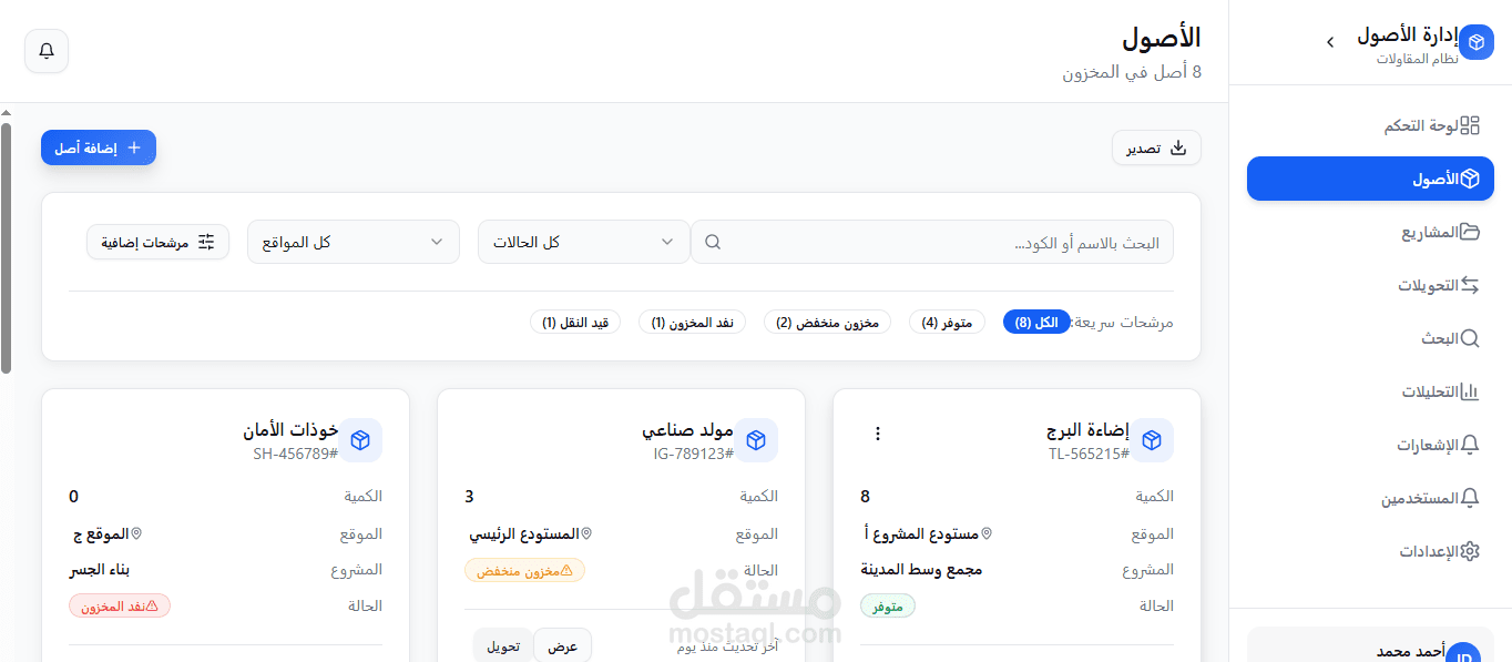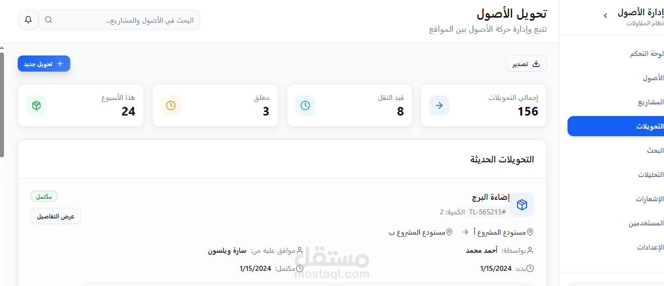crm للتبع أصول الشركات وتنقلها بين مشاريع تمشل الاتى