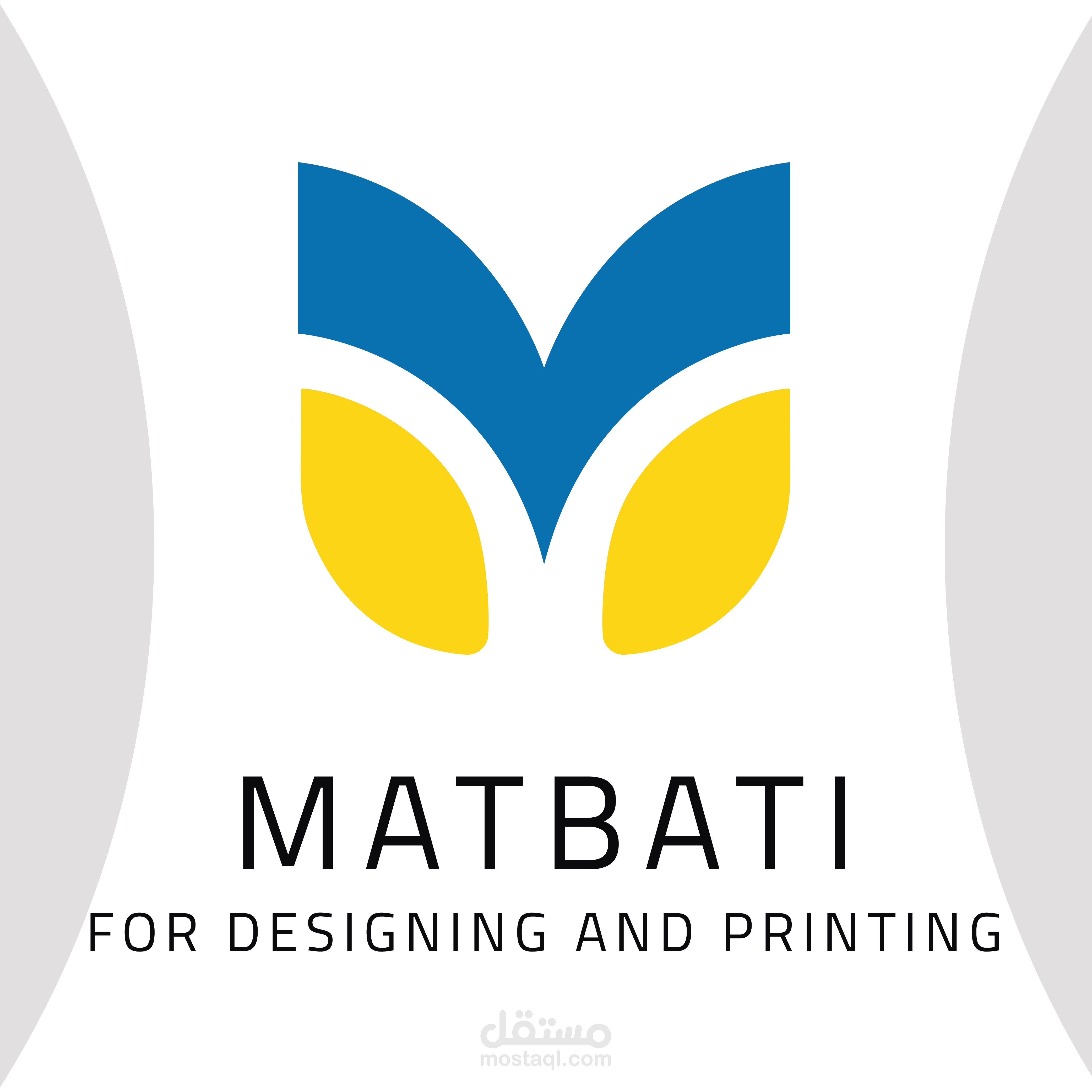 الشعار الخاص بـ "Matbati for Designing and Printing" يتميز بتصميم بسيط وأنيق يعكس هوية العلامة التجارية. يتكون الشعار من رمز مركزي يشبه حرف "M" مصمم بأسلوب فني، حيث يجمع بين اللون الأزرق الداكن في الجزء العلوي واللون الأصفر في الجزء السفلي، مما يرمز إلى الإبداع والطاقة في مجال التصميم والطباعة. الخطوط الناعمة والأشكال الدائرية تعطي إحساسًا بالاحترافية والتوازن. اسم "Matbati" مكتوب بخط واضح وجريء باللون الأسود، مع عبارة "For Designing and Printing" أسفله بخط أصغر، مما يوضح مجال عمل الشركة. الخلفية البيضاء مع الدوائر الرمادية تضيف لمسة عصرية وتساعد على إبراز العناصر الأساسية للشعار.