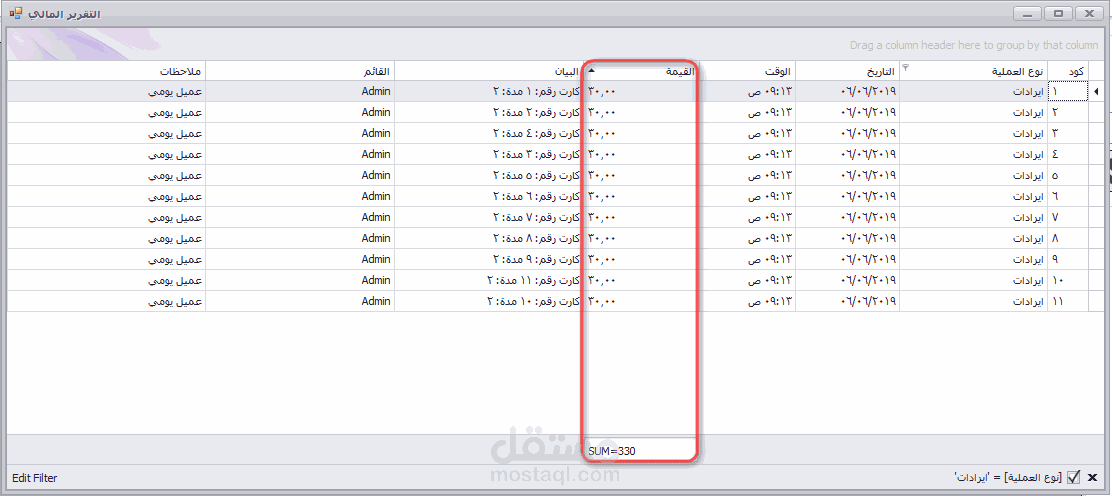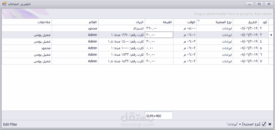 5) إدارة المعاملات المالية
