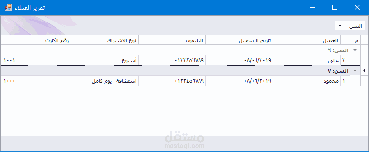 4) إدارة العملاء وتسجيل بياناتهم وتصنيف الأطفال حسب السن