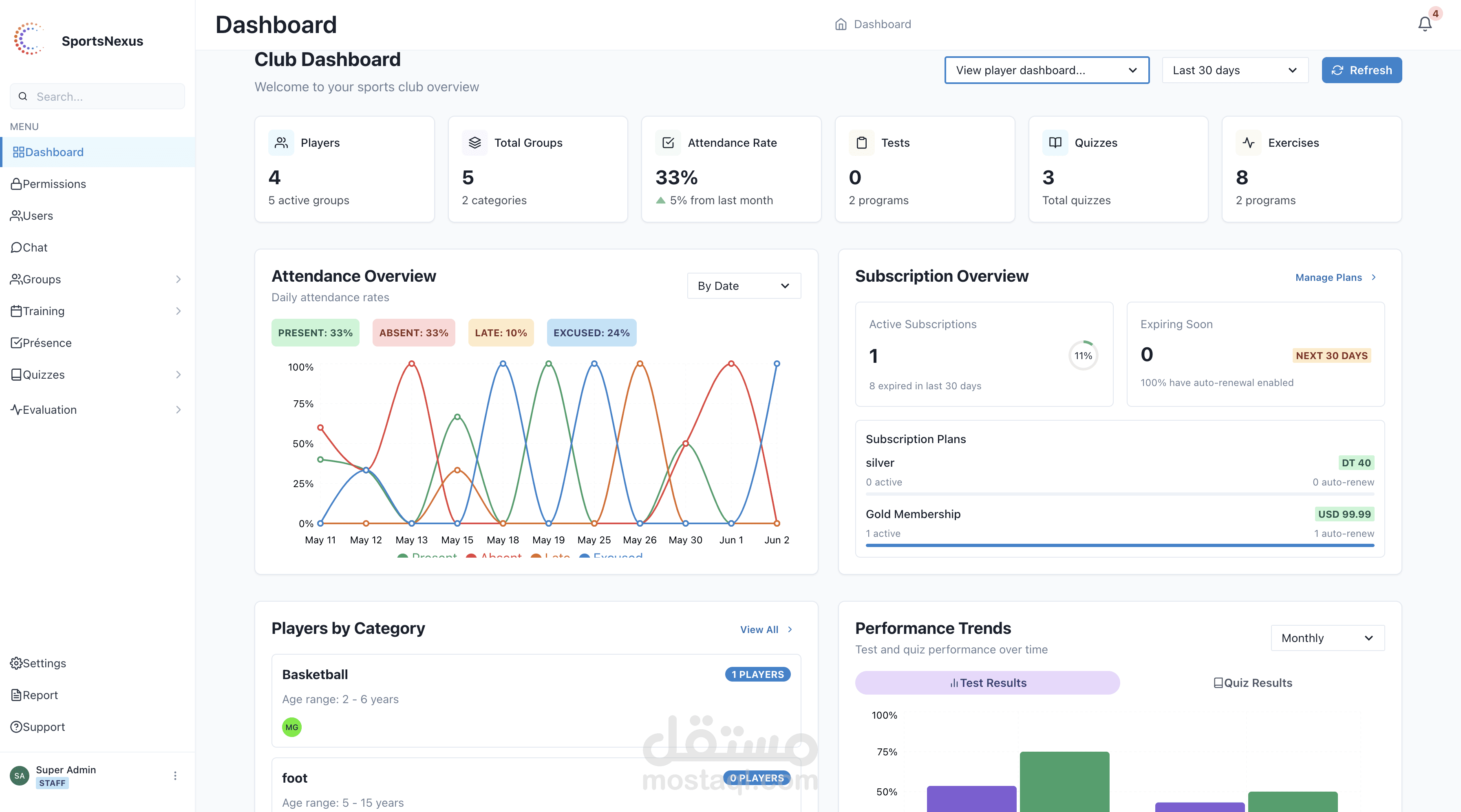 Developed comprehensive SaaS solution for sport club management with JWT authentication and role-based permissions