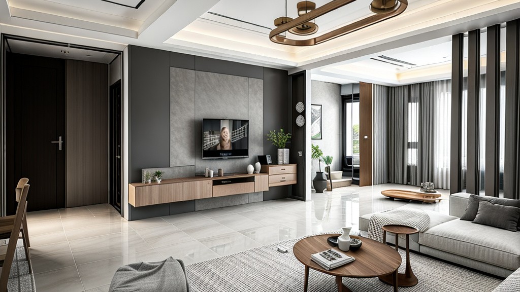 معالجة بصرية دقيقة لحائط التلفزيون والإضاءة المخفية