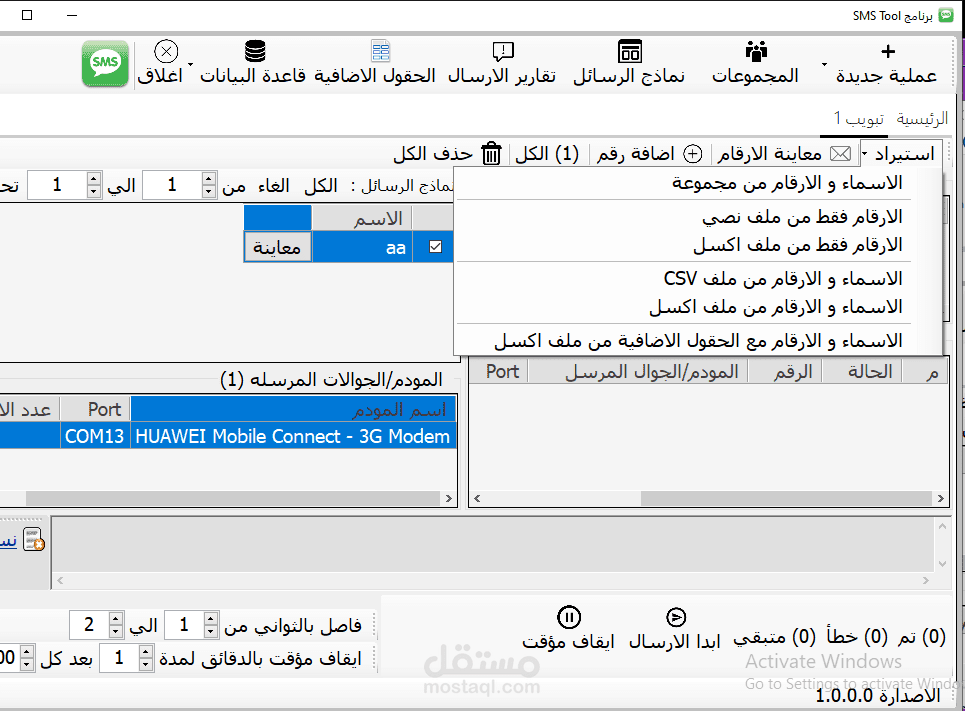8-استيراد ارقام الهواتف ملف نصي او ملف اكسل او ملف CSV او من المجموعات المضافة في البرنامج