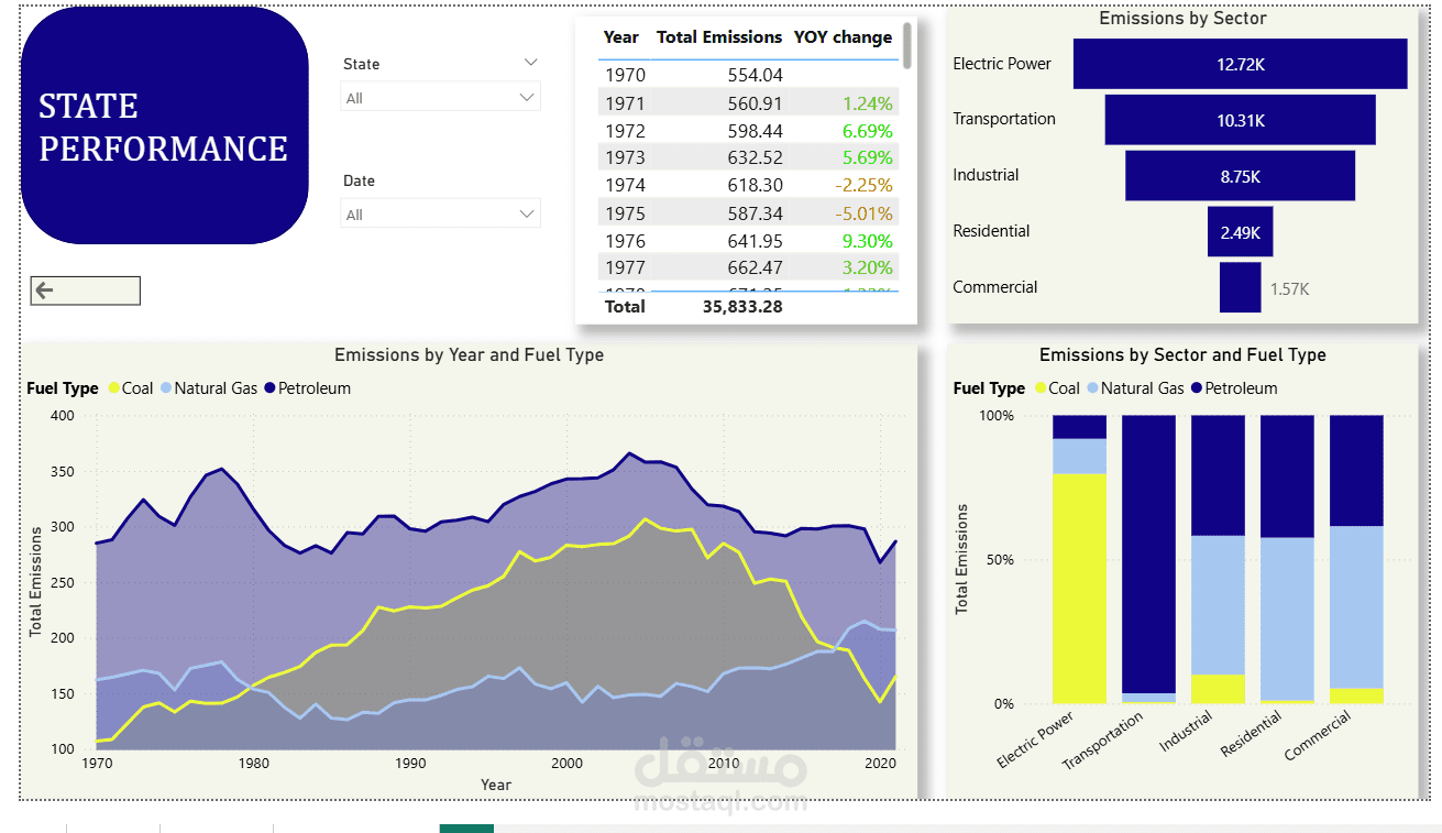 و اجمالي الانبعاثات لكل السنوات ولكل الولايات يمثل 35.83k.