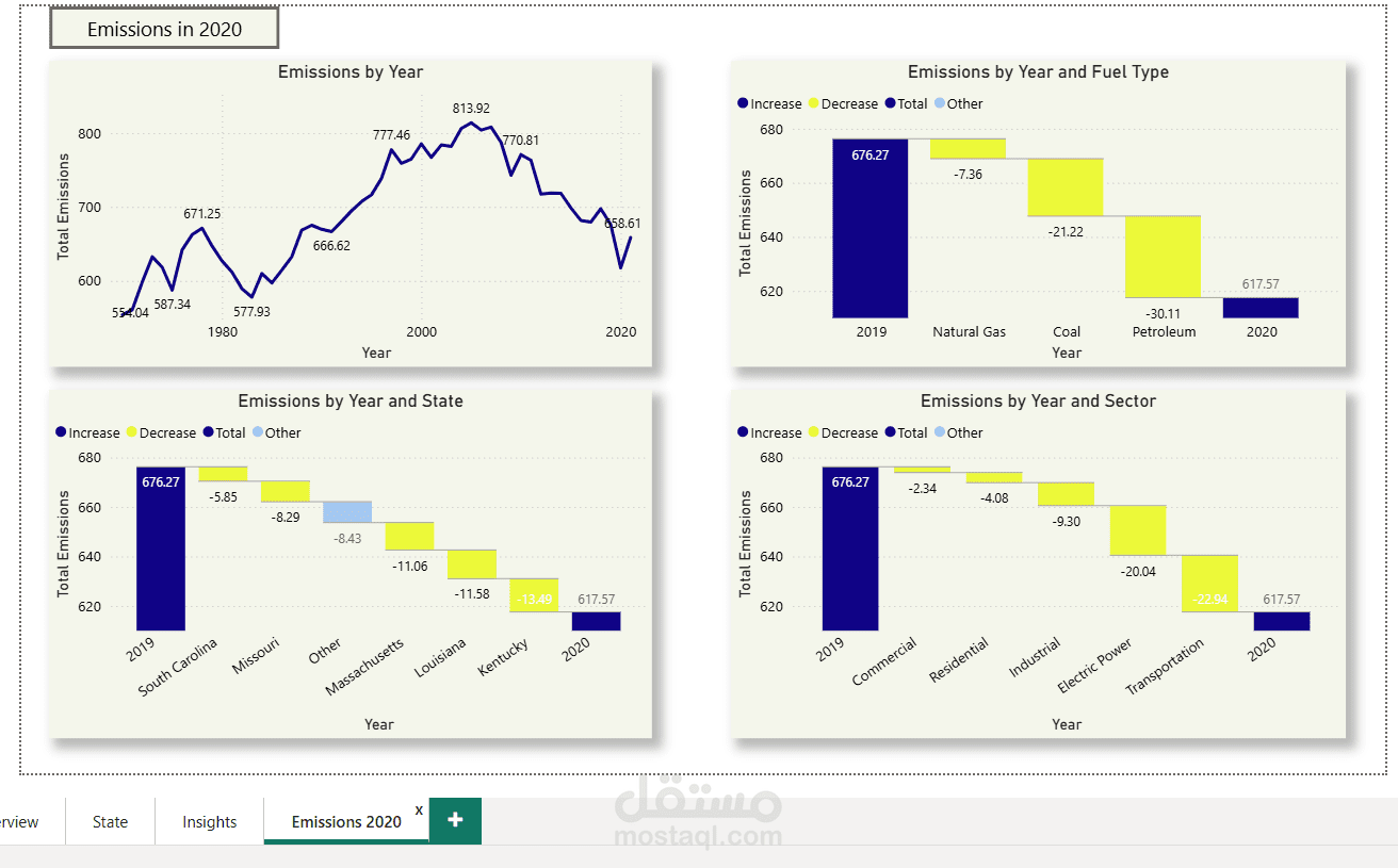 مقارنة نسبة الانبعاثات كل سنة مع السنة التي تسبقها .